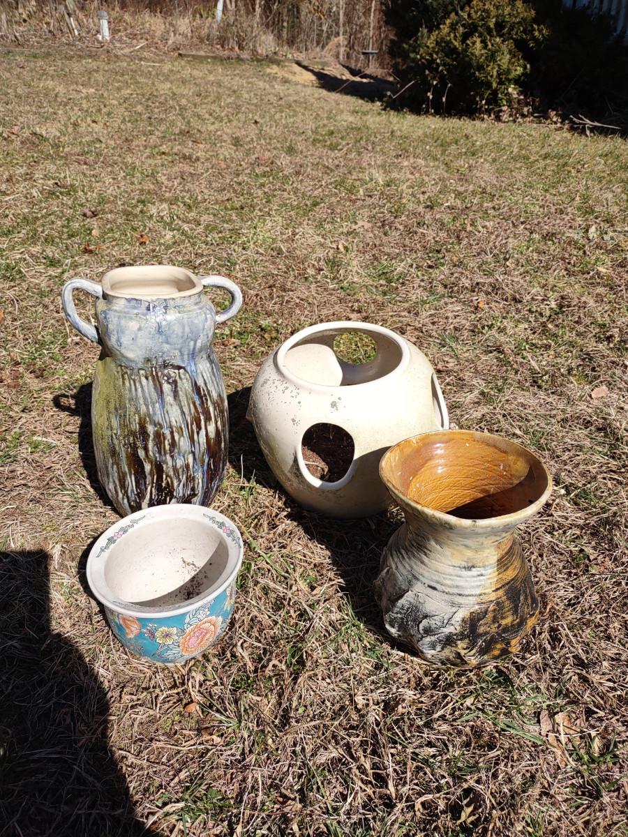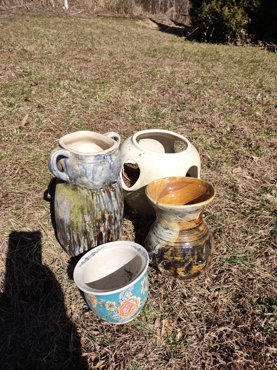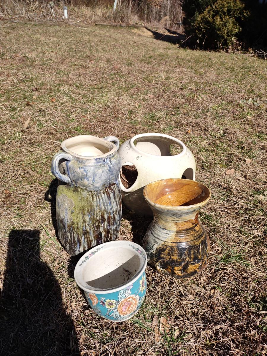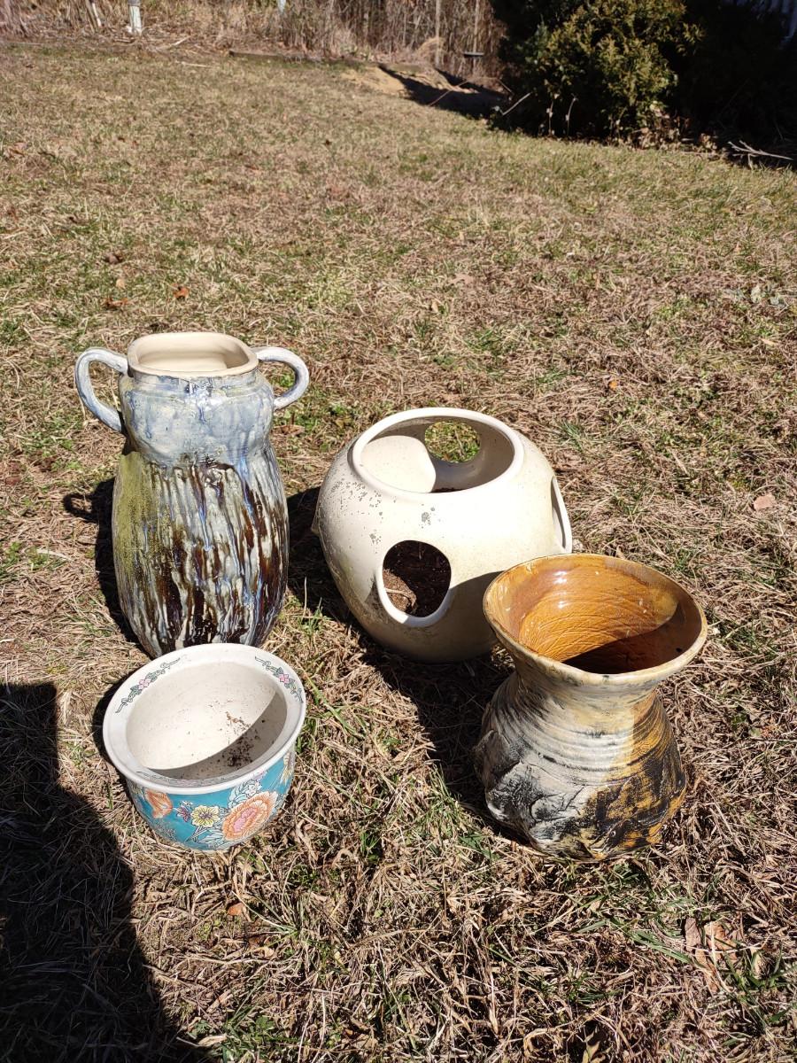 Collection of 4 planters. Please see all pictures as they are the best representation of the items. The pictures show condition, measurements if taken, and what is included in the lot. Due to the large amount that we photograph and the time frame, we are not always able to take measurements. All items unless noted, are pre-owned and have been used. If you purchased furniture, you must bring help. We do not allow one person to carry large furniture out on their own. Bring help, tools and a truck for the safety of our client’s homes, and your personal safety. Any damages that result to the property including walls, and floors due to moving of the furniture will be charged to the buyer. Company policy. Thank you.
