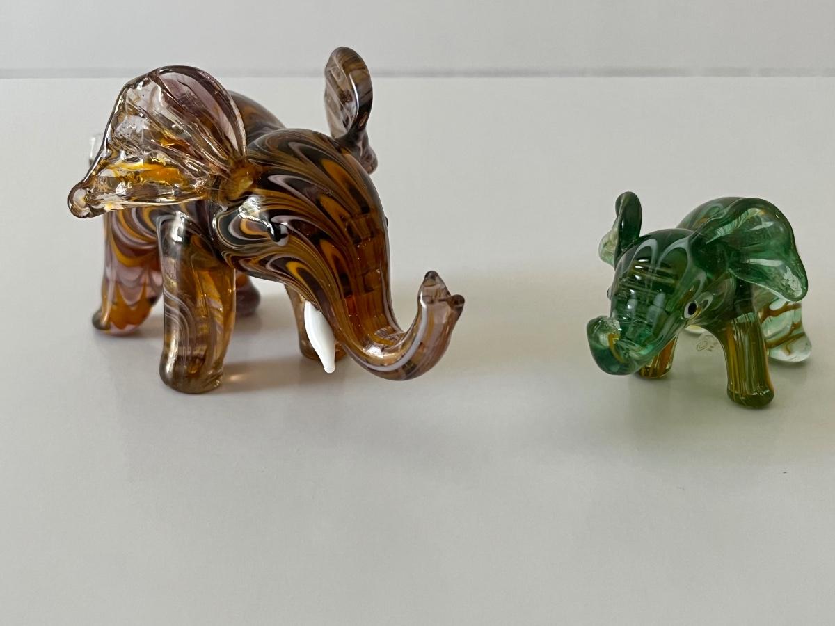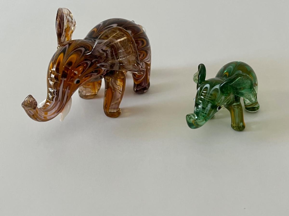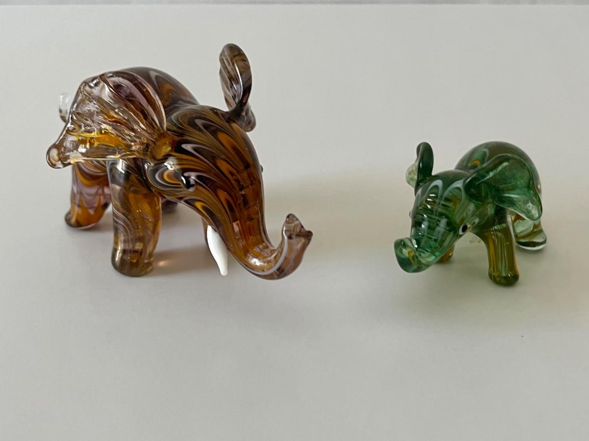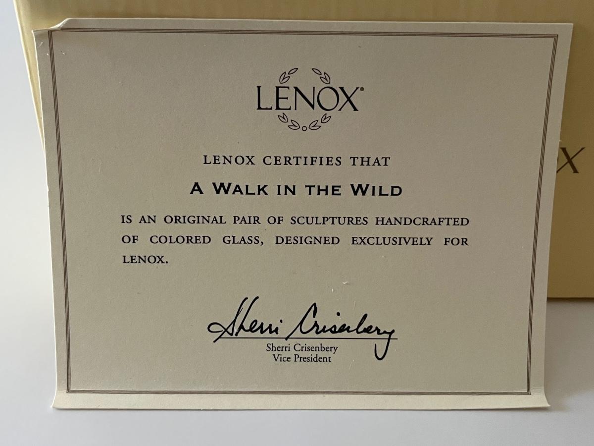 Gorgeous Lenox colored glass elephants "A walk in the wild" with a certificate from Lenox and original box