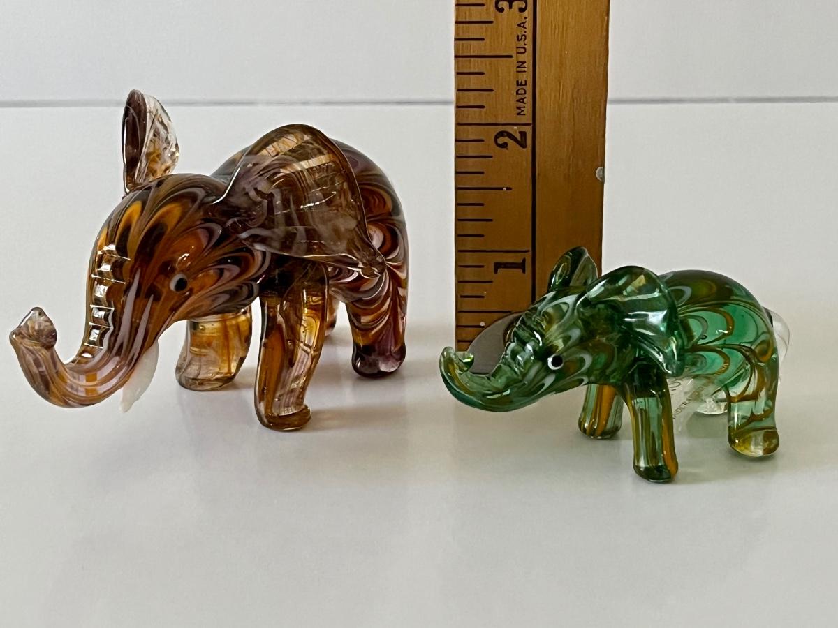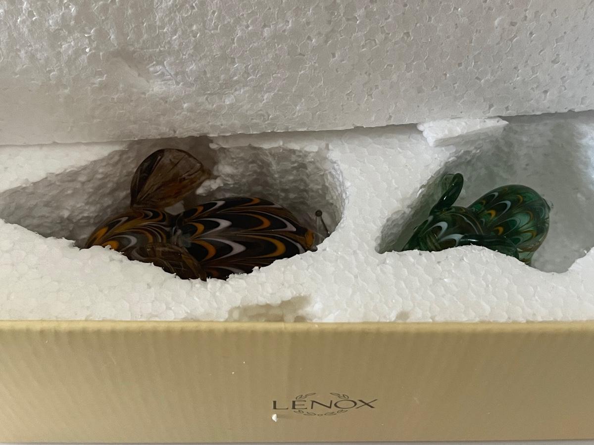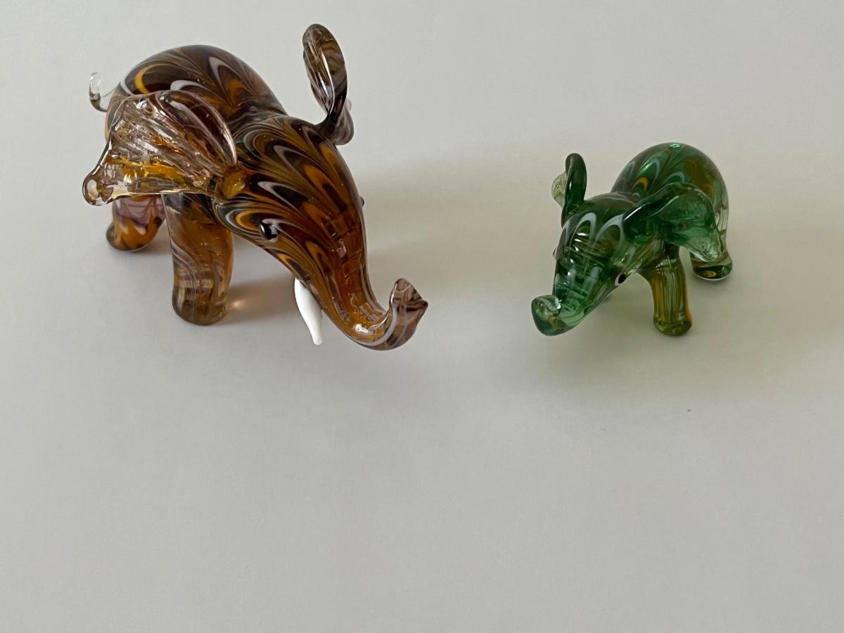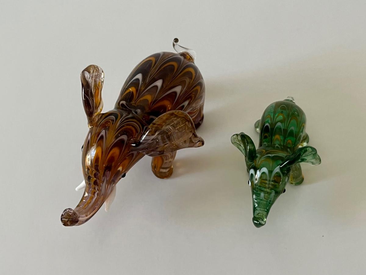 Gorgeous Lenox colored glass elephants "A walk in the wild" with a certificate from Lenox and original box