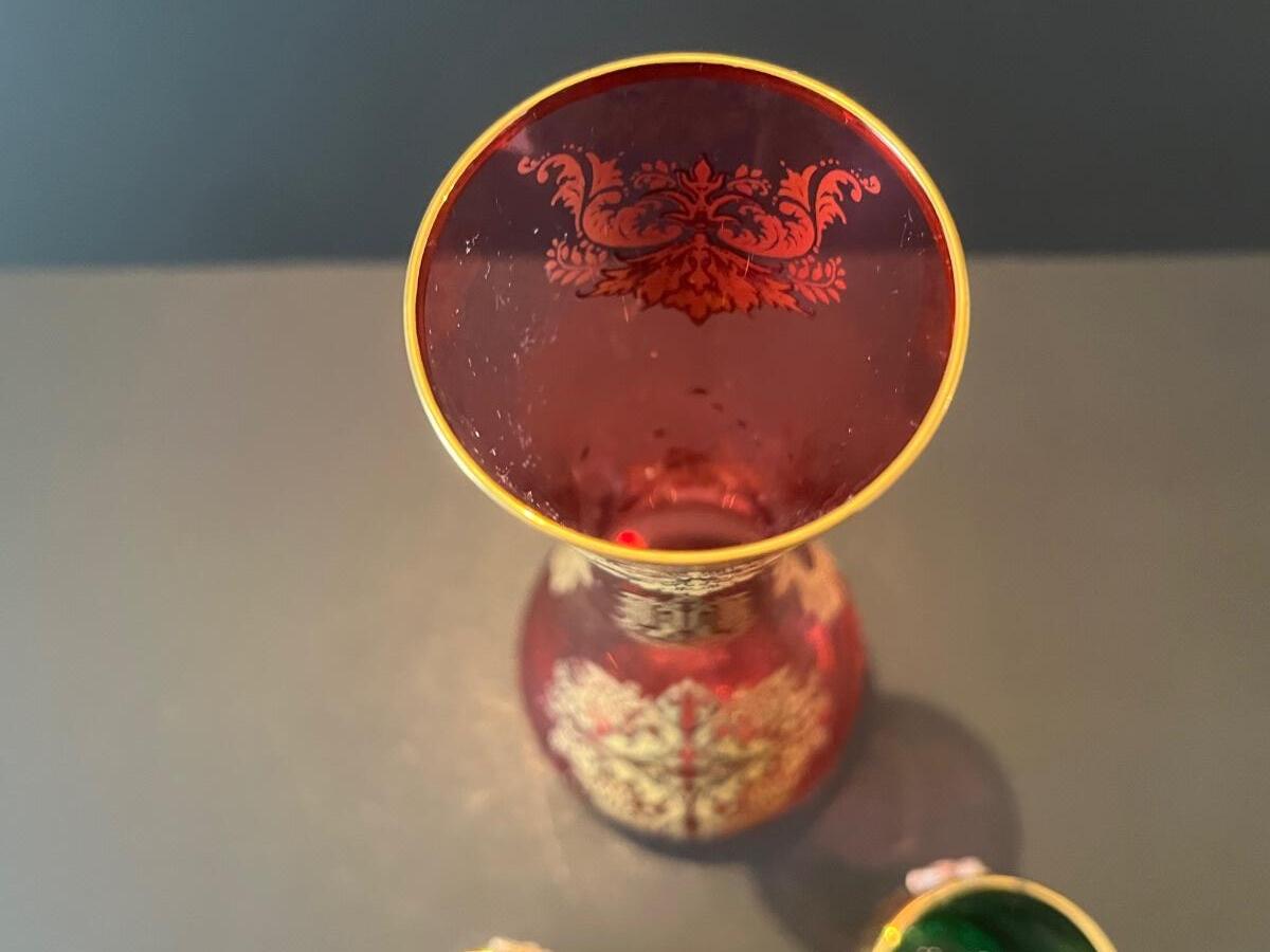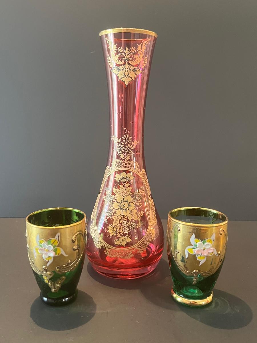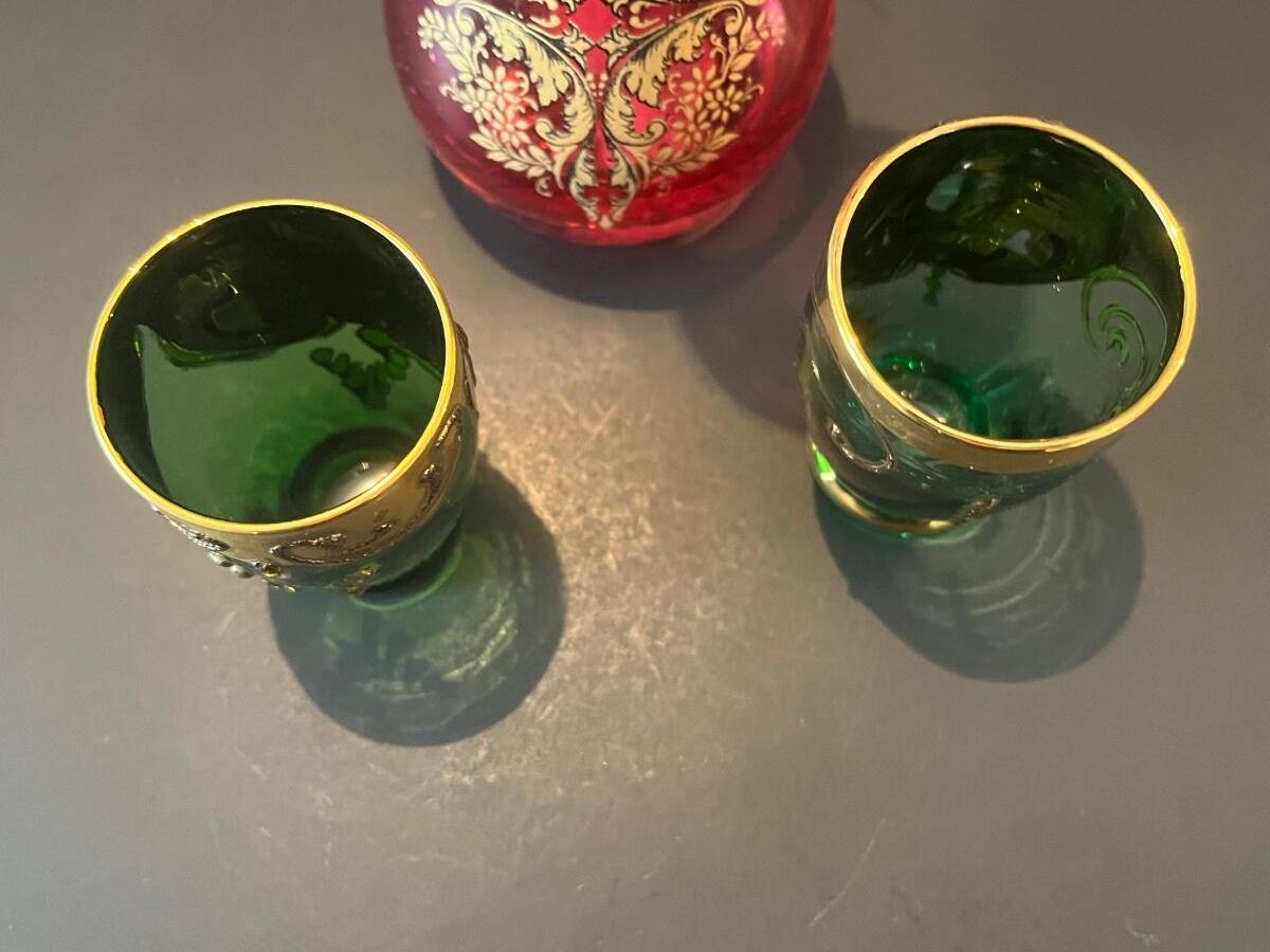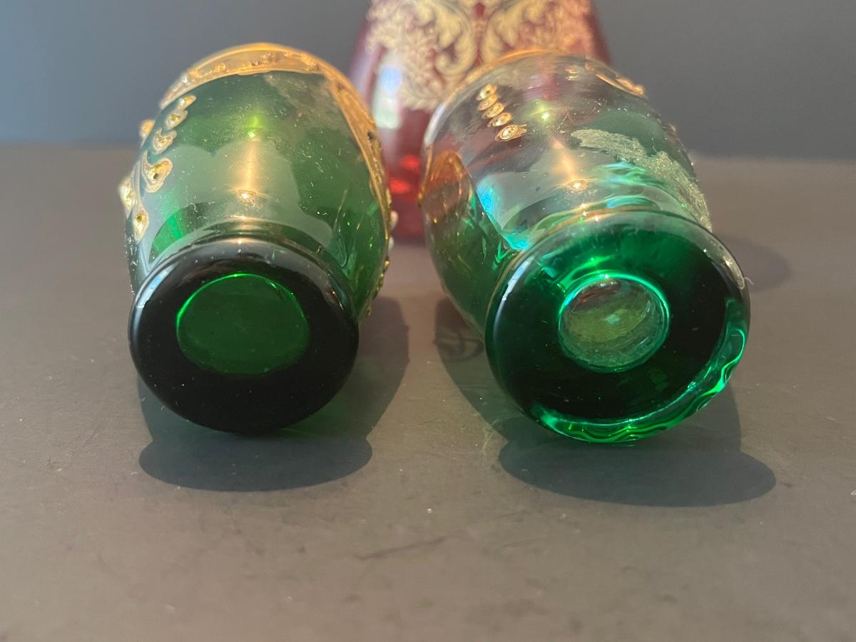 This collection includes two exquisite etched glass pitchers, one with a silver top and ice core, two colored beverage glasses, a red bud vase, green/gold shot glasses, and S&P shakers. Please see all pictures as they are the best representation of the items. The pictures show condition, measurements if taken, and what is included in the lot. Due to the large amount that we photograph and the time frame, we are not always able to take measurements. All items unless noted, are pre-owned and have been used. If you purchased furniture, you must bring help. We do not allow one person to carry large furniture out on their own. Bring help, tools and a truck for the safety of our client’s homes, and your personal safety. Any damages that result to the property including walls, and floors due to moving of the furniture will be charged to the buyer. Company policy. Thank you.