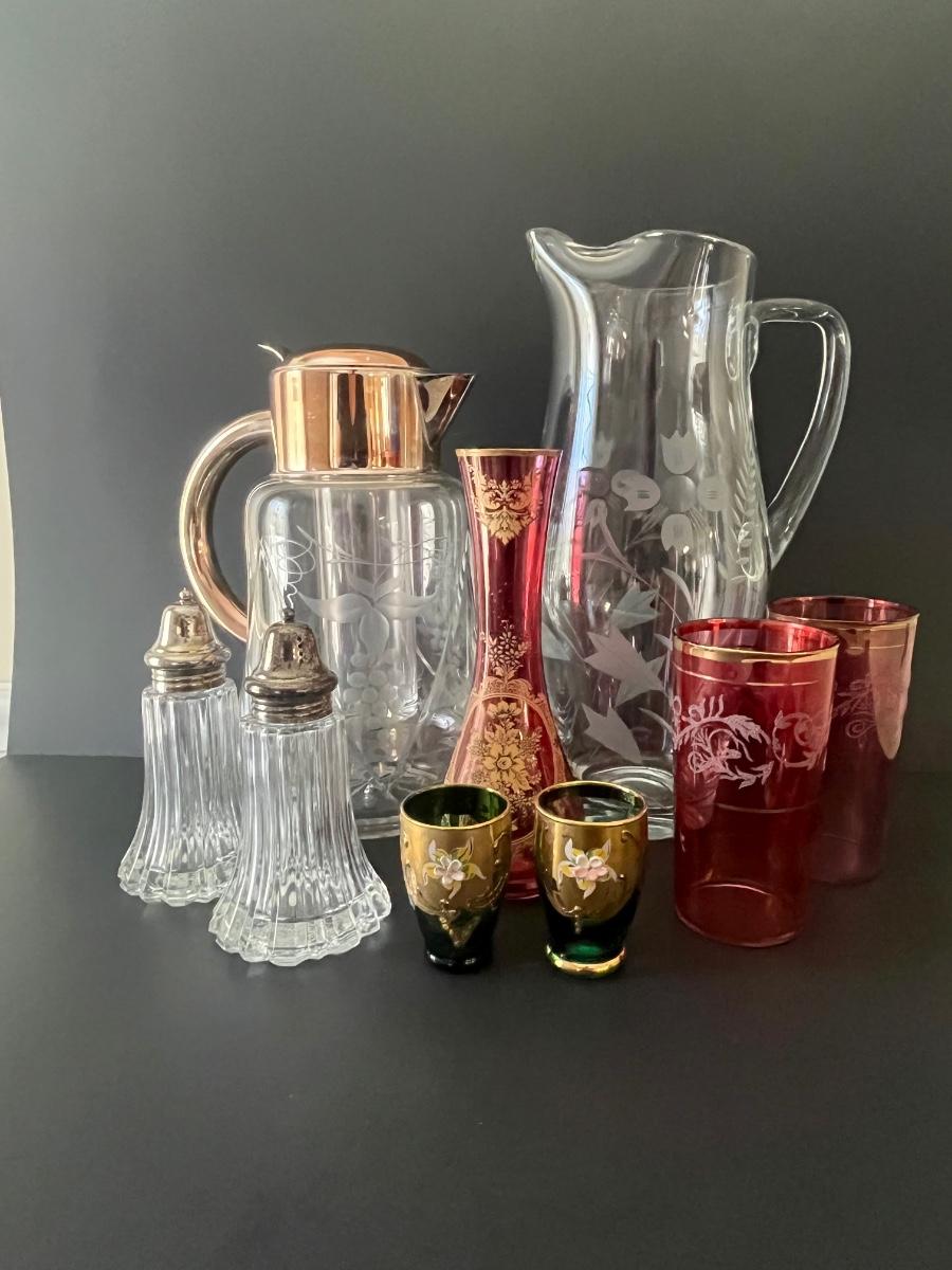 LOT 54C: Vintage Bar: Etched & Colored Glass and More
