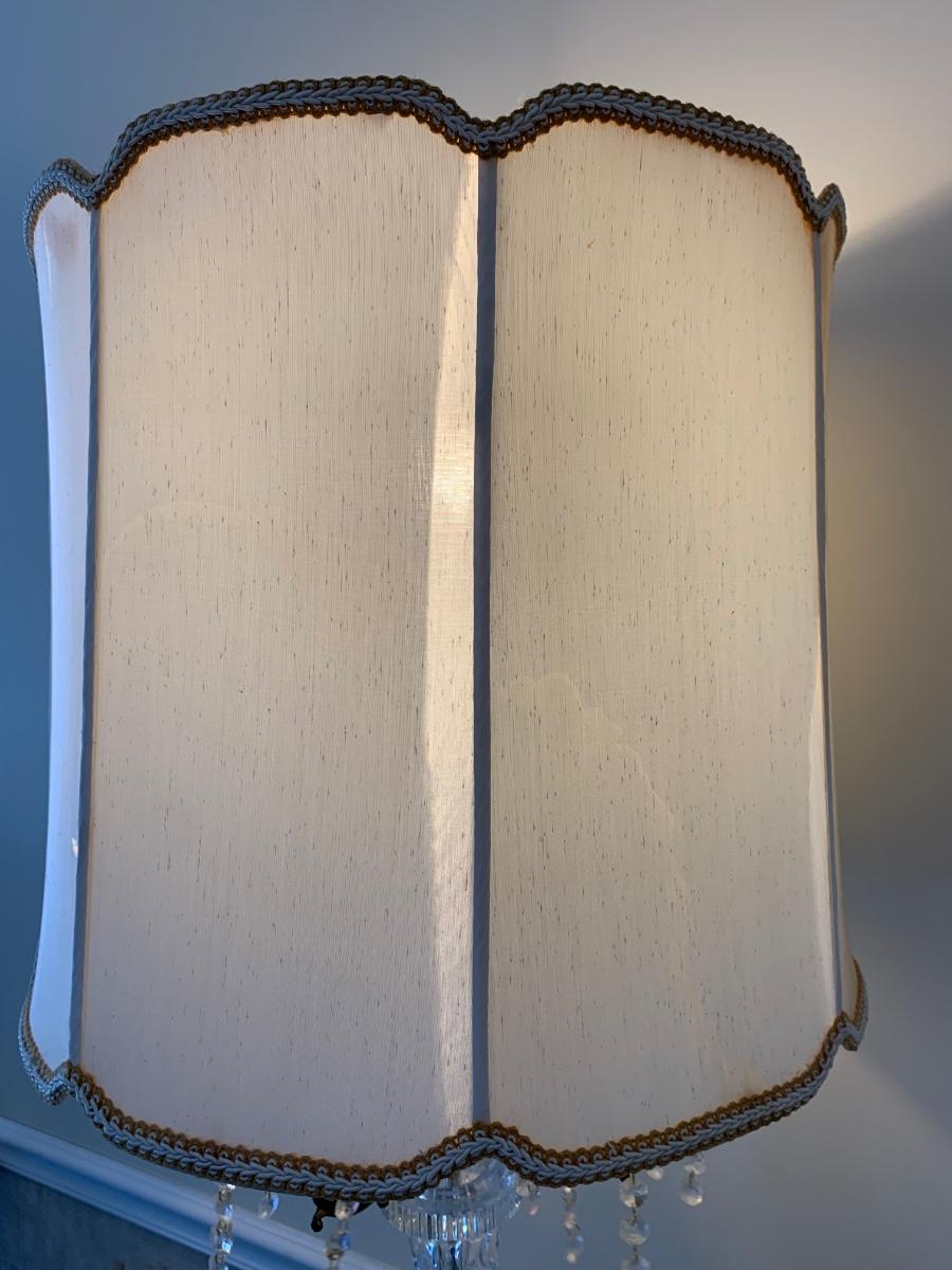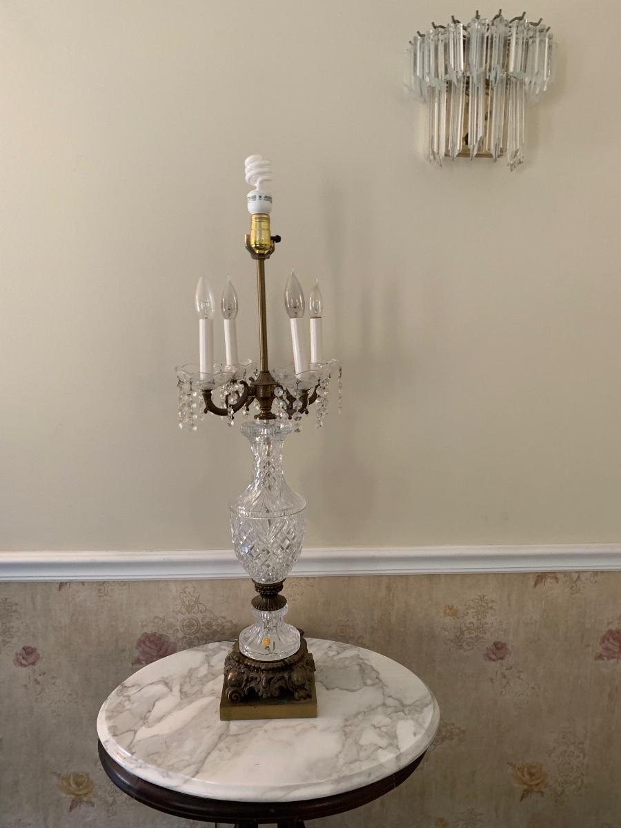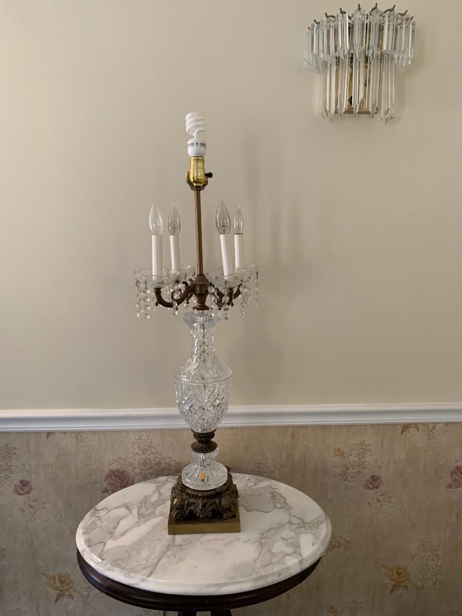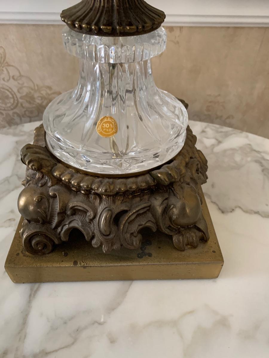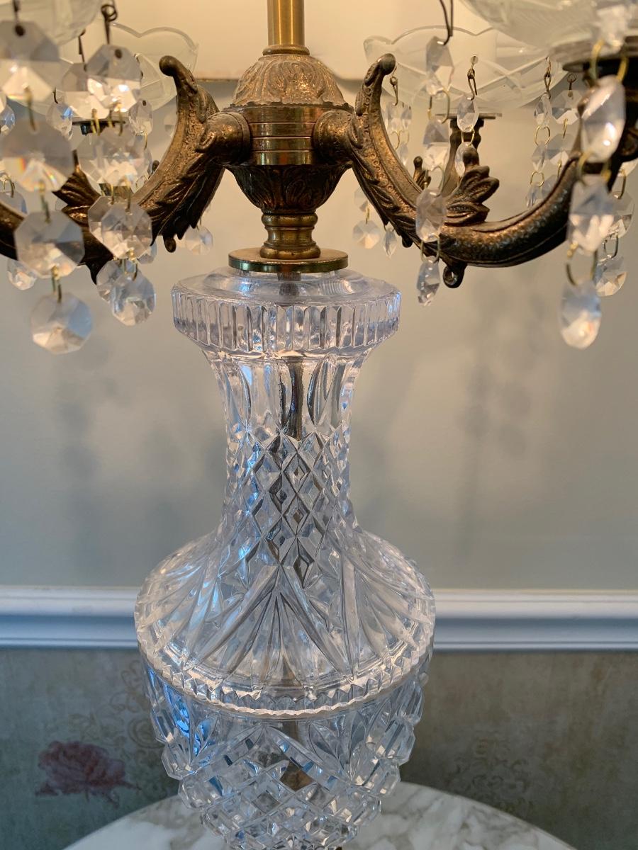 Beautiful tall lead crystal Cristallo Superior 30% Pb0 lamp. Could be the center piece of any room. Tested & works. the shade of this lamp has conditon issues as pictured. Table is NOT include.