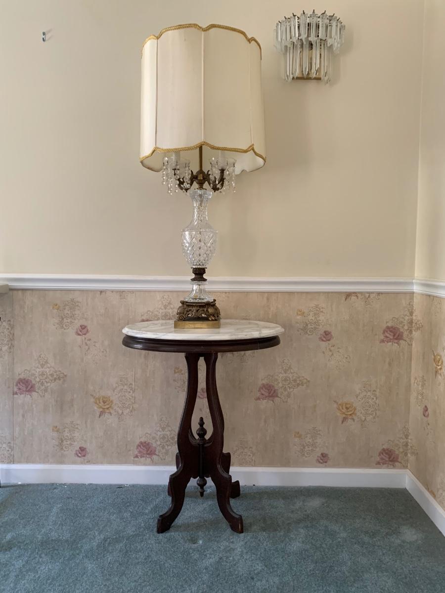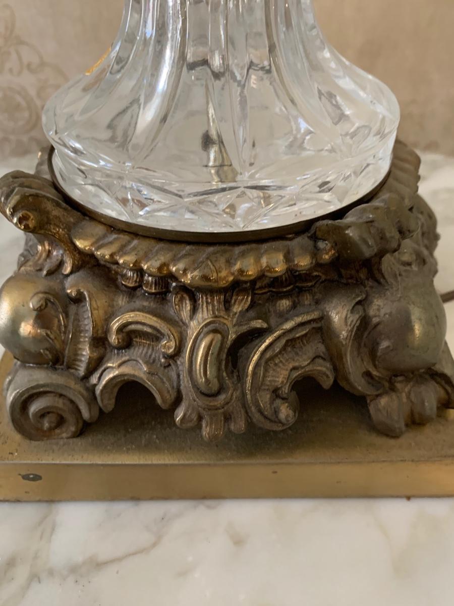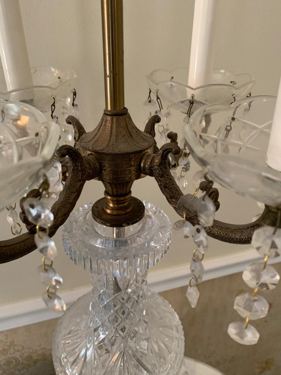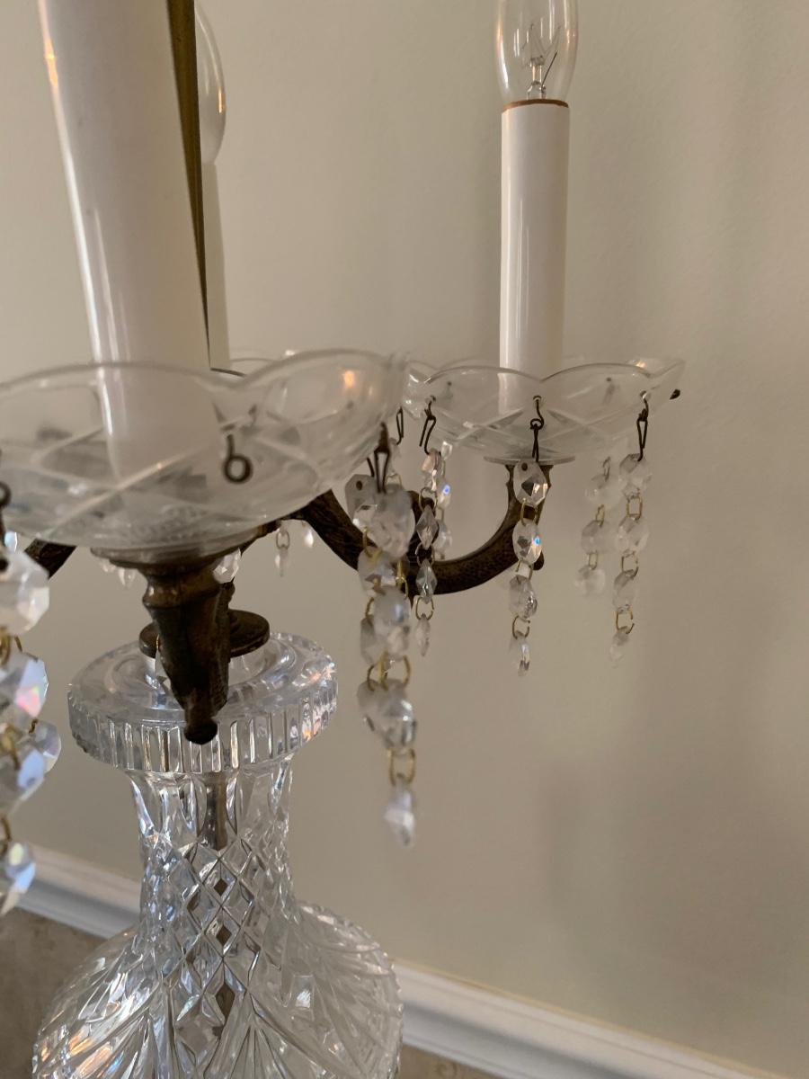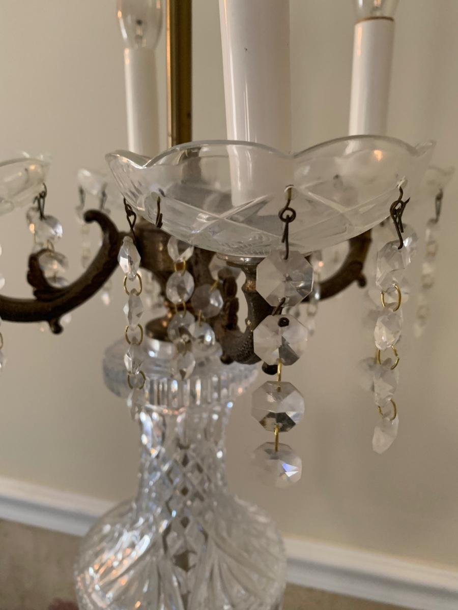 Beautiful tall lead crystal Cristallo Superior 30% Pb0 lamp. Could be the center piece of any room. Tested & works. the shade of this lamp has conditon issues as pictured. Table is NOT include.