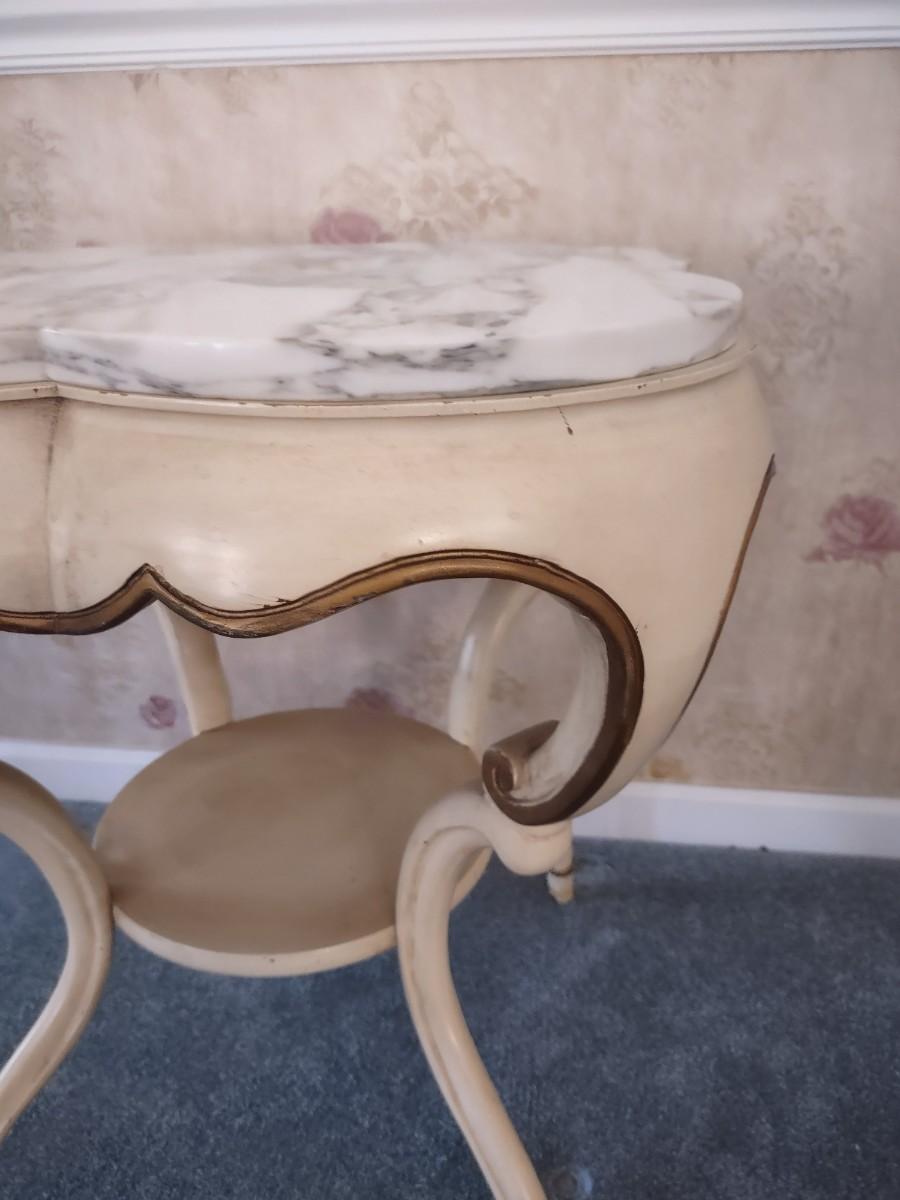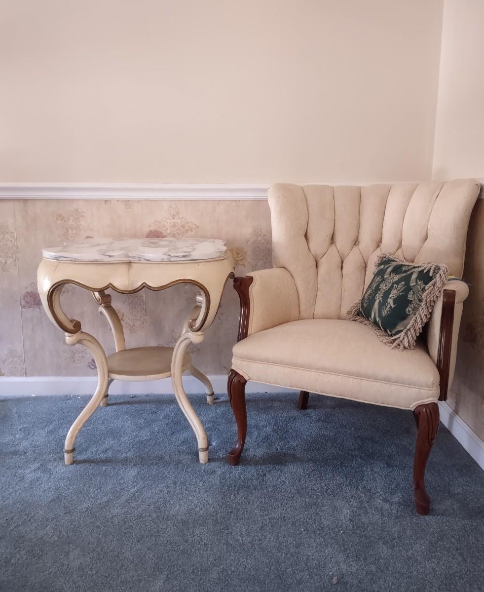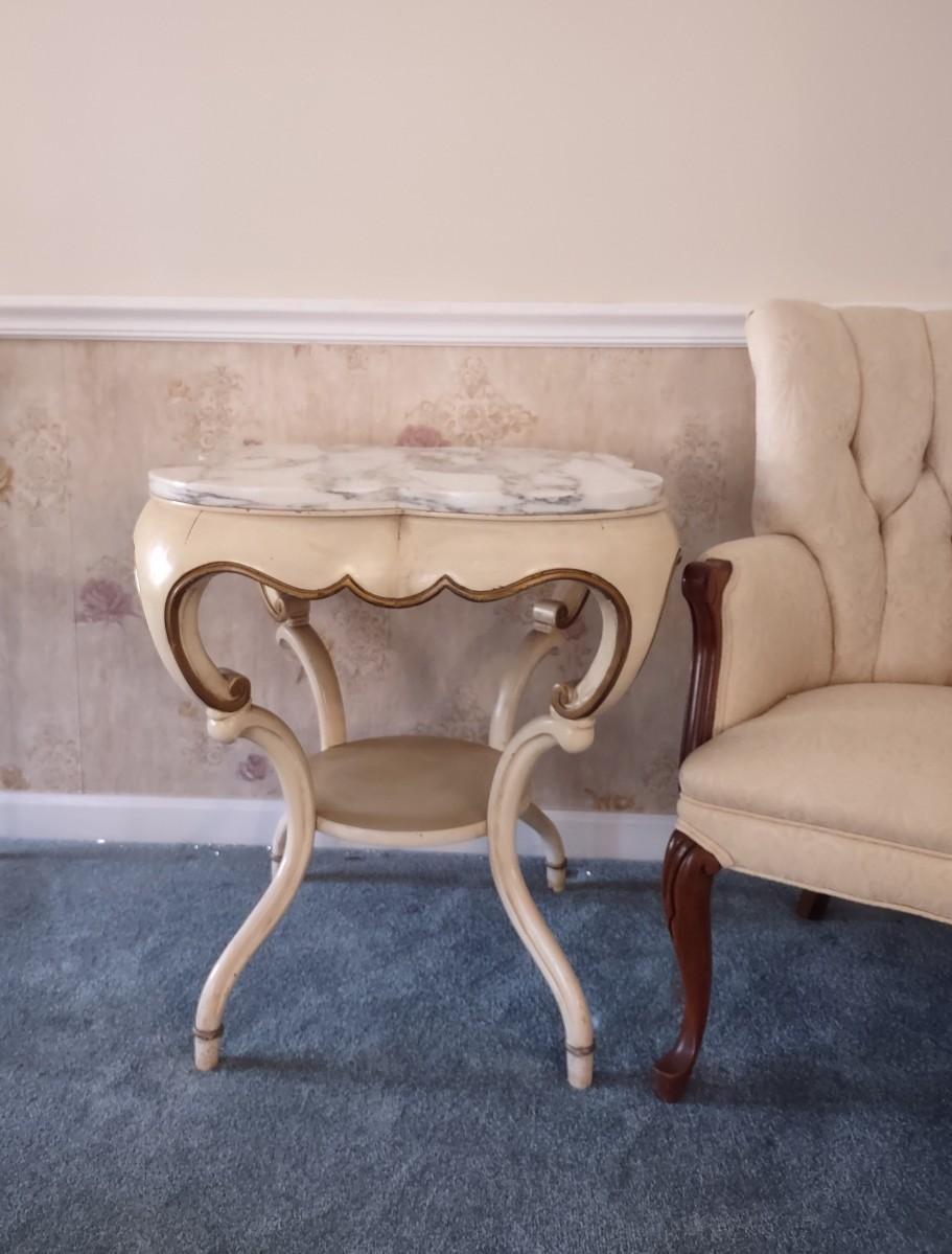 Vintage side table with removable marble top (25×28) Chair NOT included
