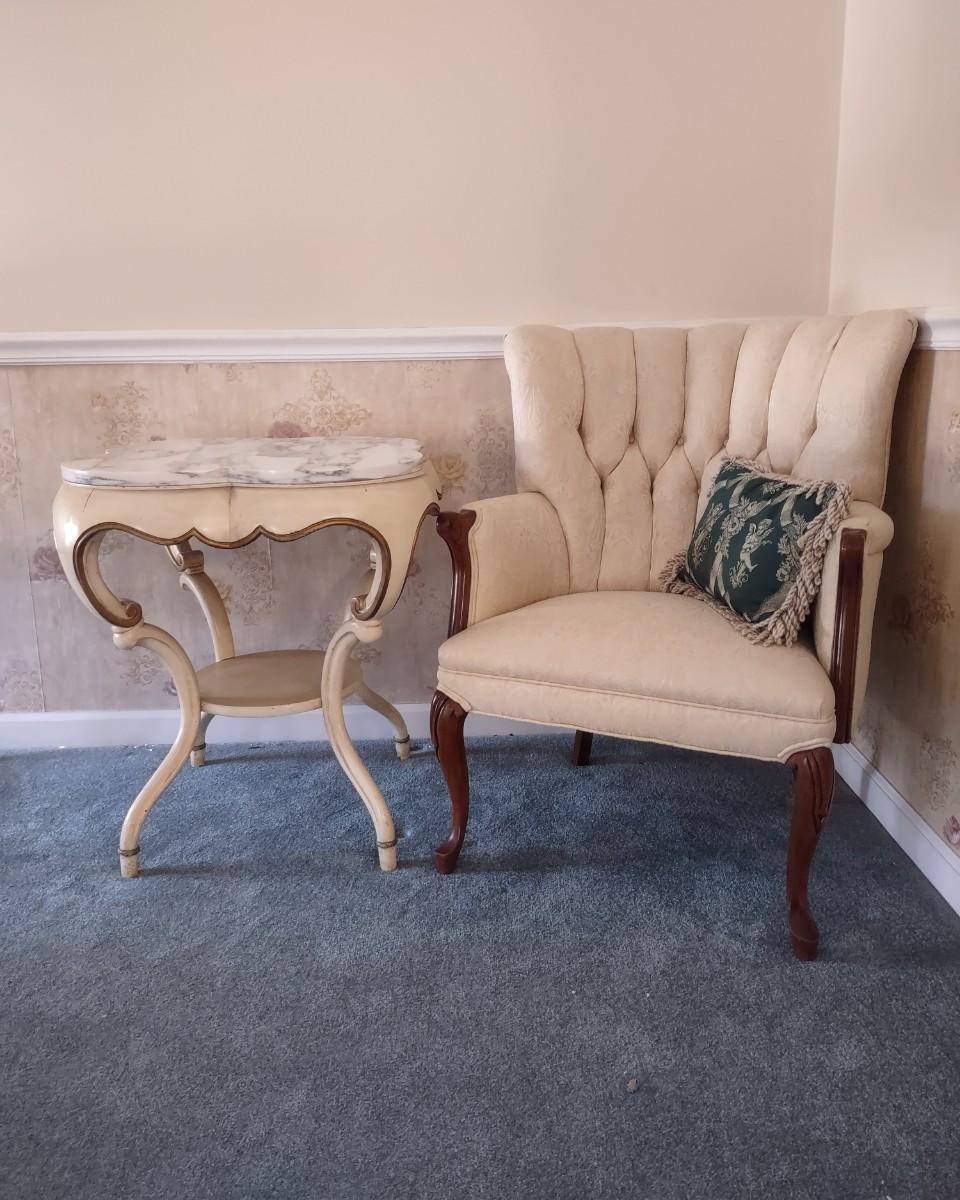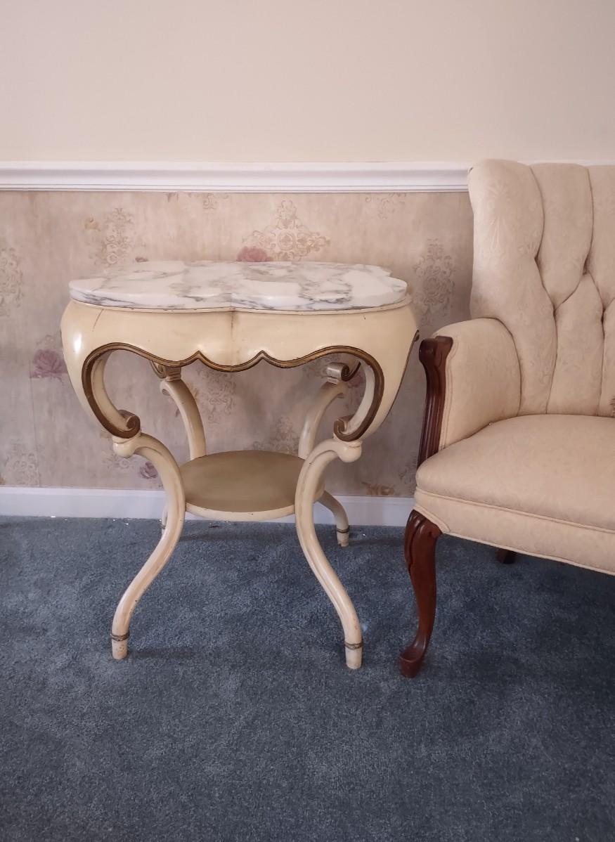 Vintage side table with removable marble top (25×28) Chair NOT included