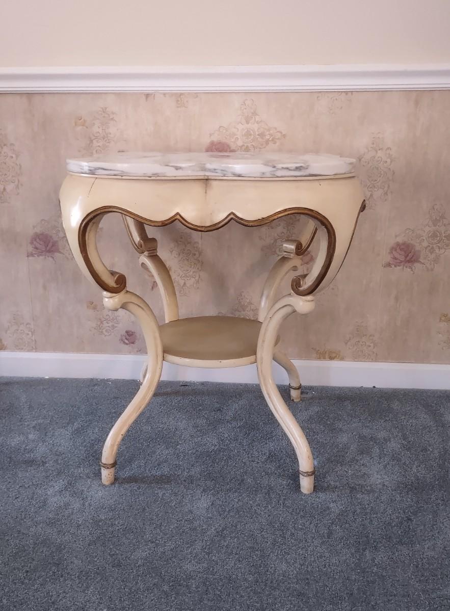 LOT 81D: Curved Leg Vintage Marble Top Side Table (Table Only)