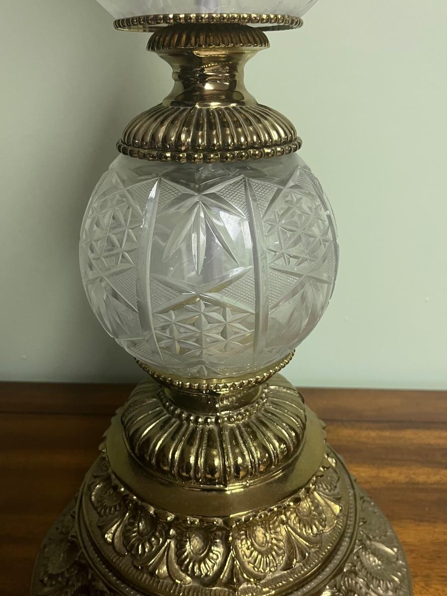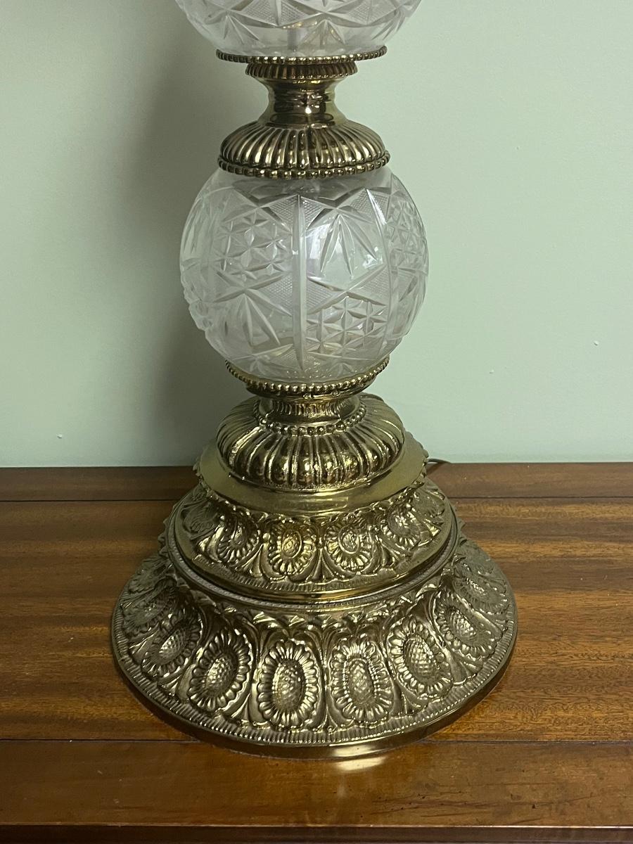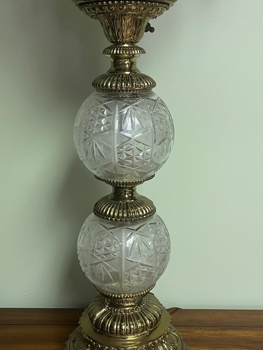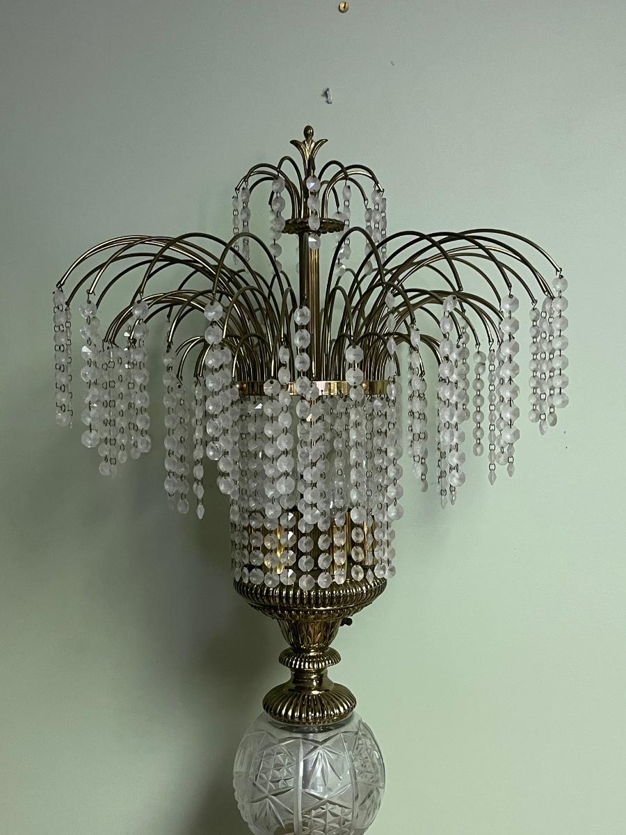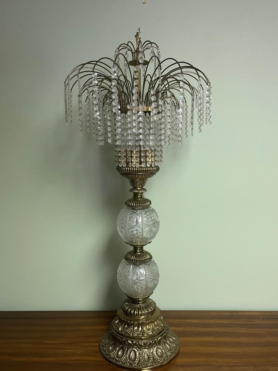 Absolutely stunning glass/crystal working lamp. It stands over 40 inches with hanging bead to cast the light throughout the room. Please see all pictures as they are the best representation of the items. The pictures show condition, measurements if taken, and what is included in the lot. Due to the large amount that we photograph and the time frame, we are not always able to take measurements. All items unless noted, are pre-owned and have been used. If you purchased furniture, you must bring help. We do not allow one person to carry large furniture out on their own. Bring help, tools and a truck for the safety of our client’s homes, and your personal safety. Any damages that result to the property including walls, and floors due to moving of the furniture will be charged to the buyer. Company policy. Thank you.