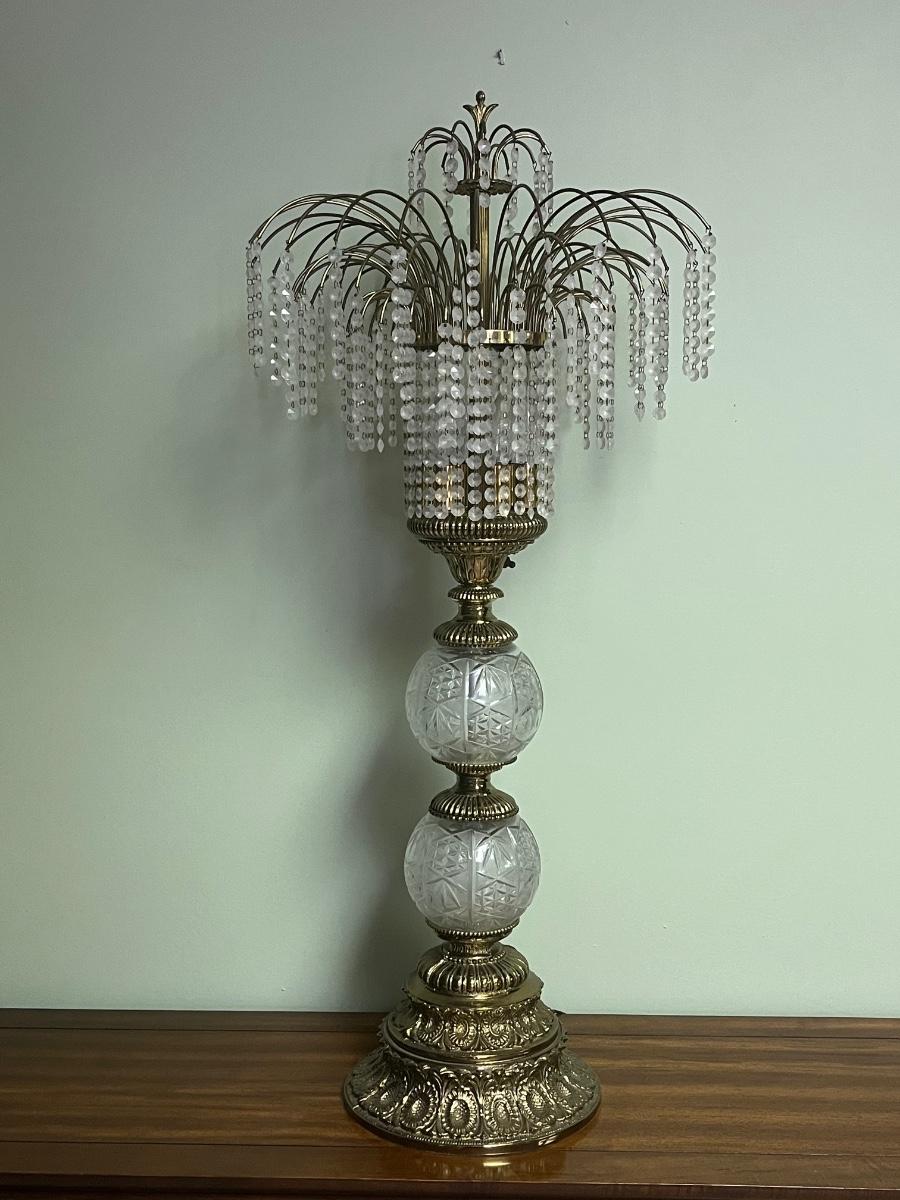 LOT 83C: Hollywood Regency Crystal Drop/Glass Lamp