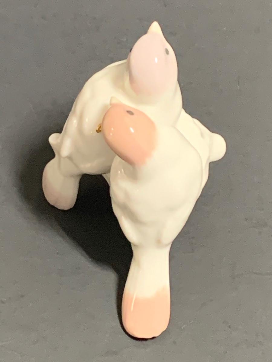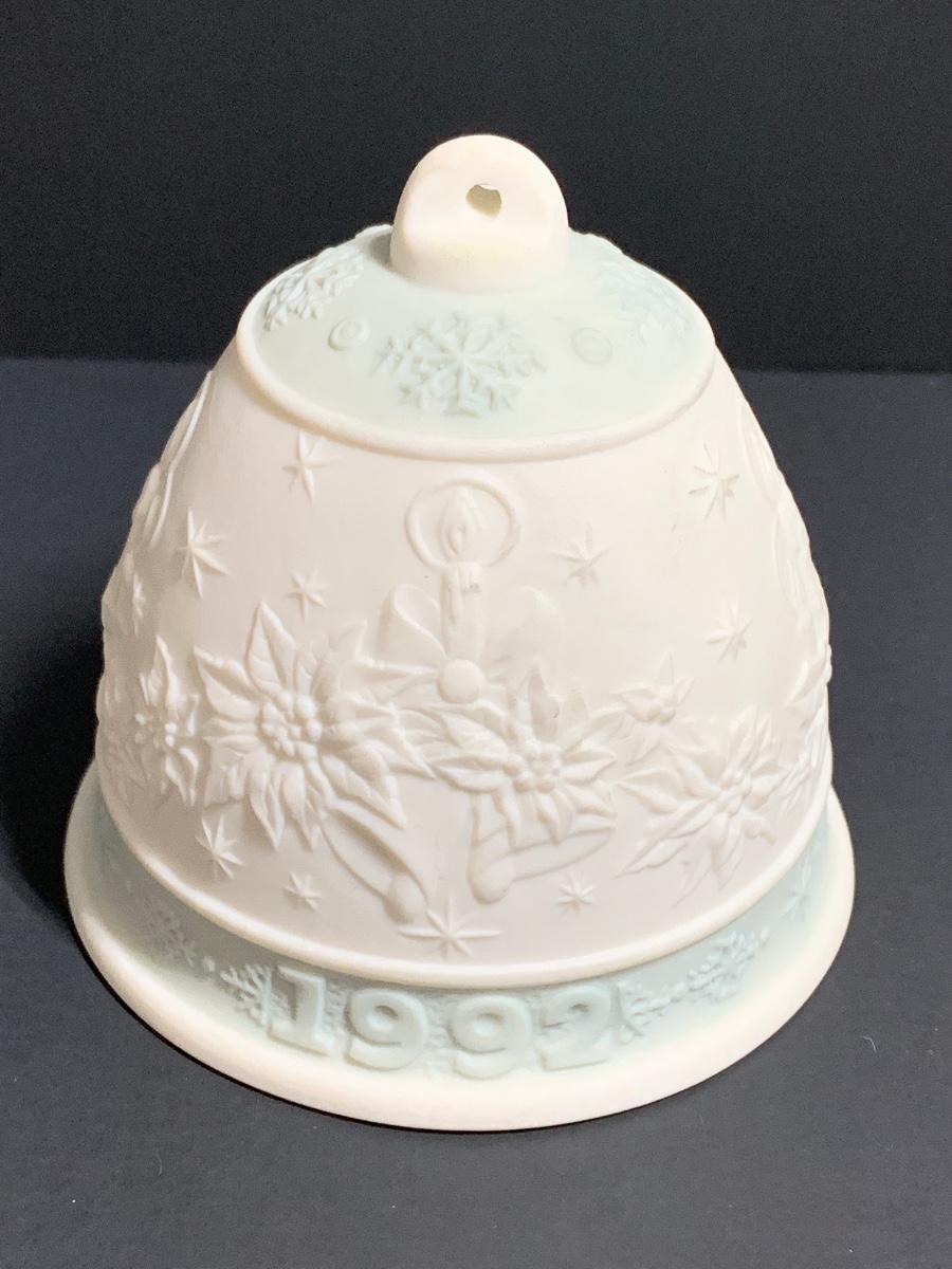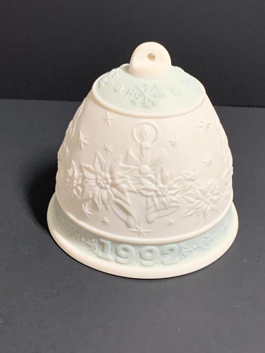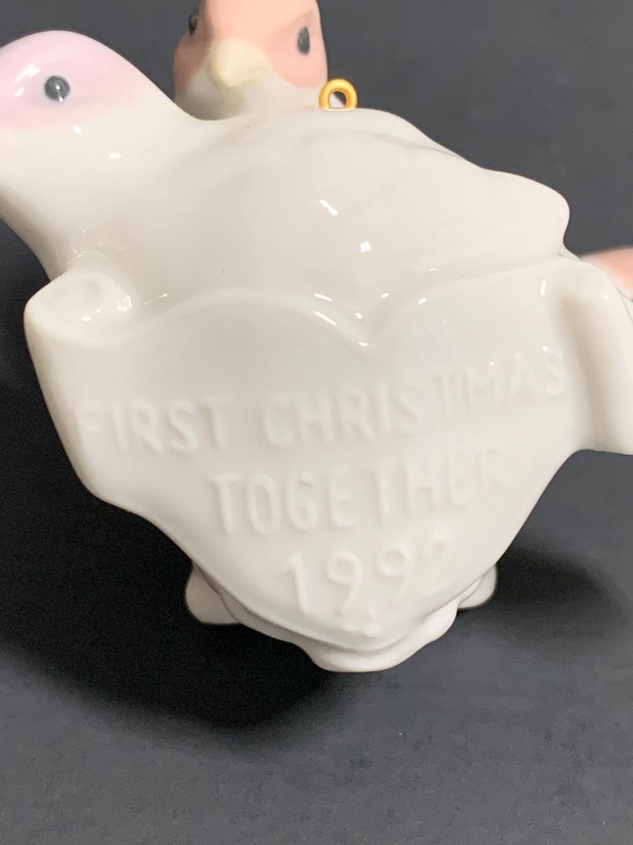 Collection of 2 Lladro ornaments: 1992 Christmas bell and love bird ornament