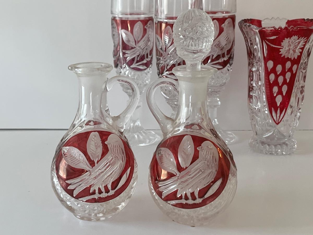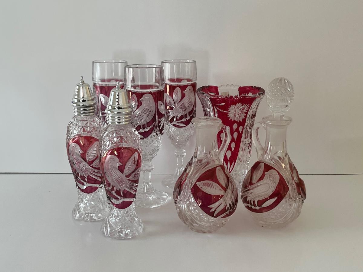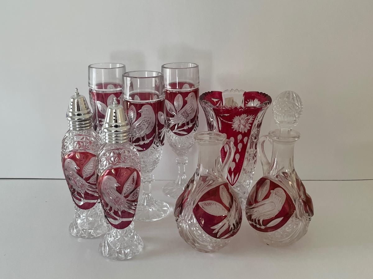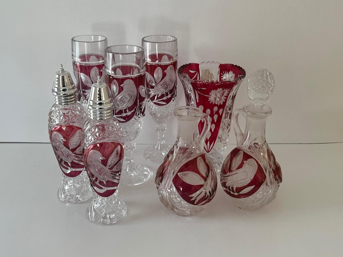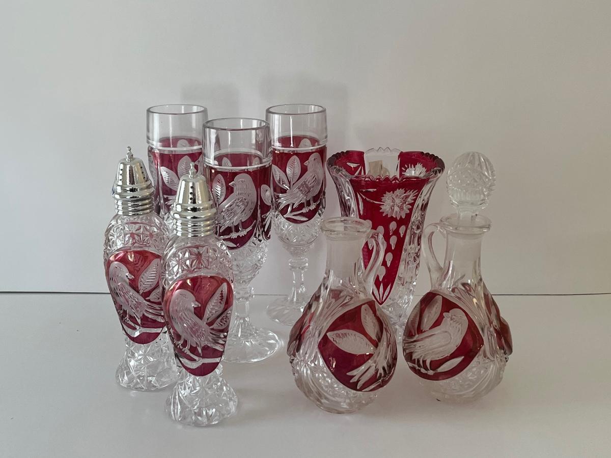LOT 96C: Hofbauer Red/Cranberry Birds Crystal Collection and More