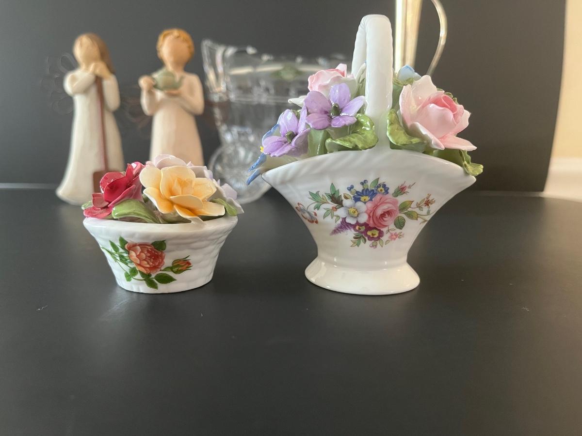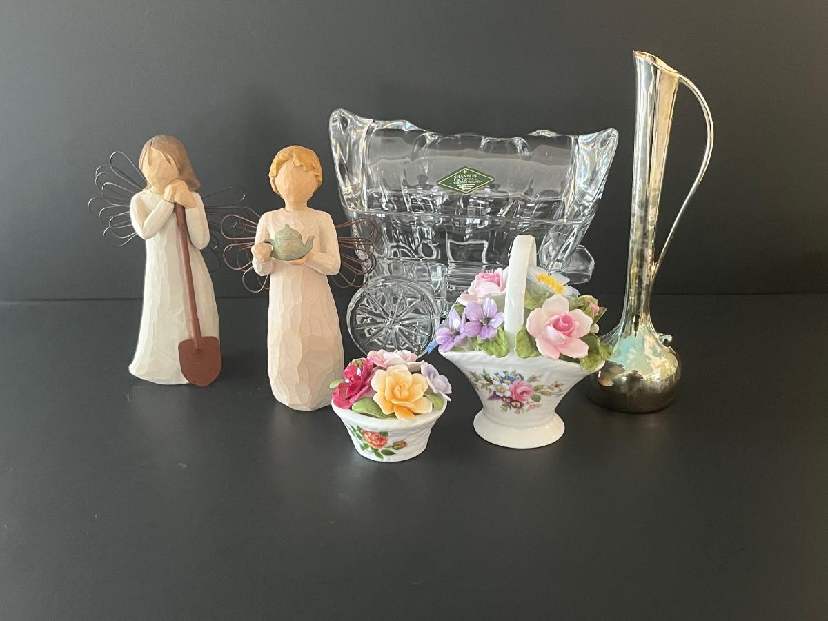 Shannon Crystal stagecoach, 2 willow tree figures, silver plated bud vase and Aynsley China floral baskets. Please see all pictures as they are the best representation of the items. The pictures show condition, measurements if taken, and what is included in the lot. Due to the large amount that we photograph and the time frame, we are not always able to take measurements. All items unless noted, are pre-owned and have been used. If you purchased furniture, you must bring help. We do not allow one person to carry large furniture out on their own. Bring help, tools and a truck for the safety of our client’s homes, and your personal safety. Any damages that result to the property including walls, and floors due to moving of the furniture will be charged to the buyer. Company policy. Thank you.