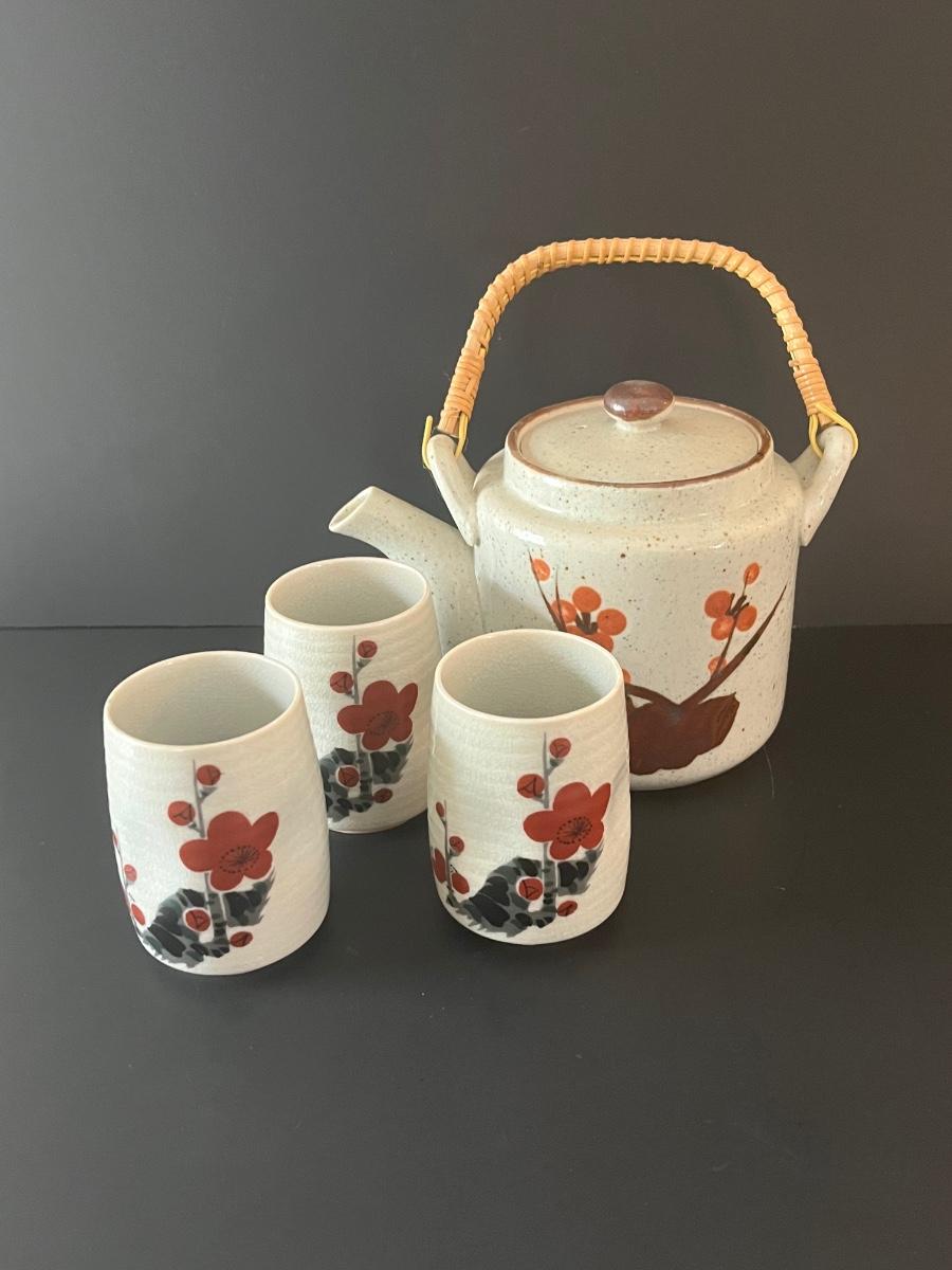 LOT 98C: Asian Inspired Stoneware Teapot and Cups