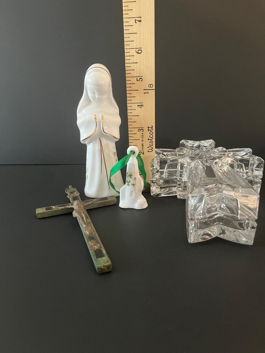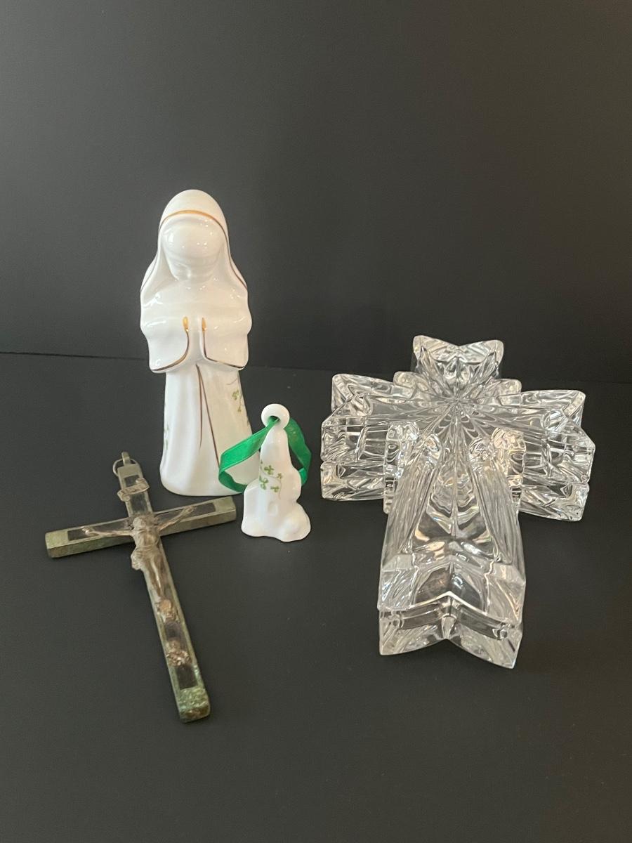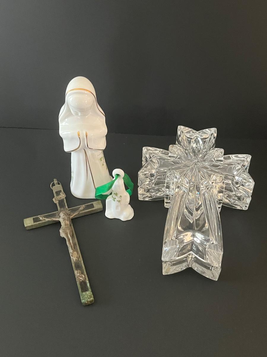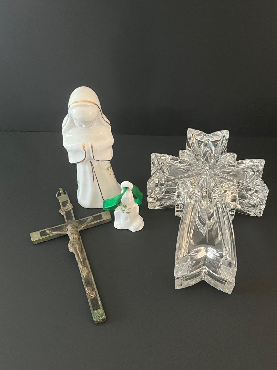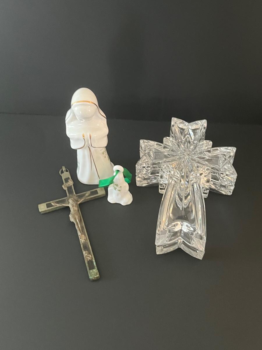 Collection includes Lenox Cross w/box. Royal Tara Figurine praying girl along with an ornament and a metal Crucifix
