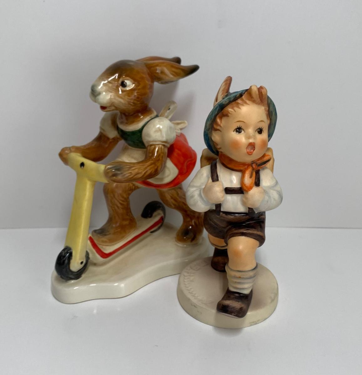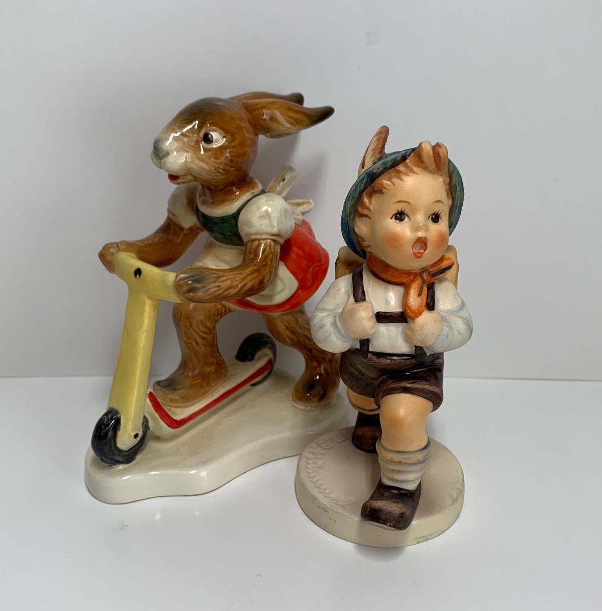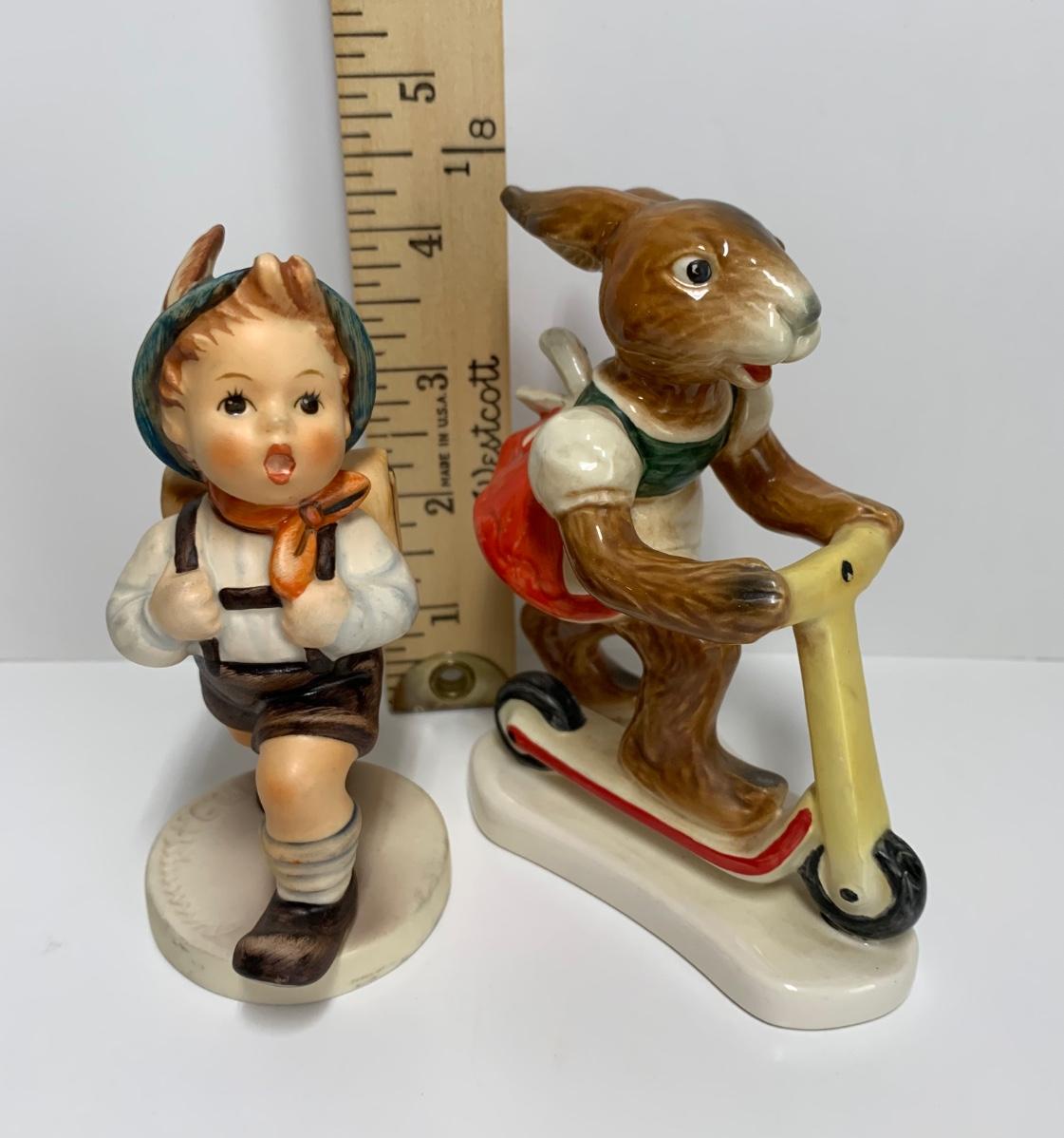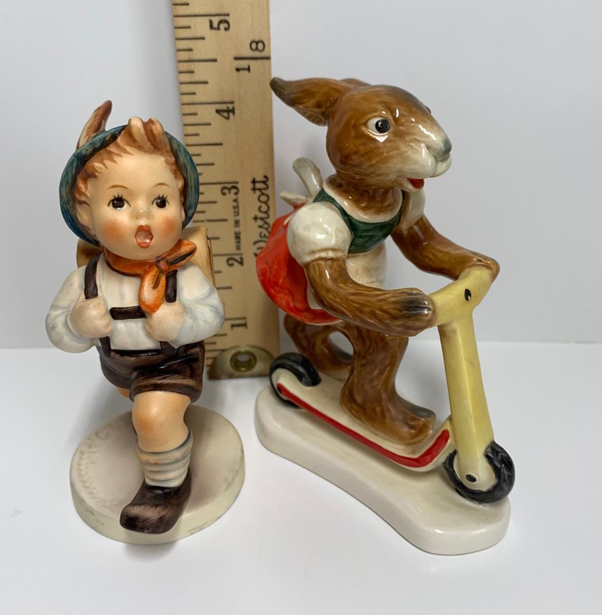 Vintage Goebel Rabbit/Bunny on scooter & Boy Figure