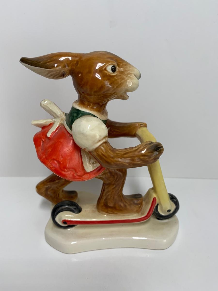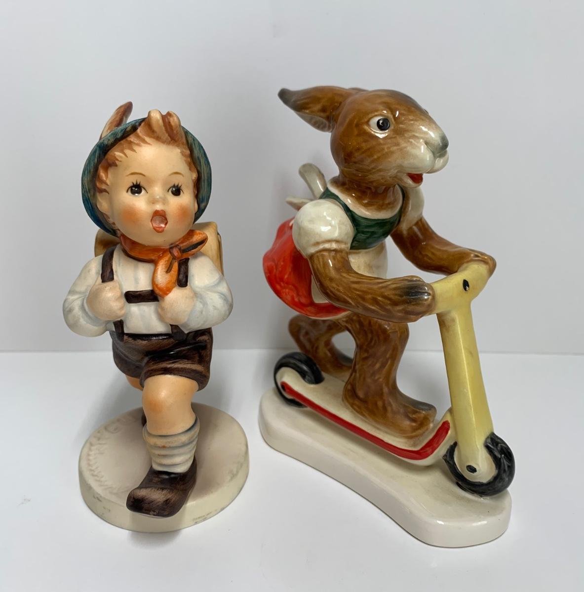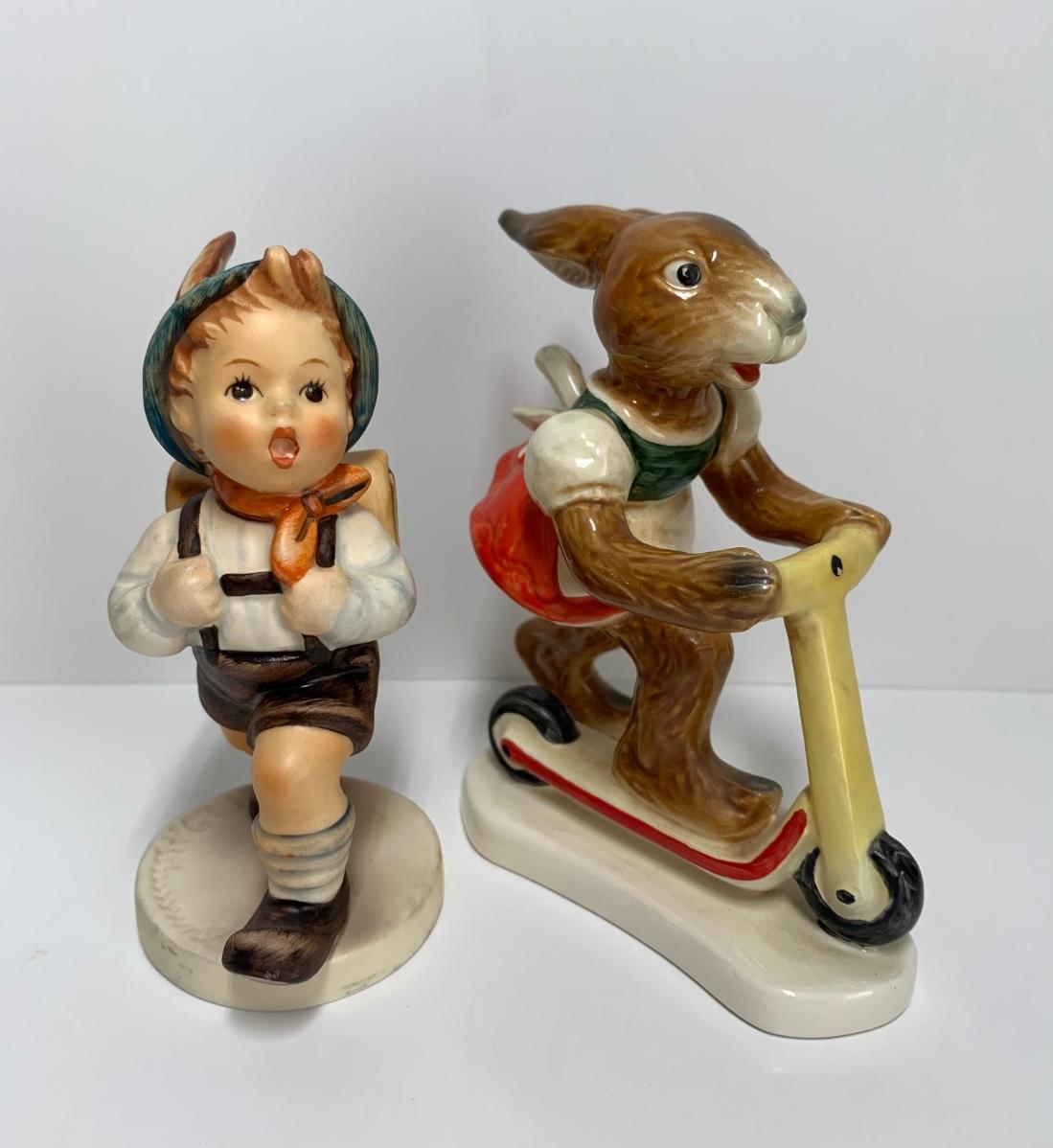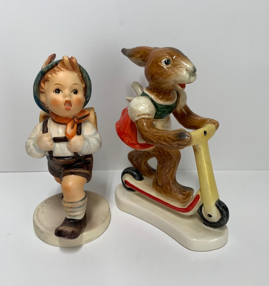 Vintage Goebel Rabbit/Bunny on scooter & Boy Figure