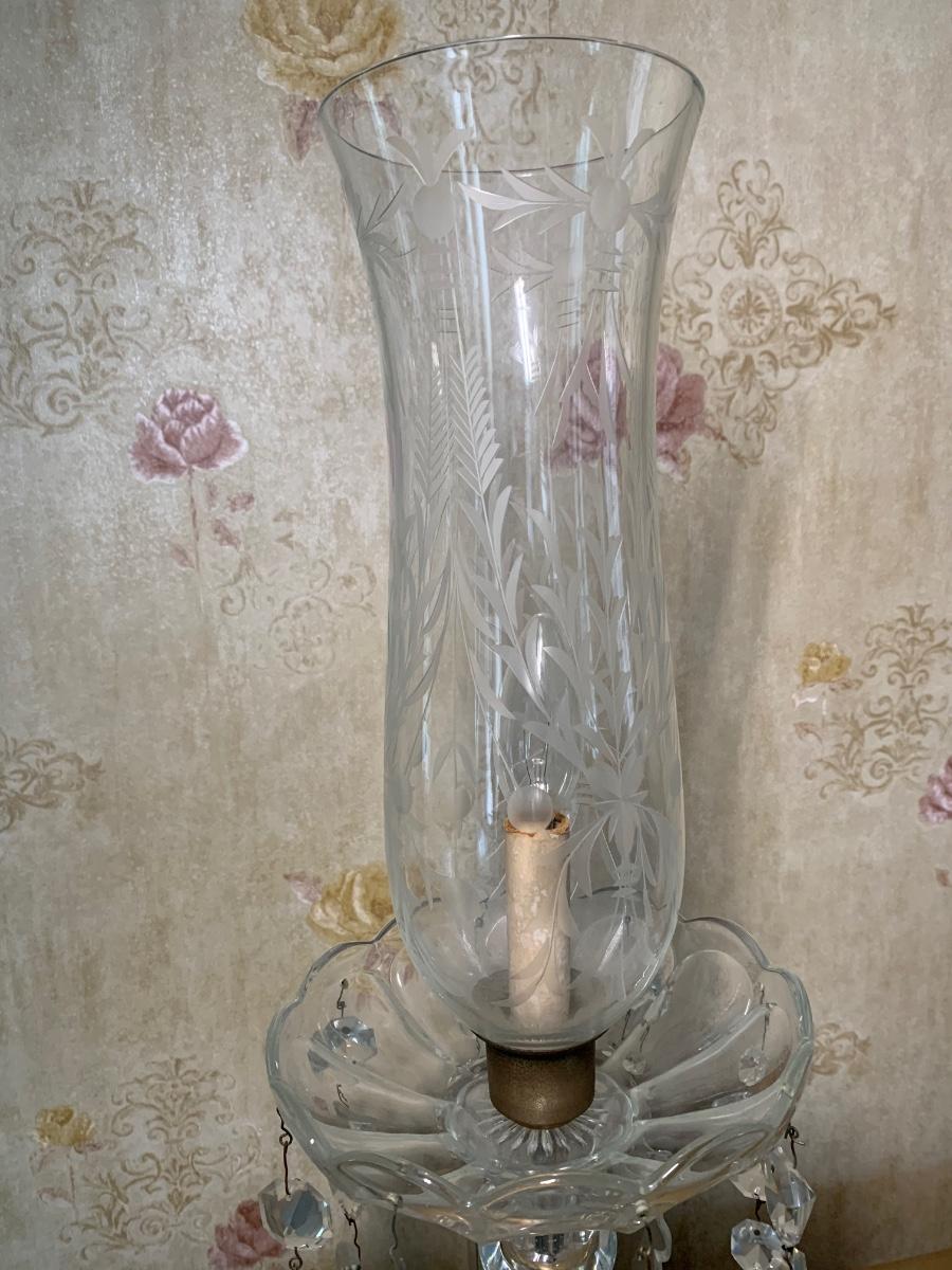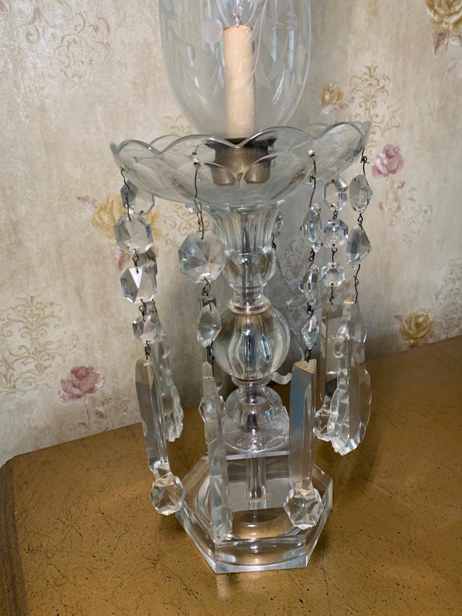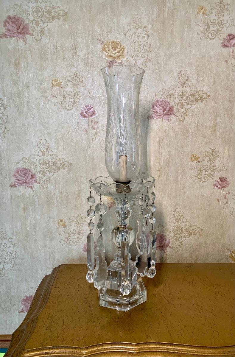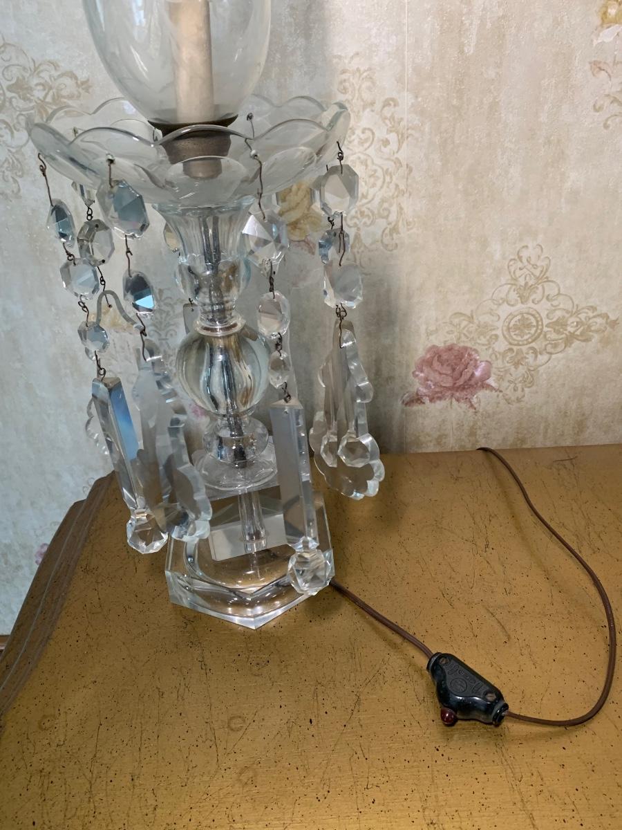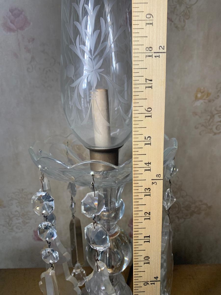 Stunning working crystal hurricane lamp. It is gorgeous and has all of the hanging prisms.