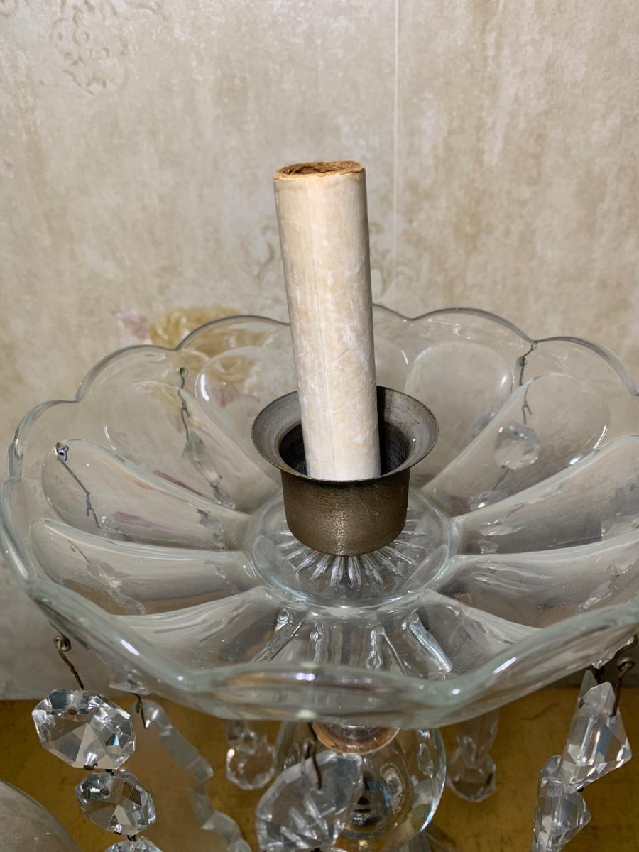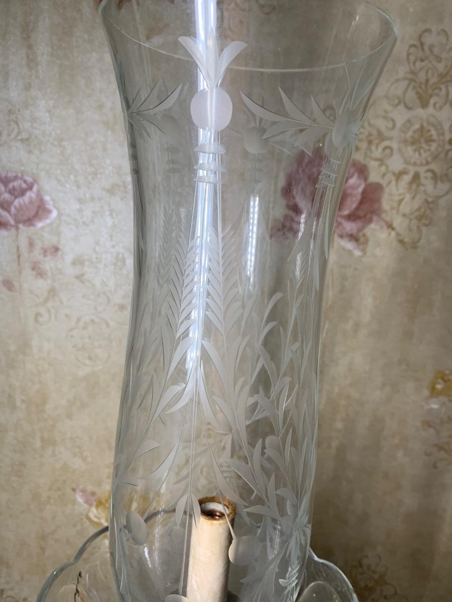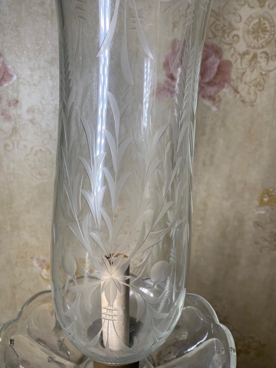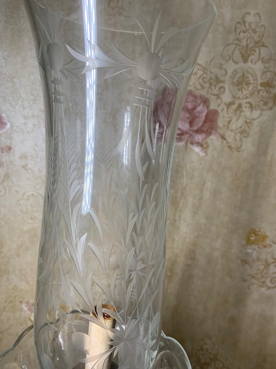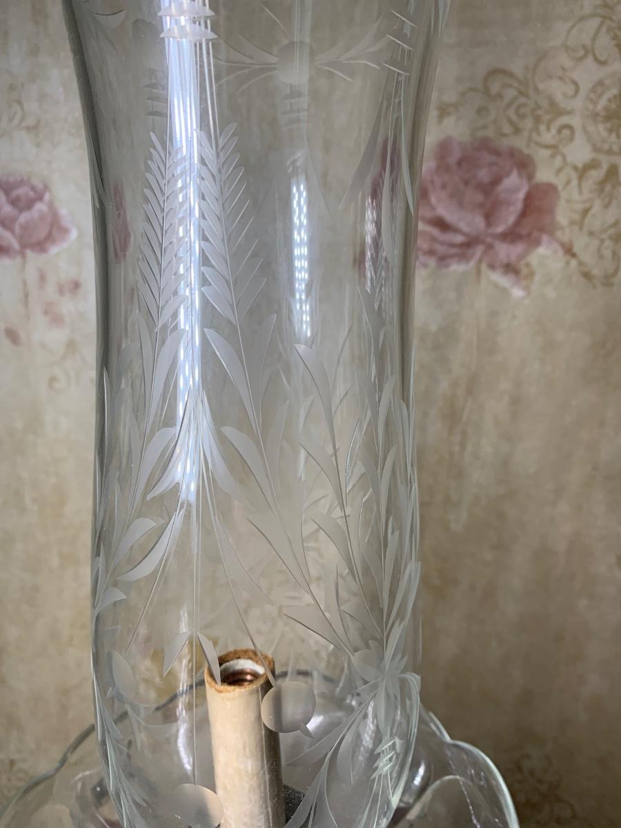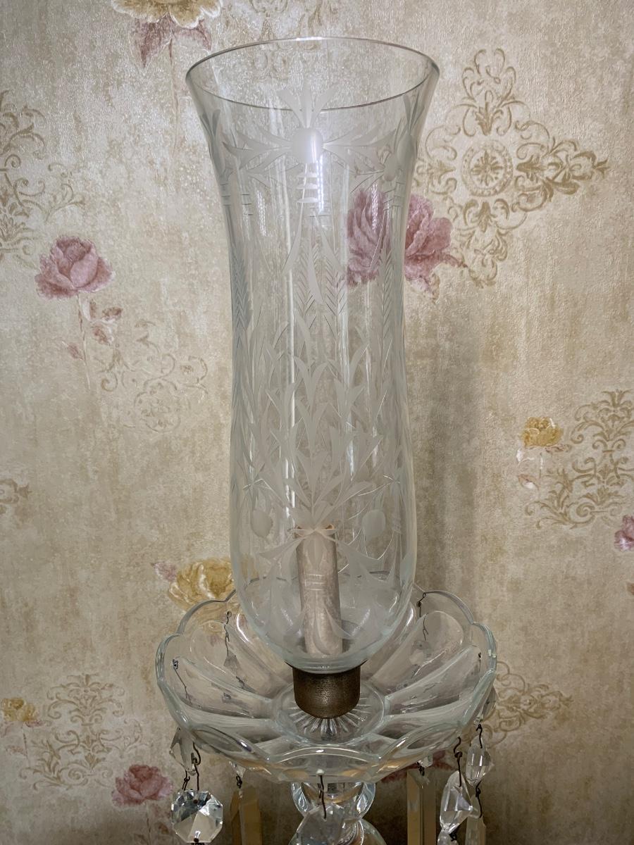 Stunning working crystal hurricane lamp. It is gorgeous and has all of the hanging prisms.