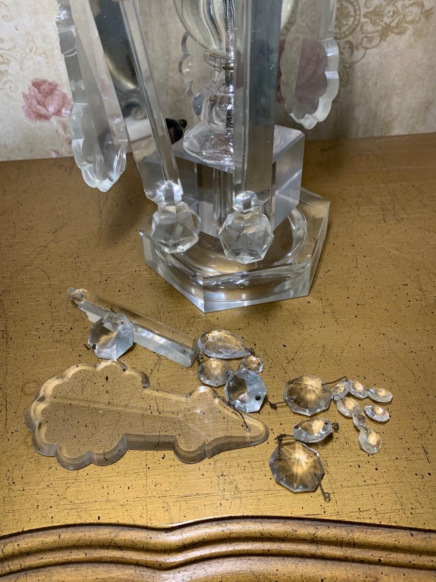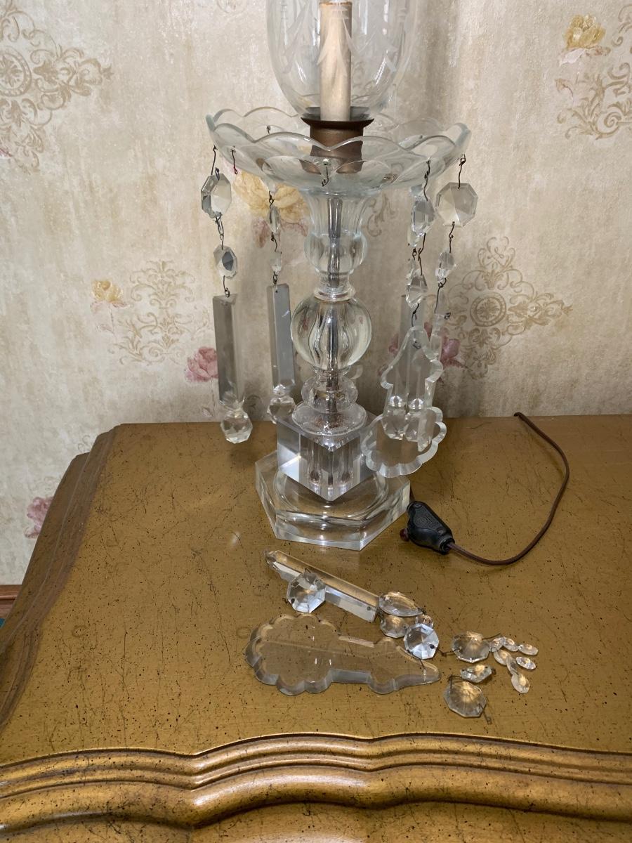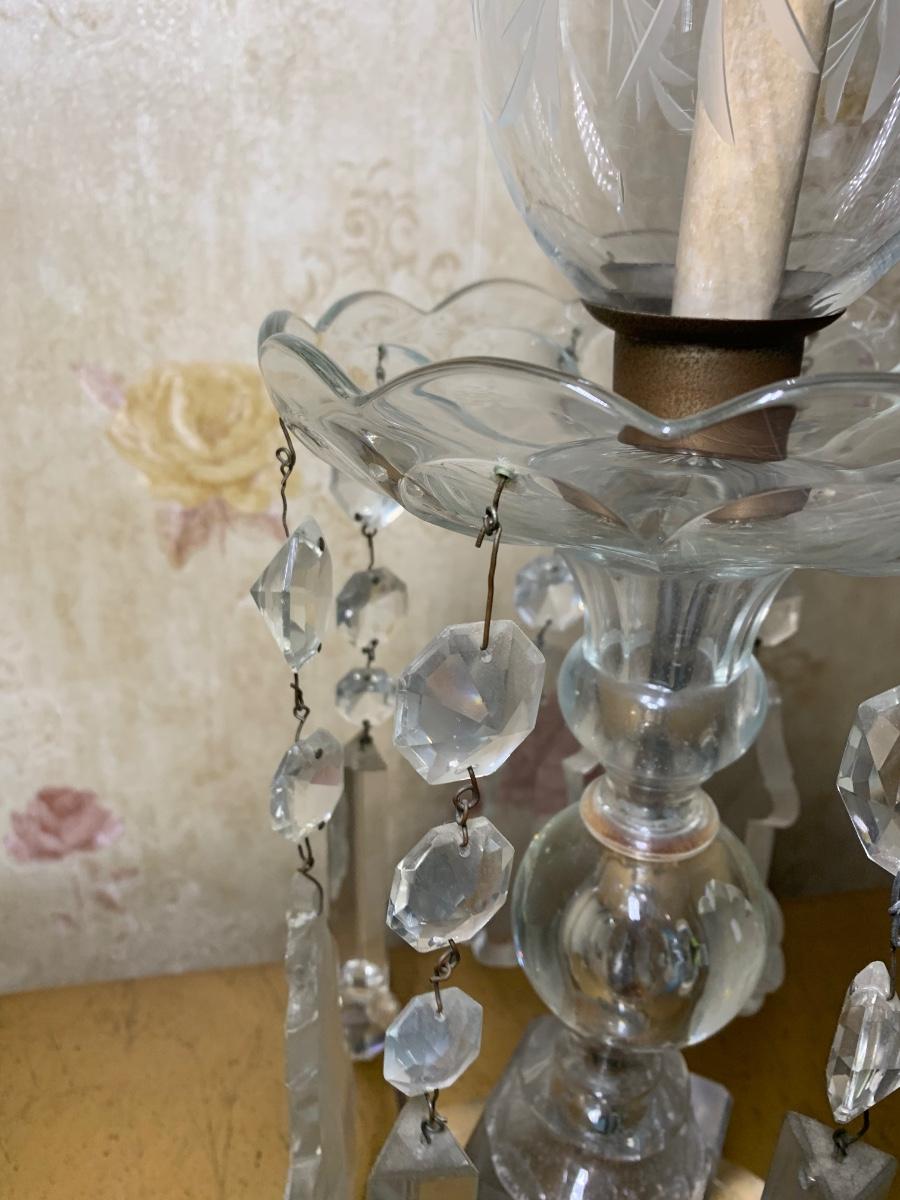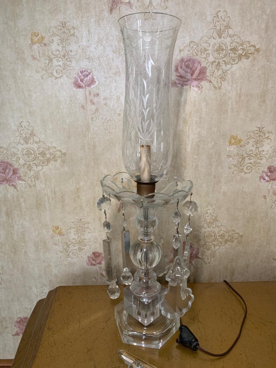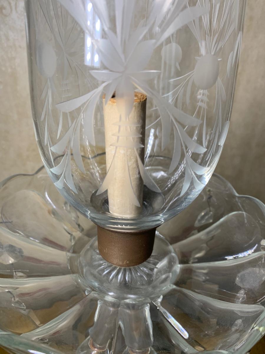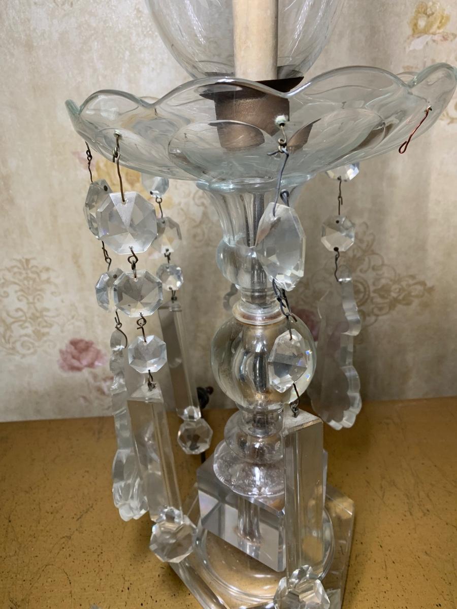 LOT 110R: Vintage Crystal  Hurricane Lamp w/Prisms & Glass Shade