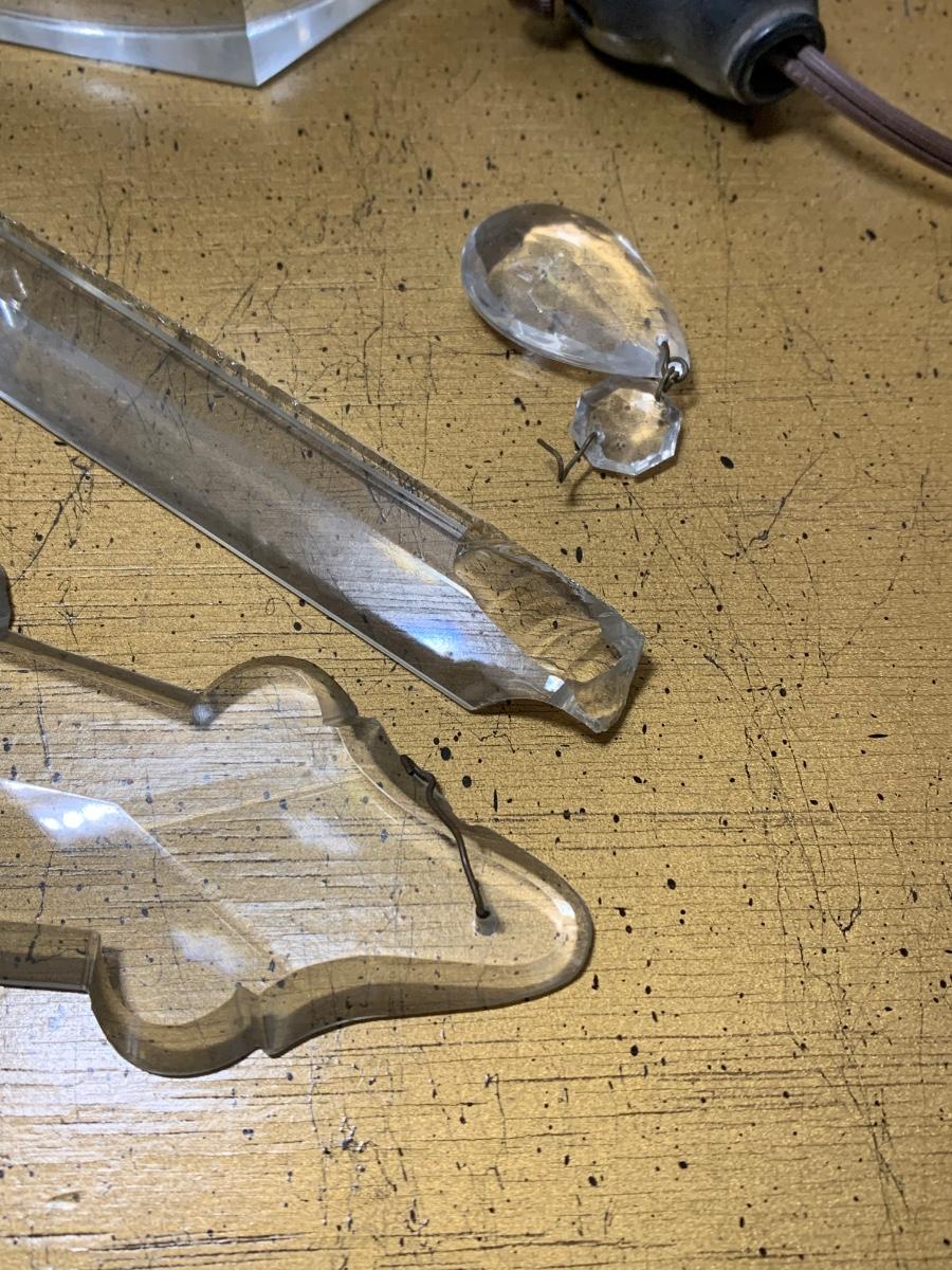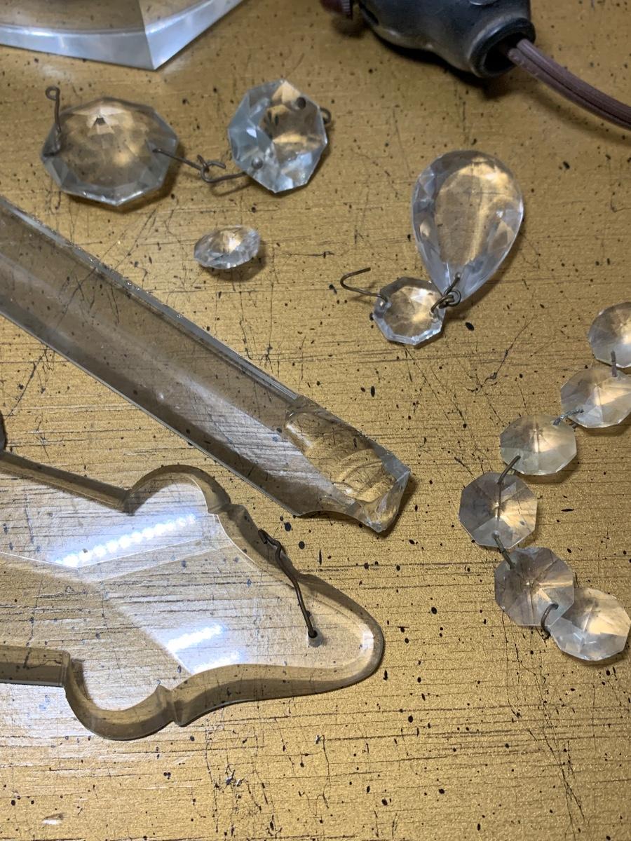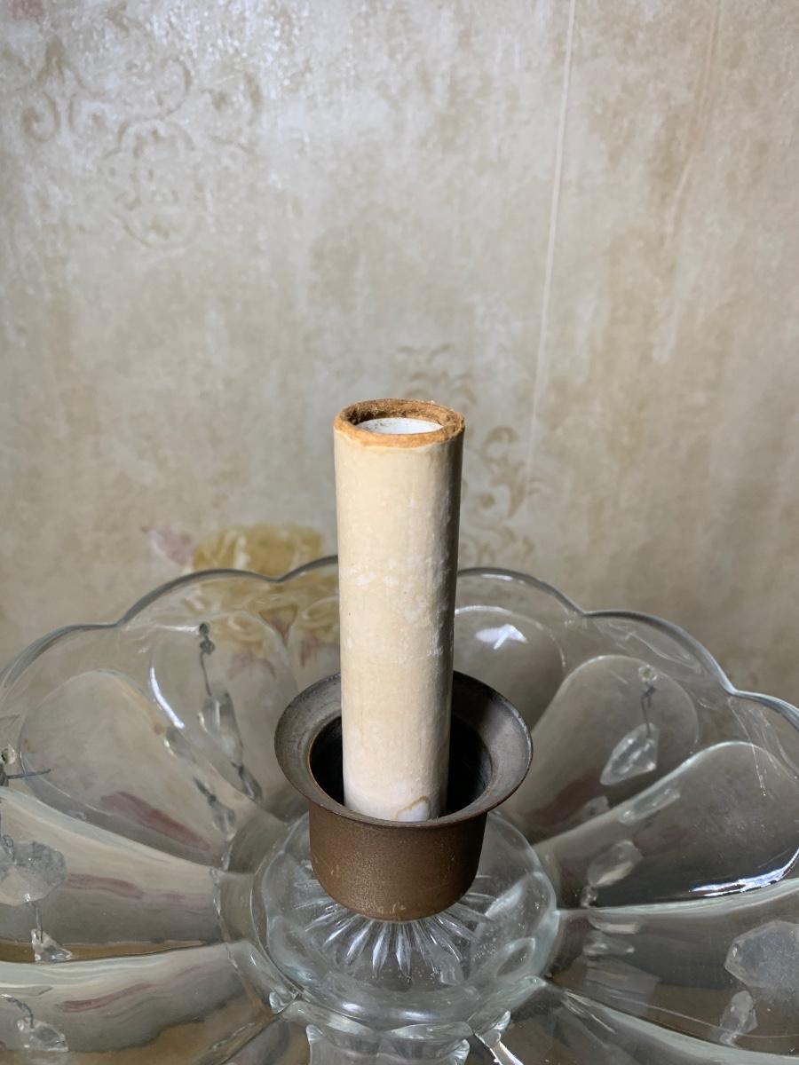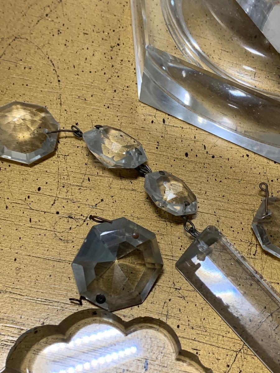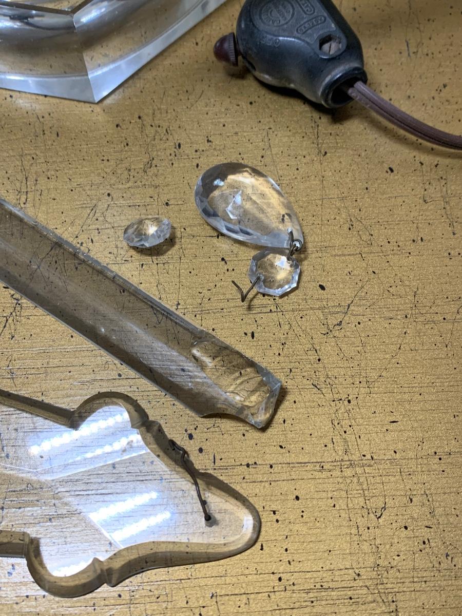 LOT 110R: Vintage Crystal  Hurricane Lamp w/Prisms & Glass Shade