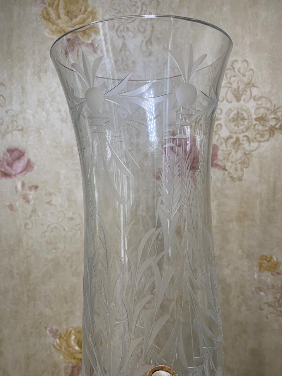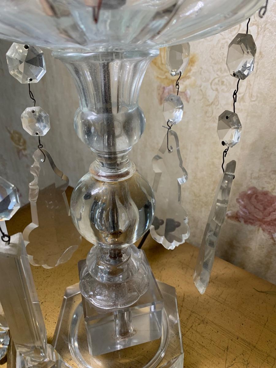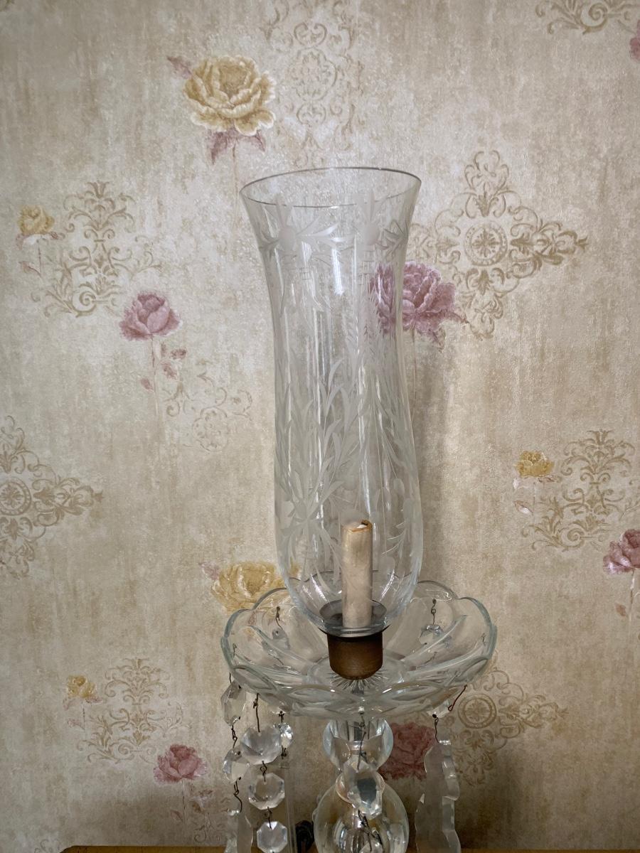 LOT 110R: Vintage Crystal Hurricane Lamp w/Prisms & Glass Shade