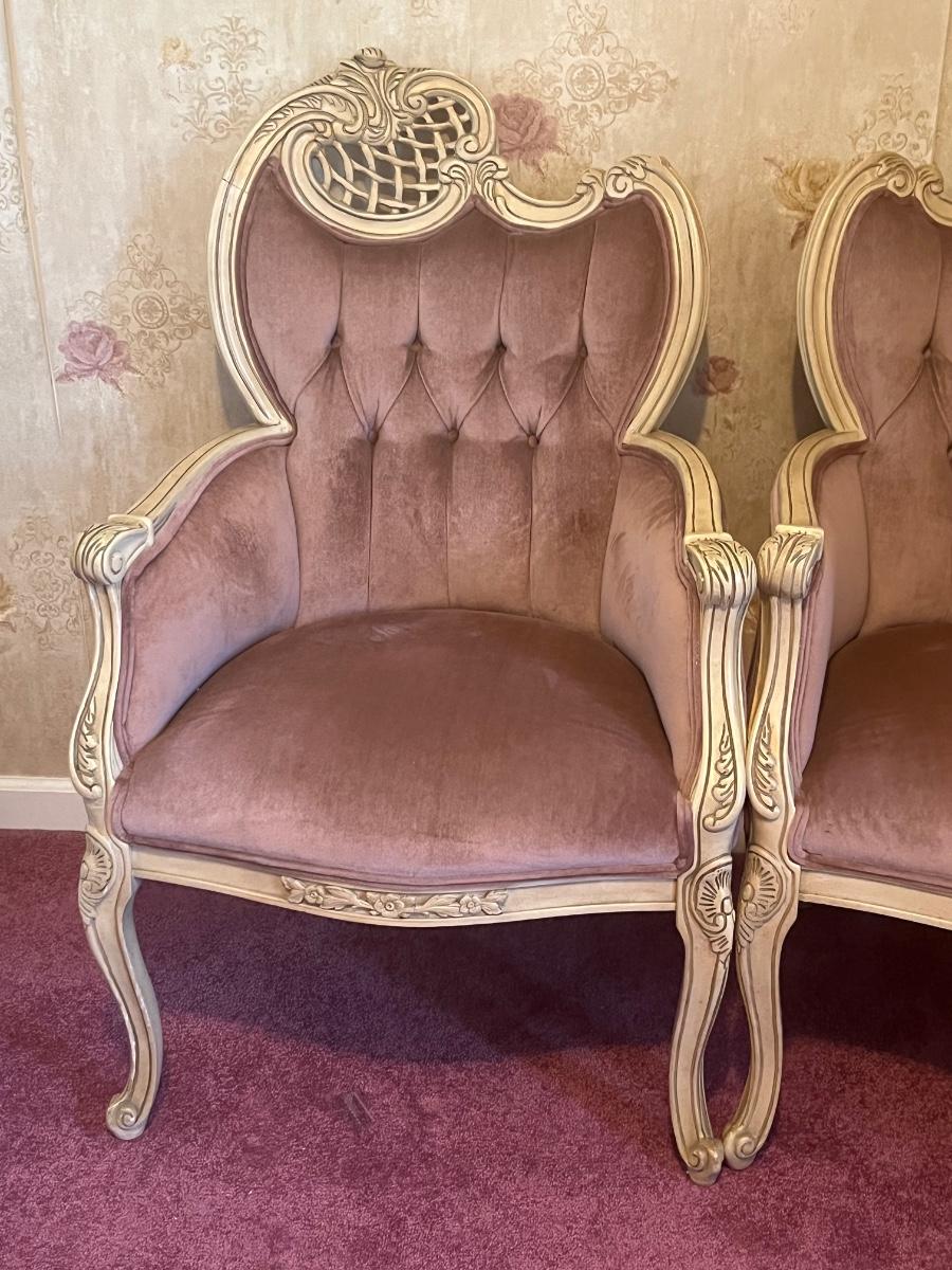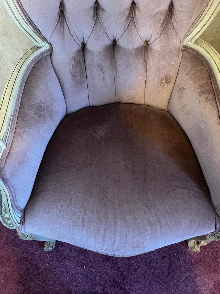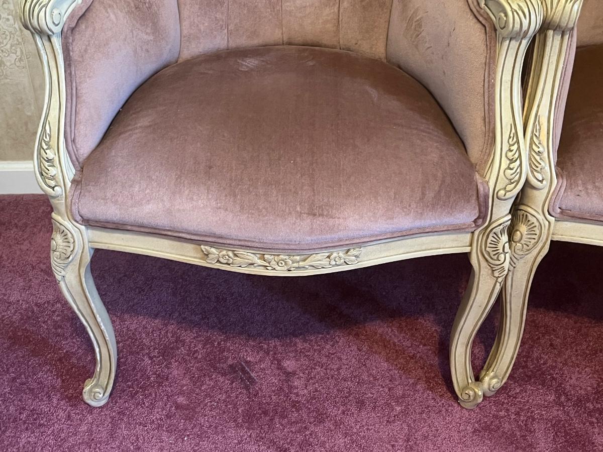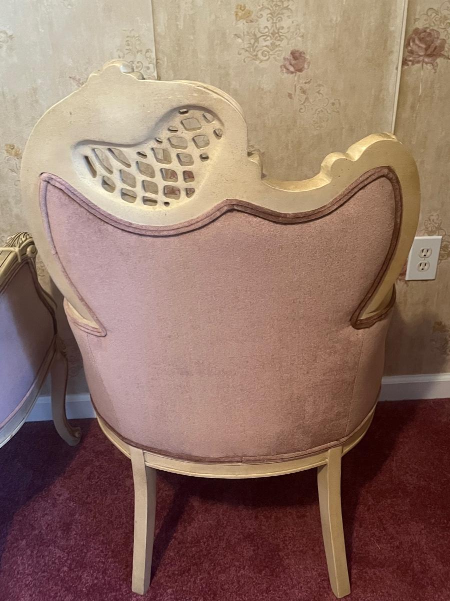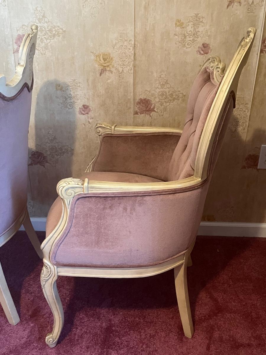 LOT 125C: Vintage Ornate Carved, Mauve Velvet, French Provincial Tufted Chairs