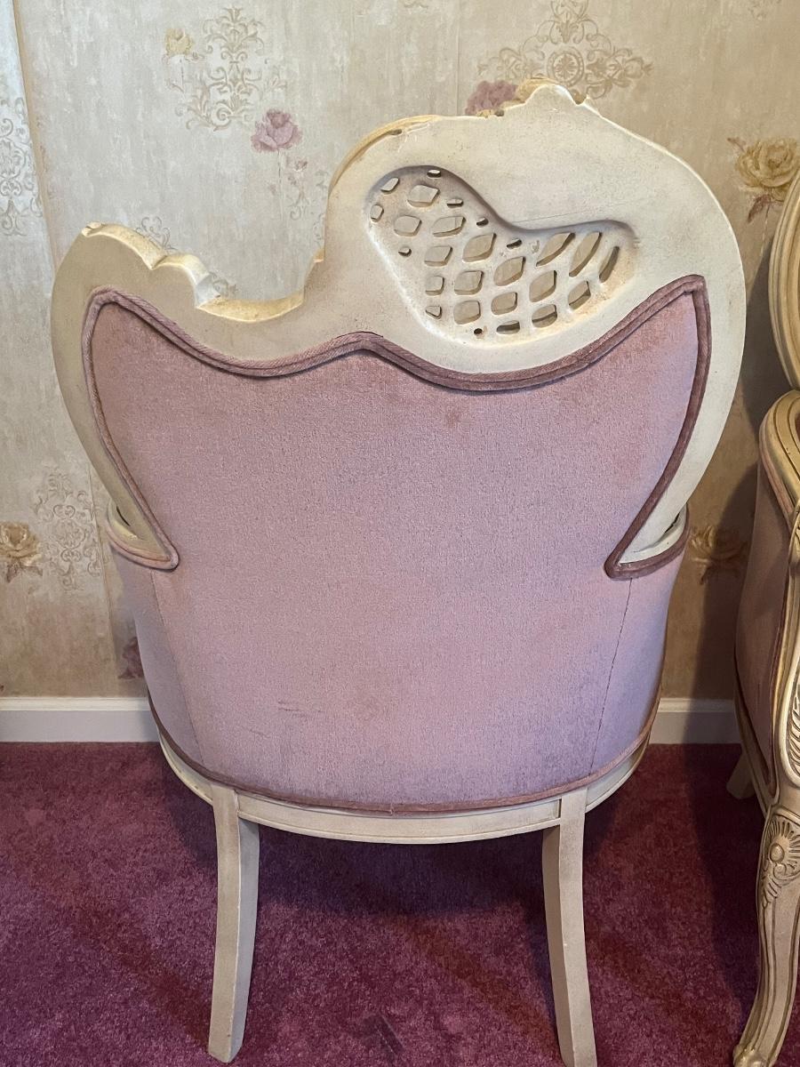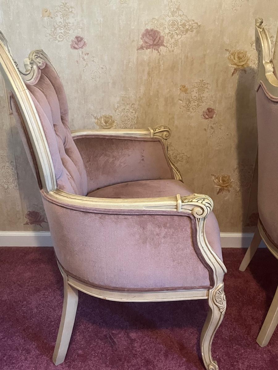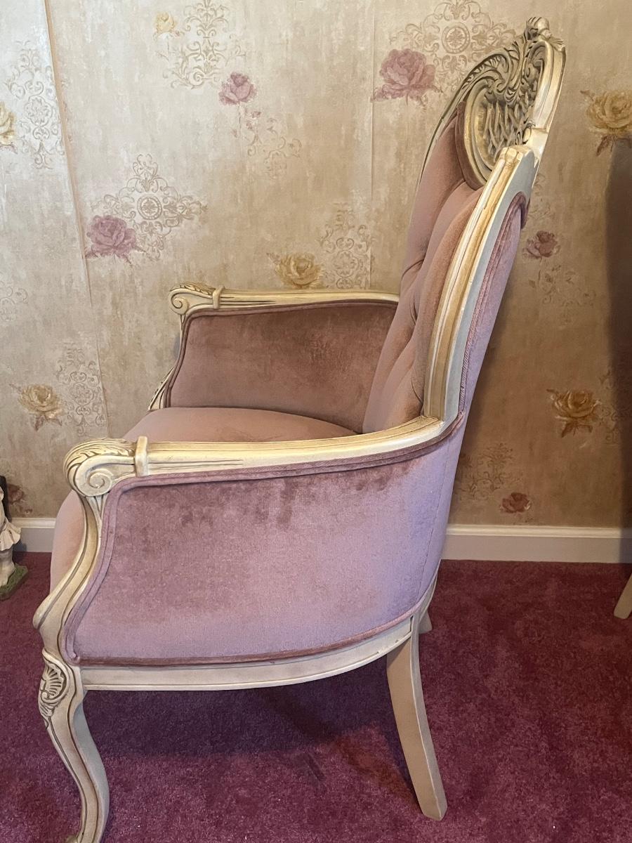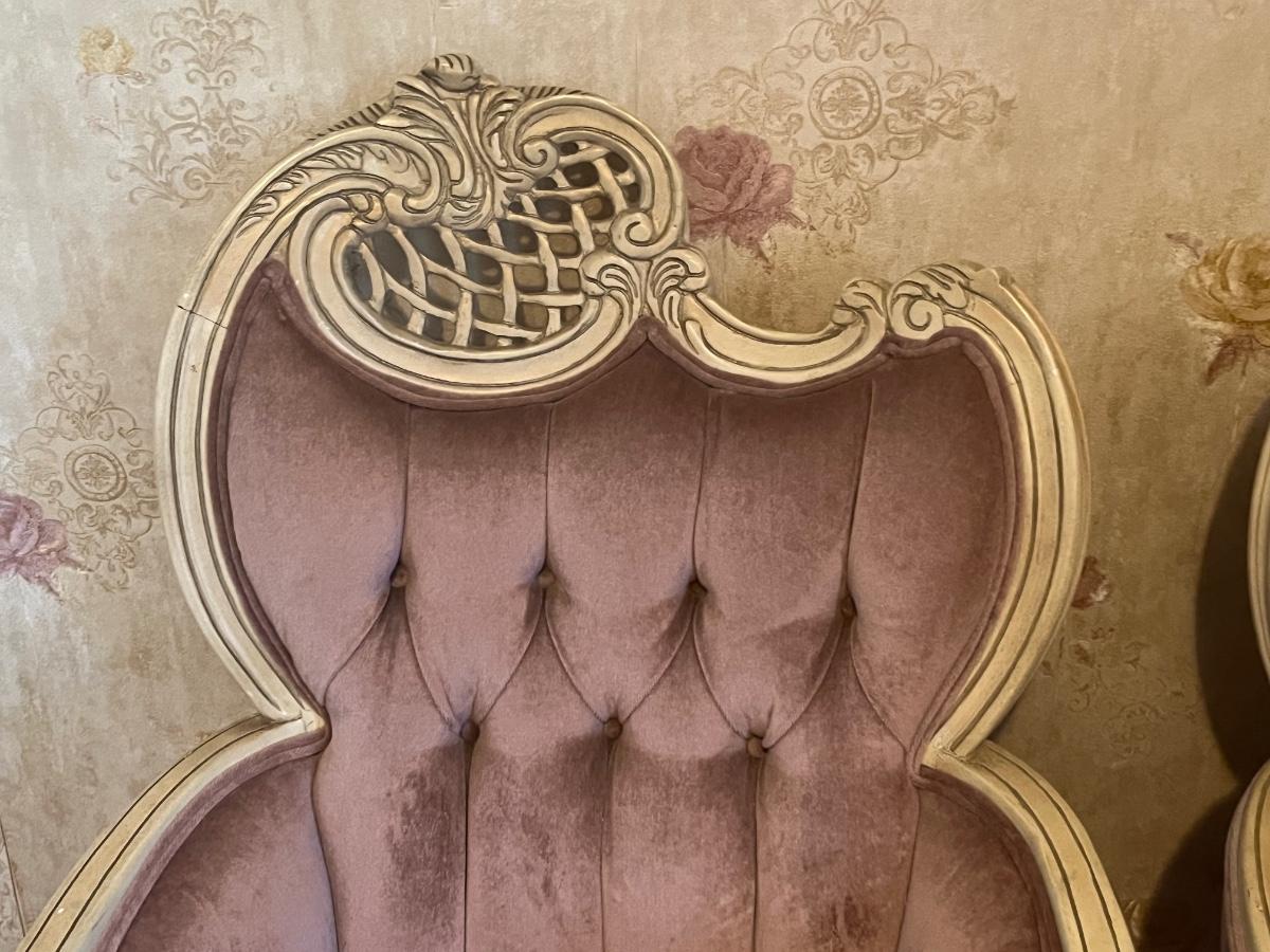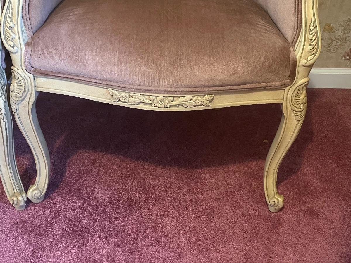 LOT 125C: Vintage Ornate Carved, Mauve Velvet, French Provincial Tufted Chairs