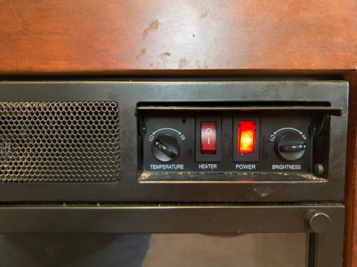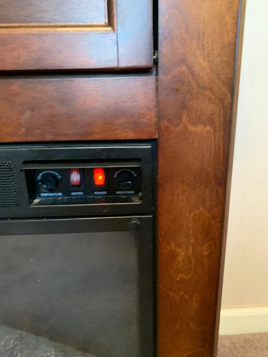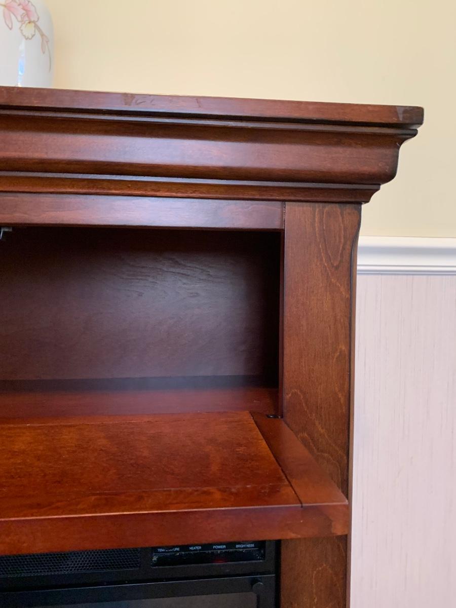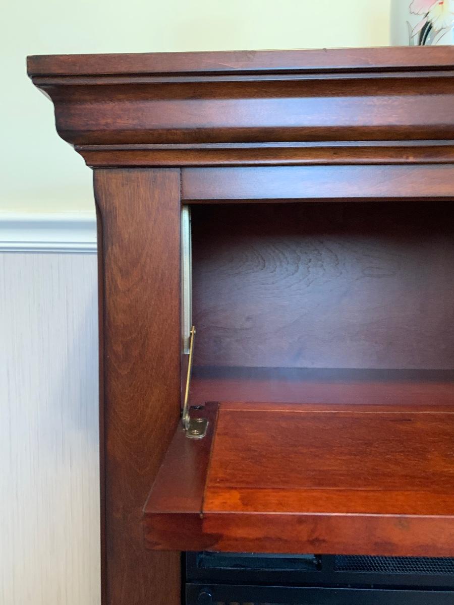 Working electric fireplace with drop down storage (32 x 12.5 x 38) Vase and shoes are included.