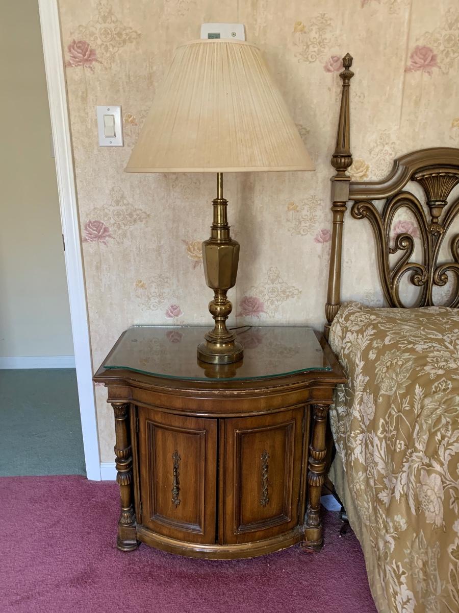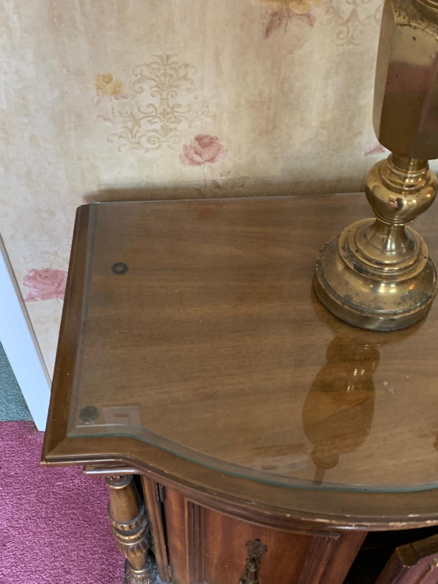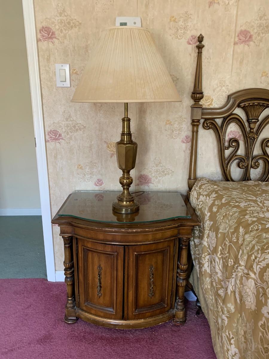 Bedside table with glass for protection and brass working lamp (28 x 15 x 24)