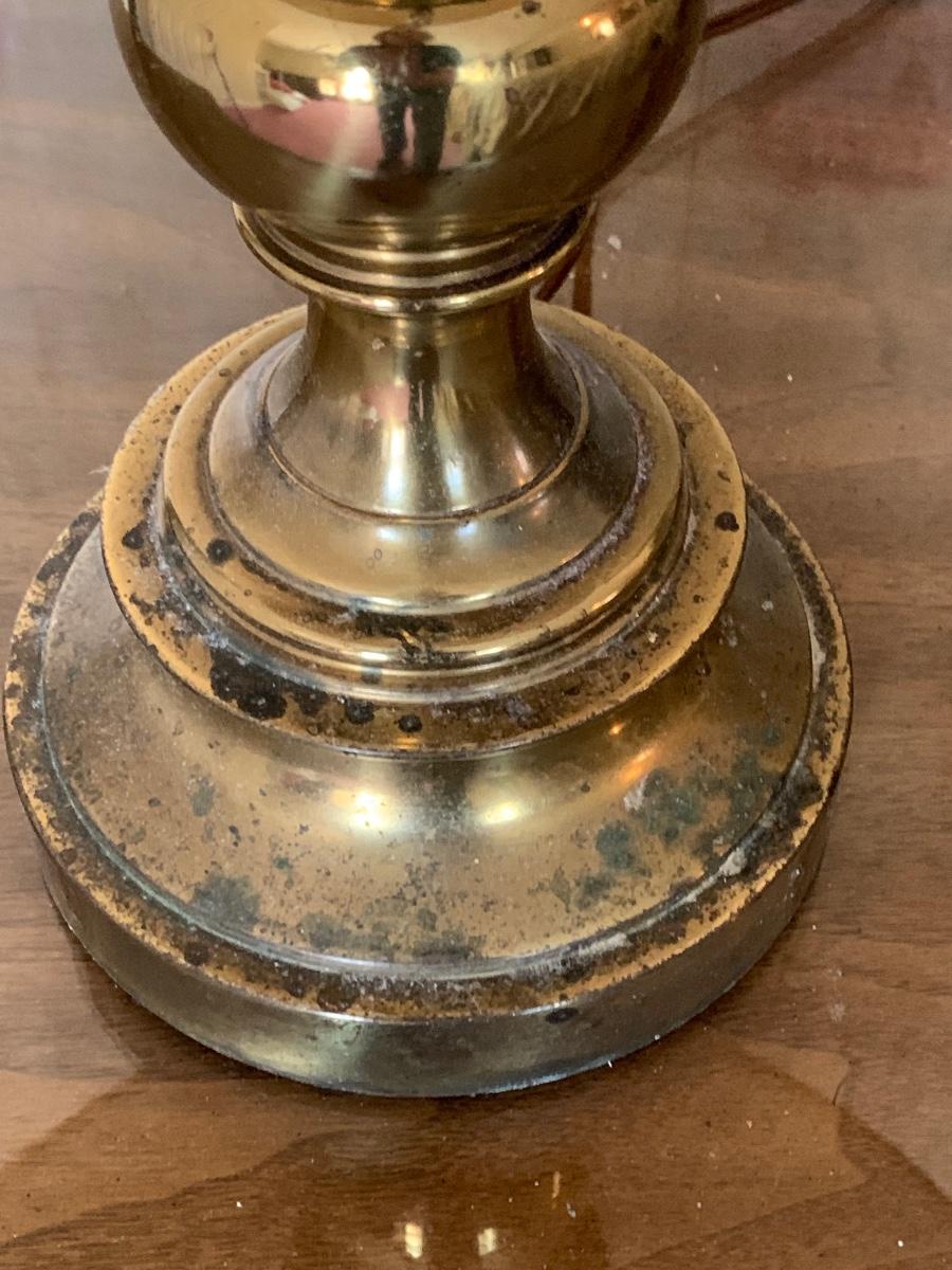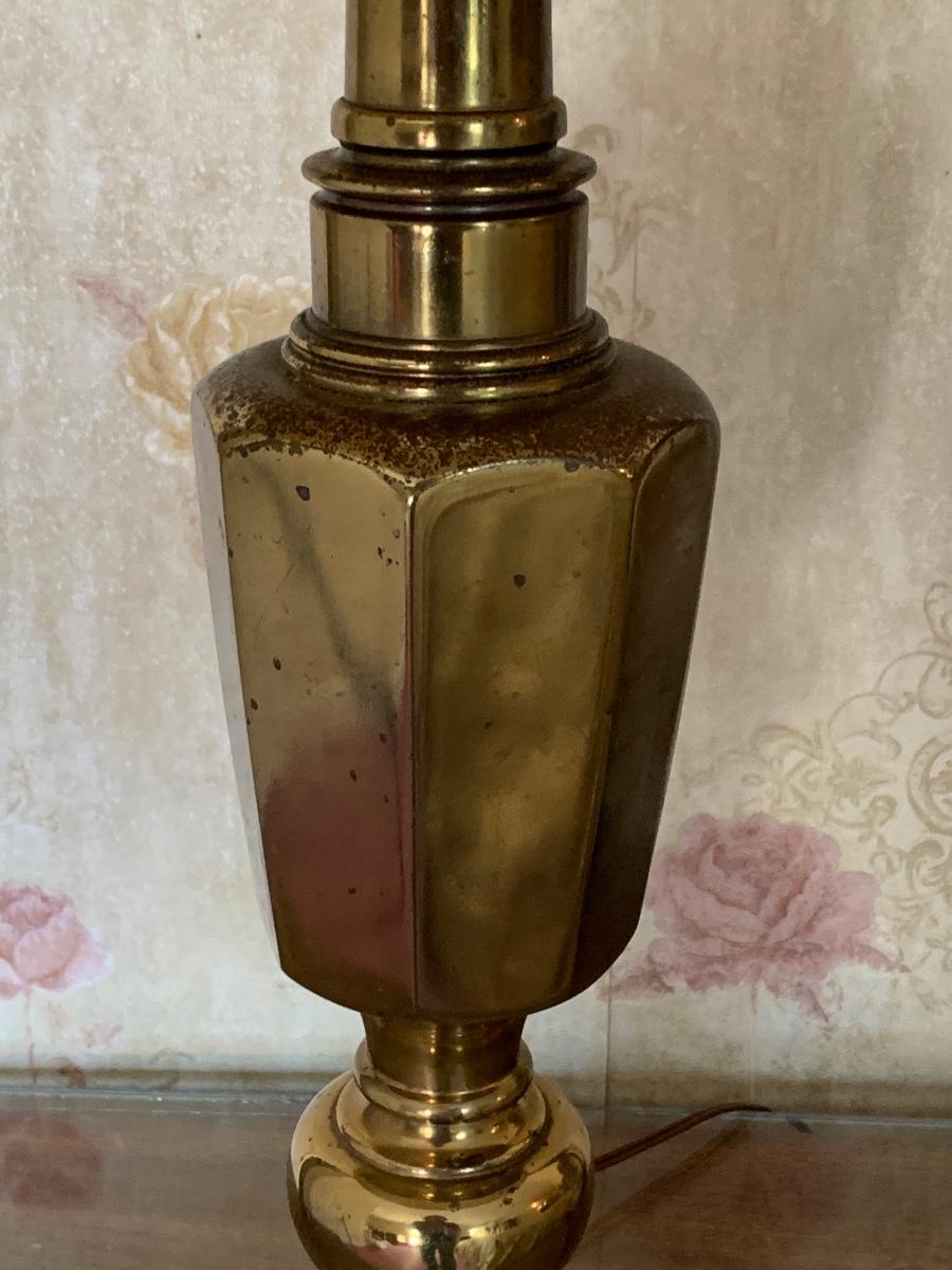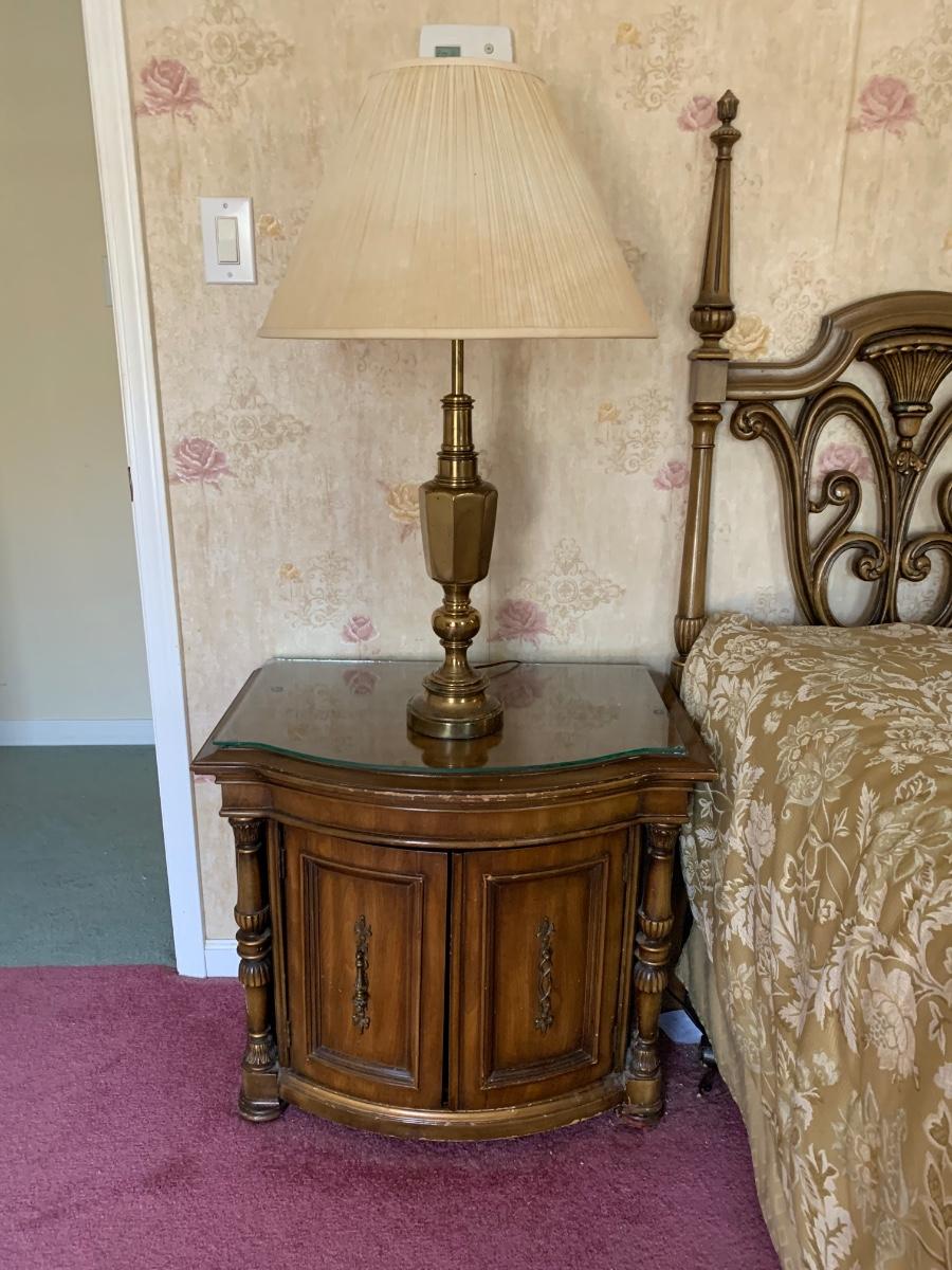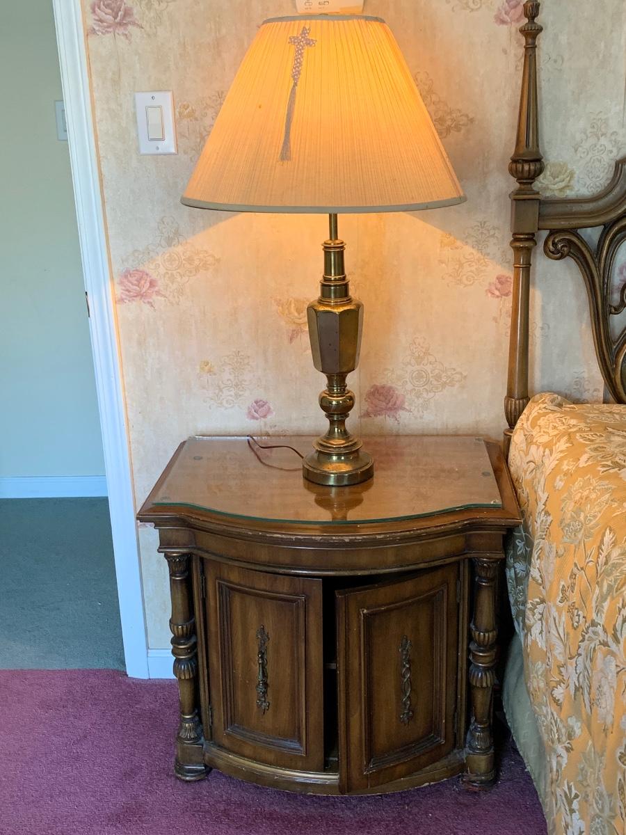 Bedside table with glass for protection and brass working lamp (28 x 15 x 24)