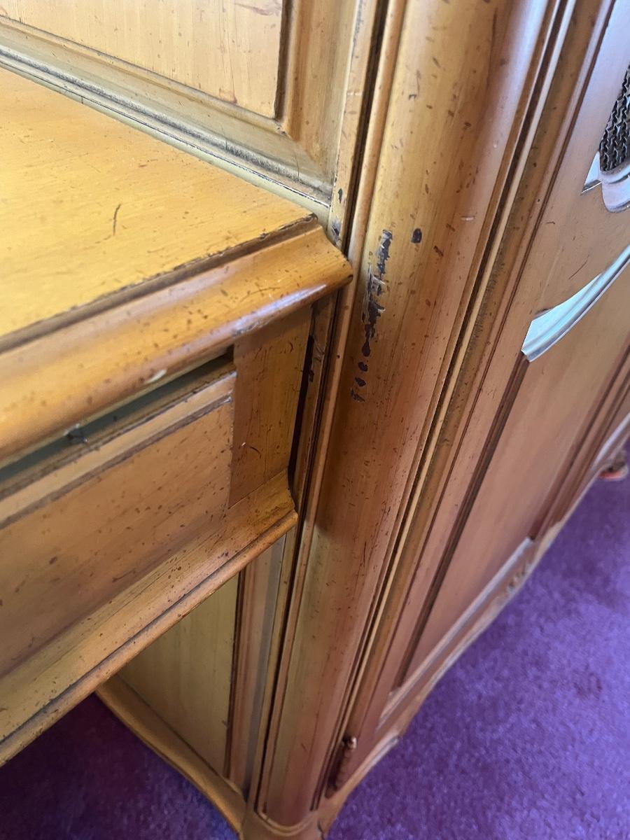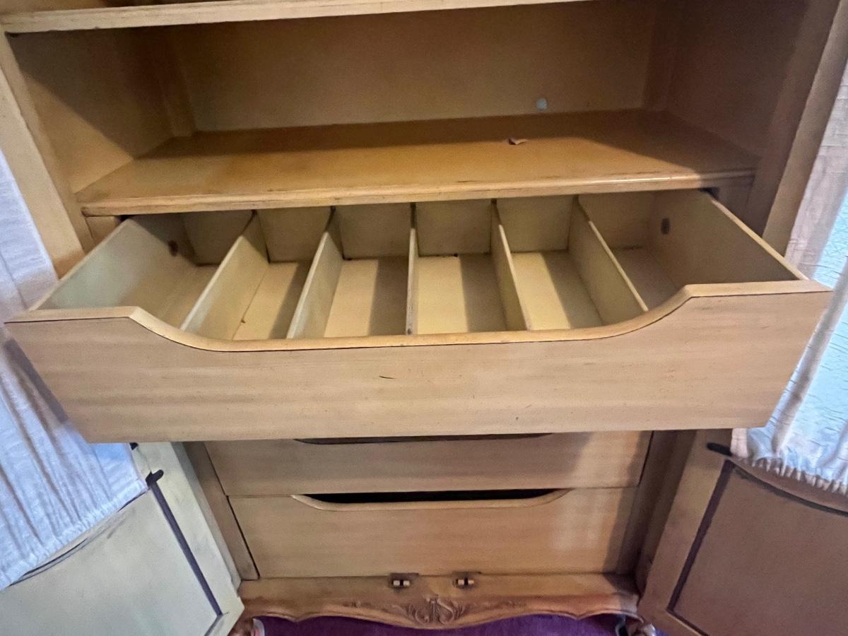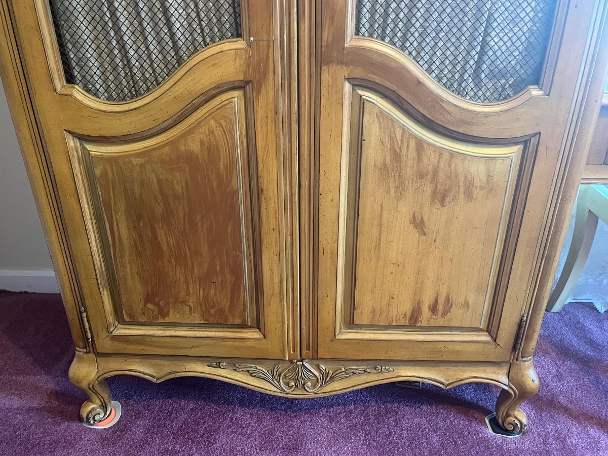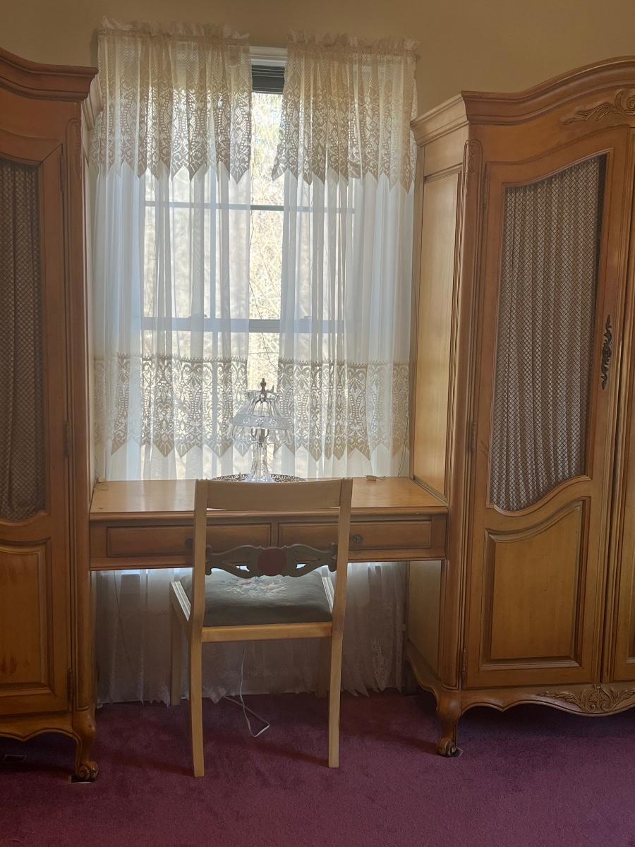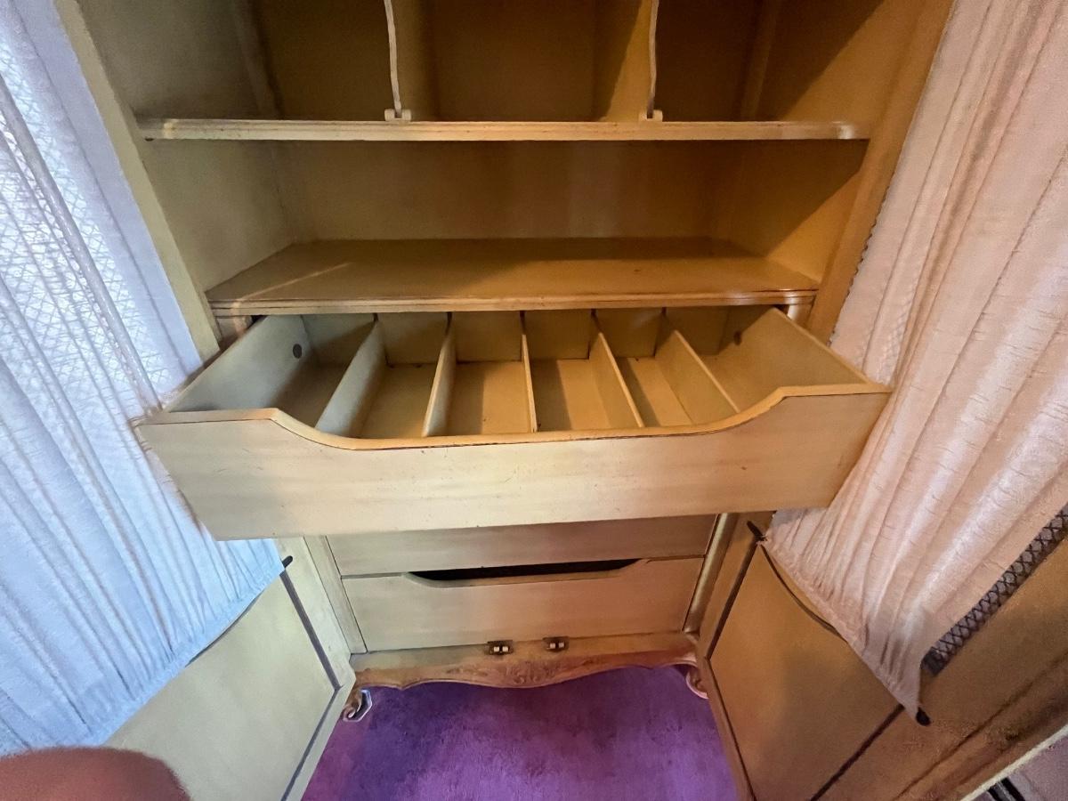 Armoir-42"x20"x78". Desk-21"x34". Please see all pictures as they are the best representation of the items. The pictures show condition, measurements if taken, and what is included in the lot. Due to the large amount that we photograph and the time frame, we are not always able to take measurements. All items unless noted, are pre-owned and have been used. If you purchased furniture, you must bring help. We do not allow one person to carry large furniture out on their own. Bring help, tools and a truck for the safety of our client’s homes, and your personal safety. Any damages that result to the property including walls, and floors due to moving of the furniture will be charged to the buyer. Company policy. Thank you.