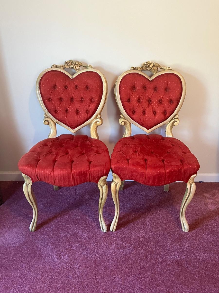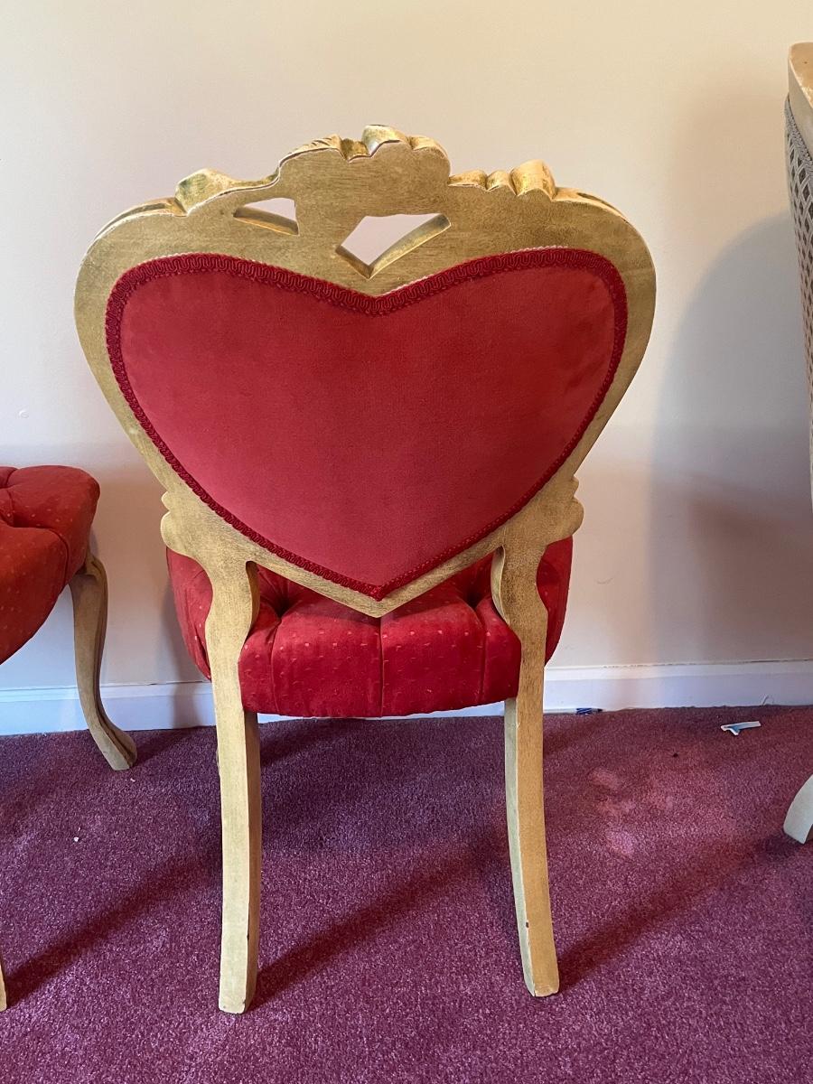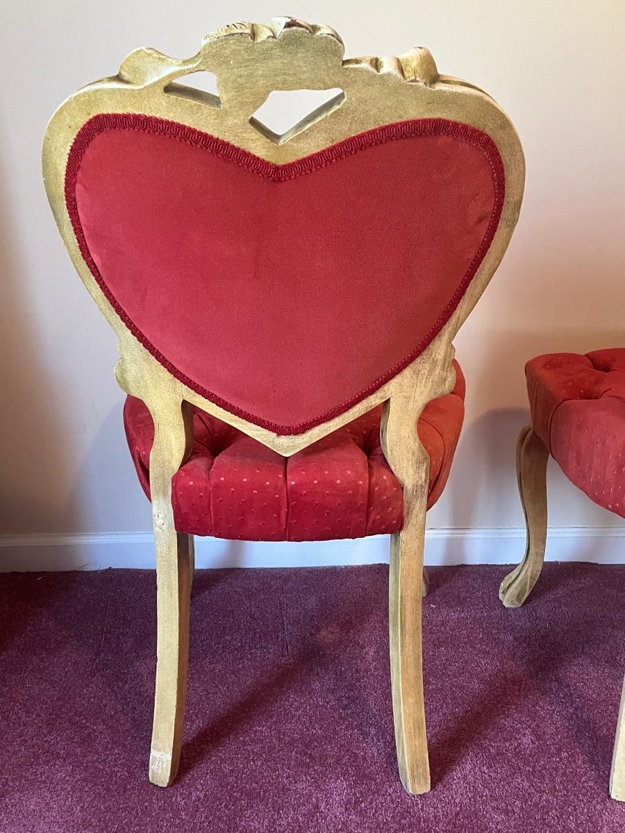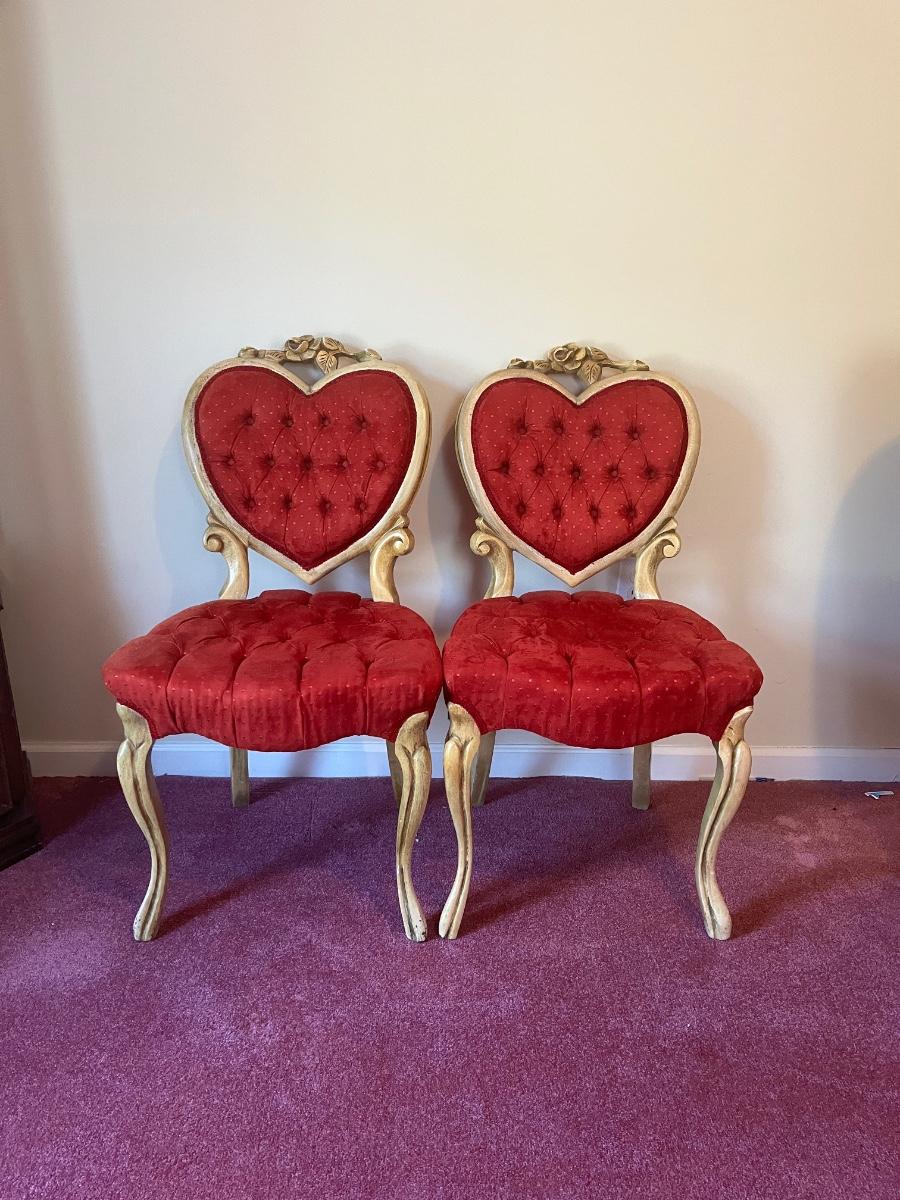 Stunning heart shaped tufted red chairs 21"x37".