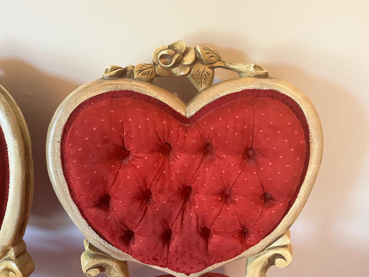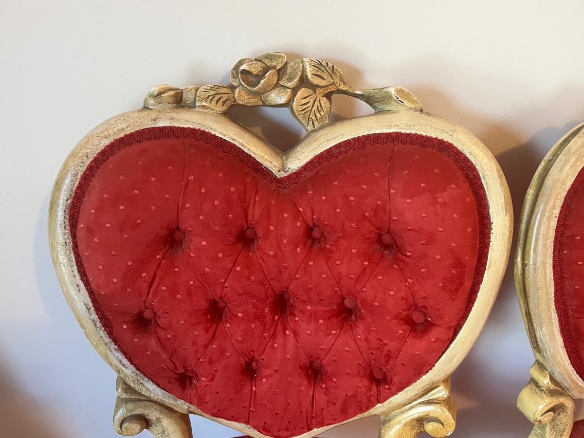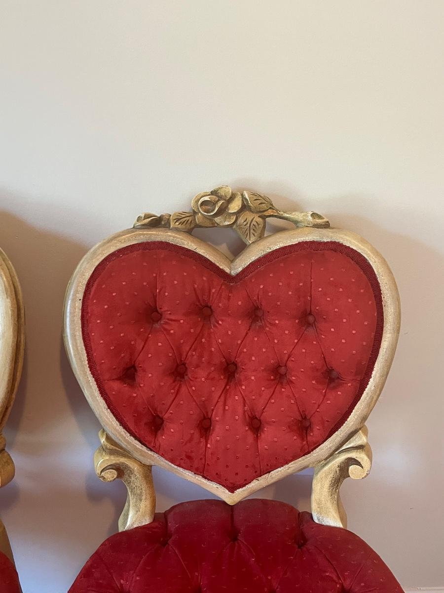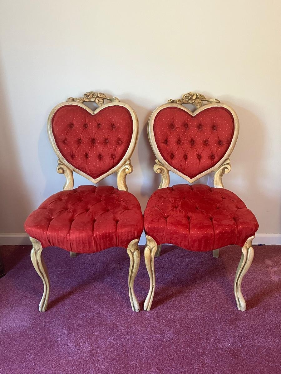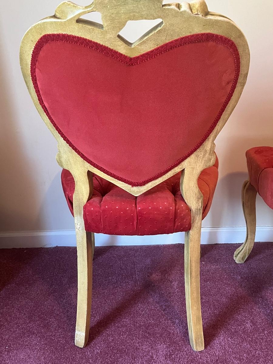 Stunning heart shaped tufted red chairs 21"x37".