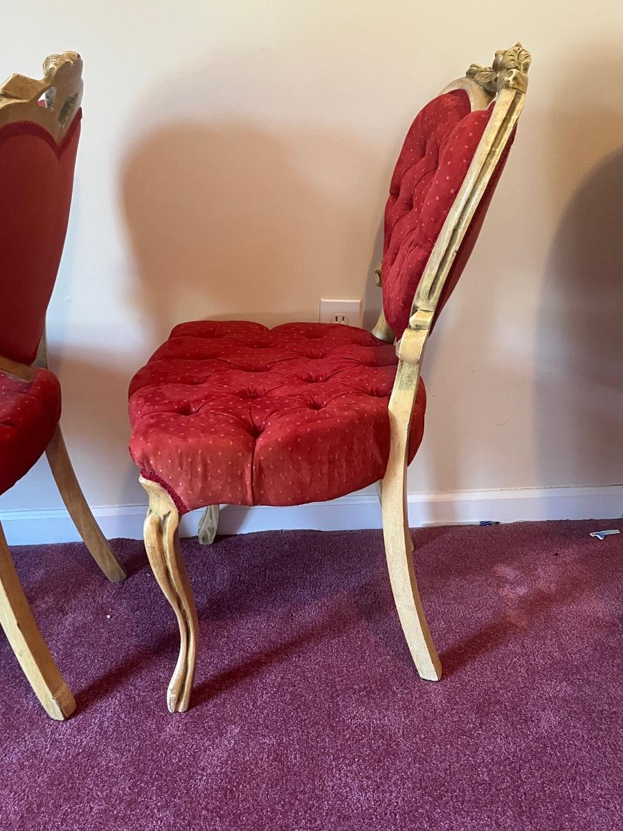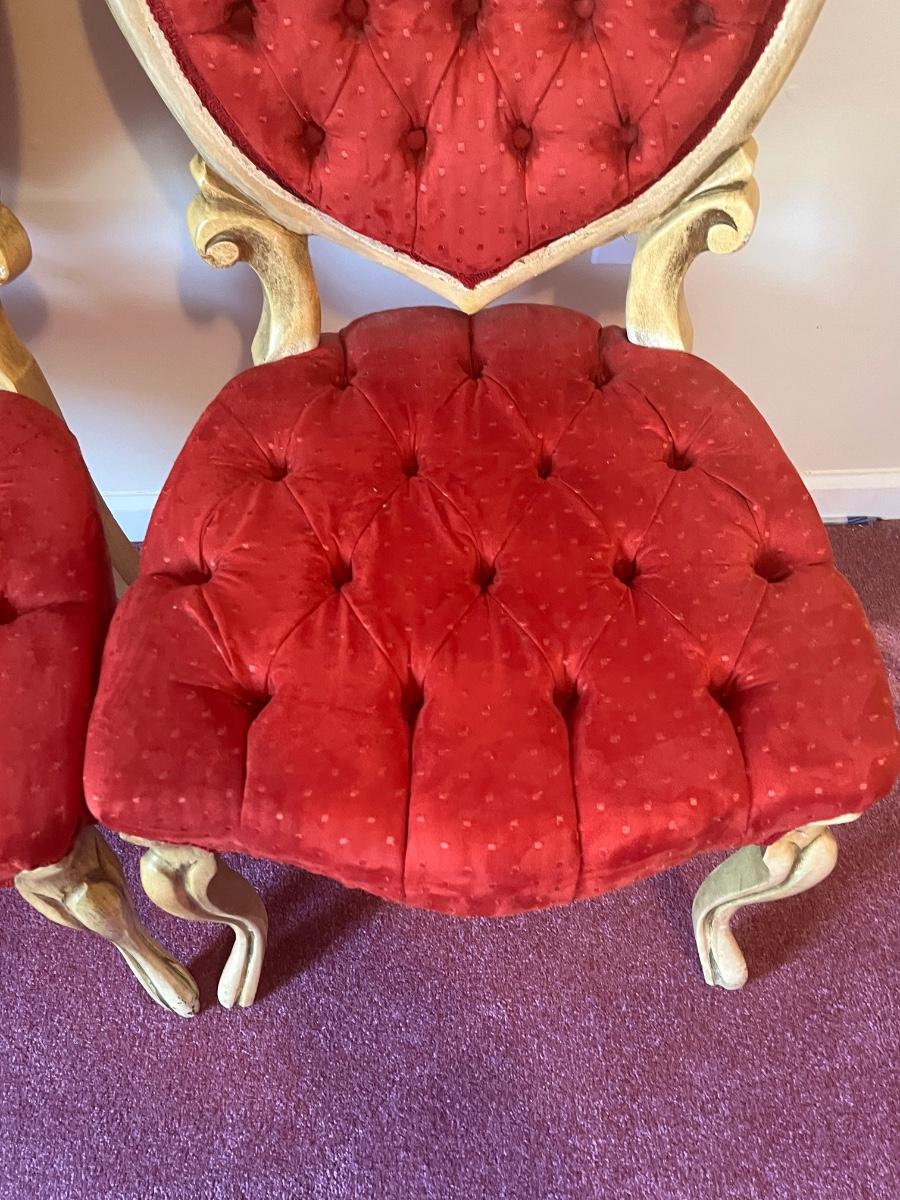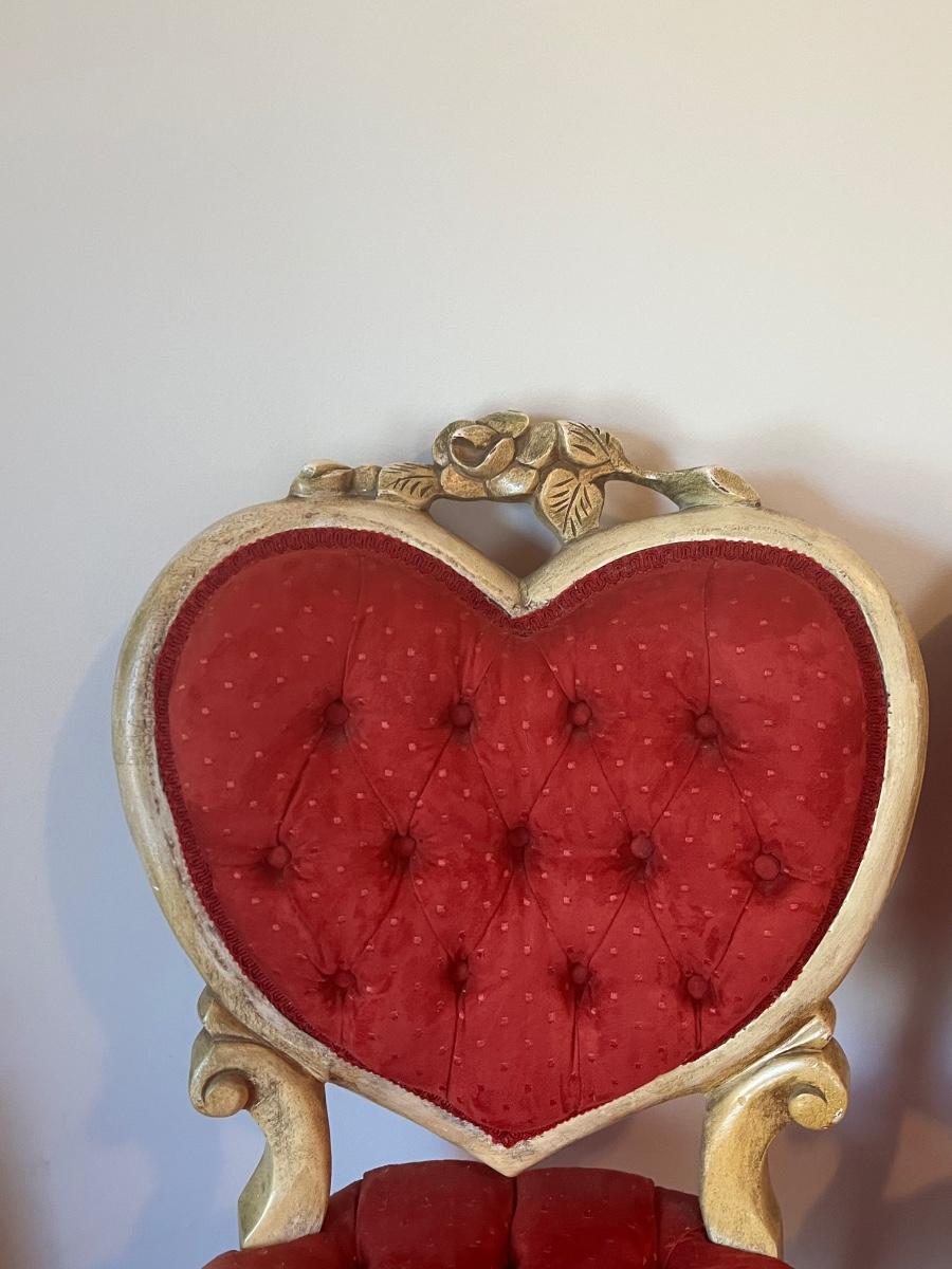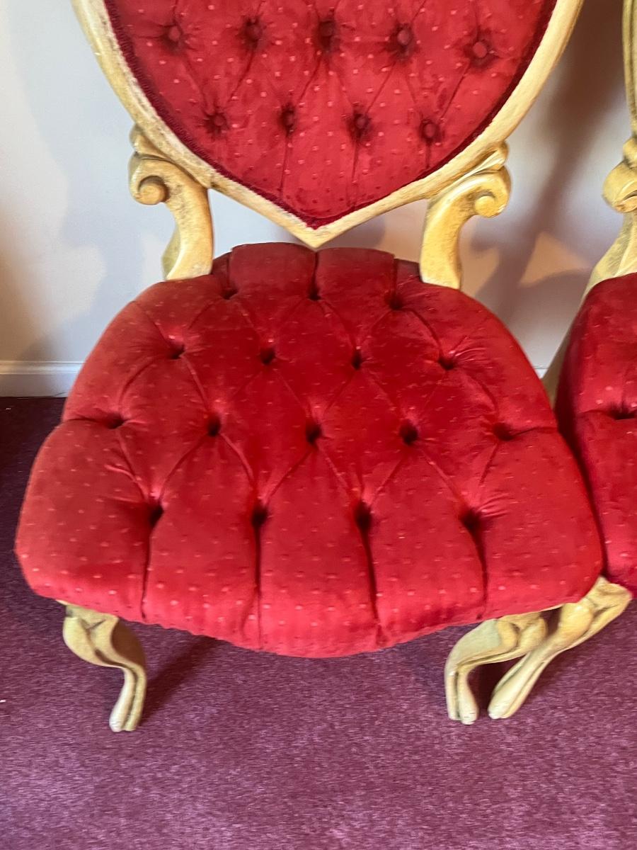 Stunning heart shaped tufted red chairs 21"x37".