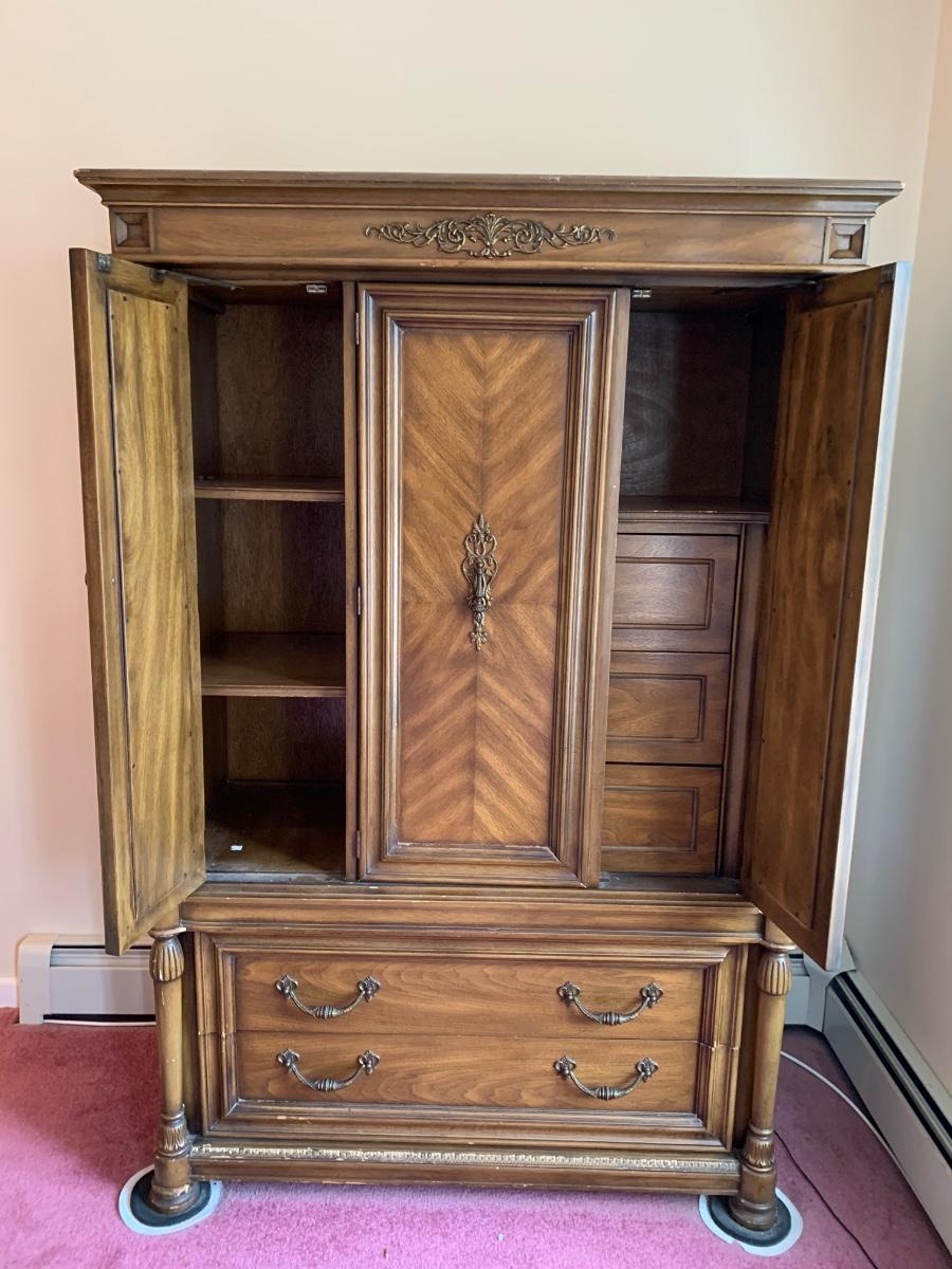 Large armoire with plenty of storage ready for up cycling (45 x 21 x 66).