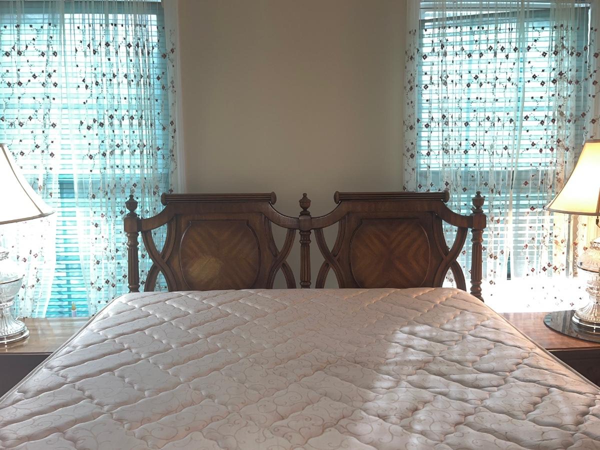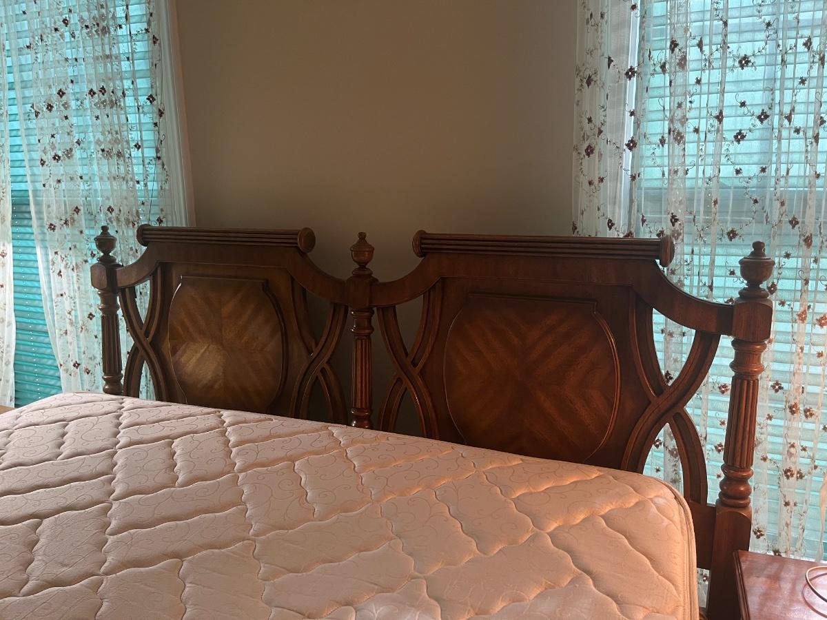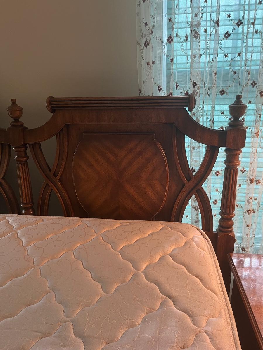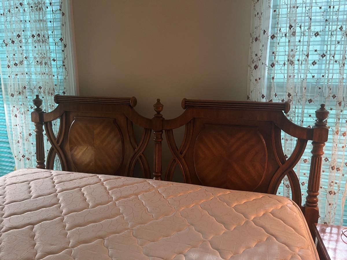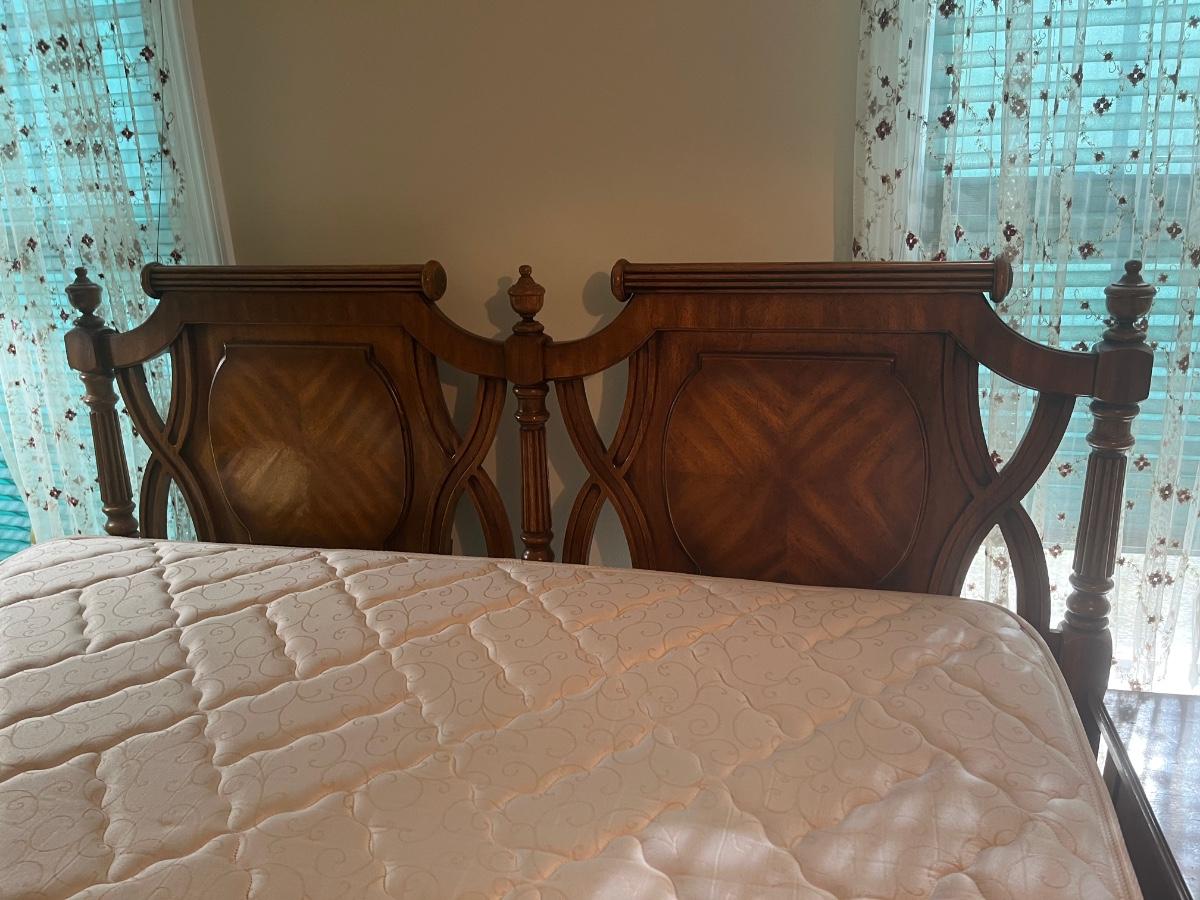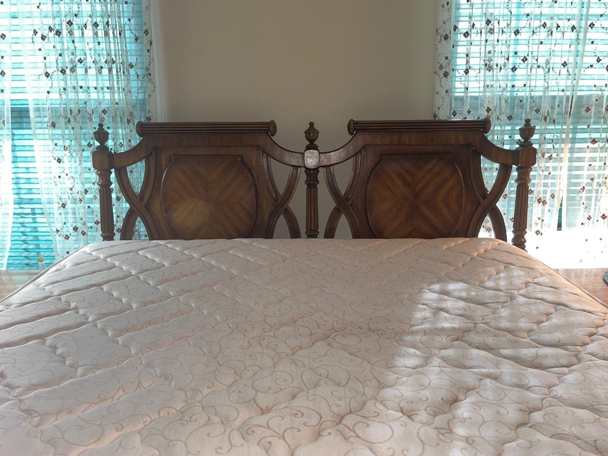 Vintage Headboard and mattress. Please see all pictures as they are the best representation of the items. The pictures show condition, measurements if taken, and what is included in the lot. Due to the large amount that we photograph and the time frame, we are not always able to take measurements. All items unless noted, are pre-owned and have been used. If you purchased furniture, you must bring help. We do not allow one person to carry large furniture out on their own. Bring help, tools and a truck for the safety of our client’s homes, and your personal safety. Any damages that result to the property including walls, and floors due to moving of the furniture will be charged to the buyer. Company policy. Thank you.