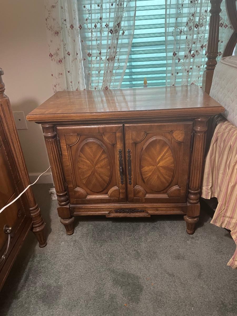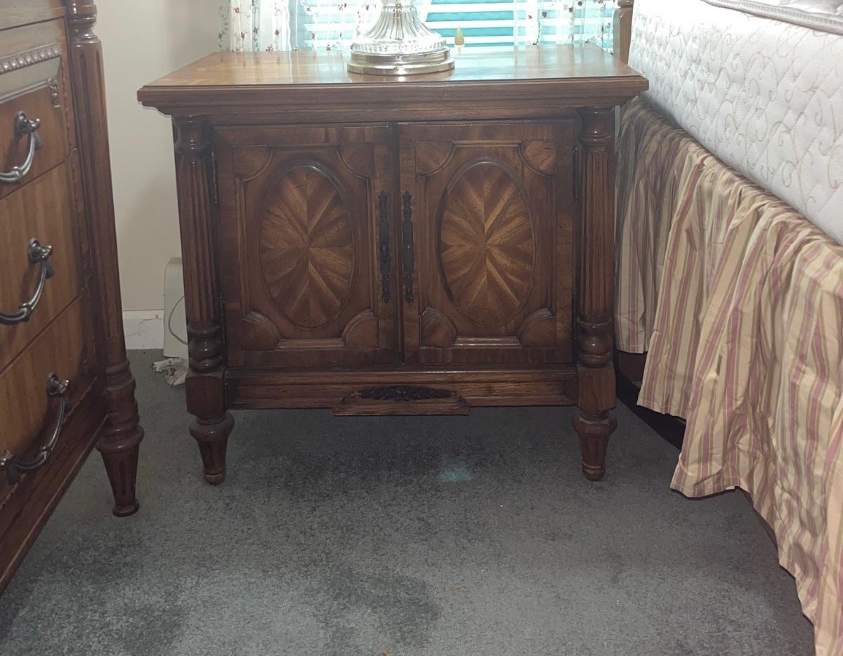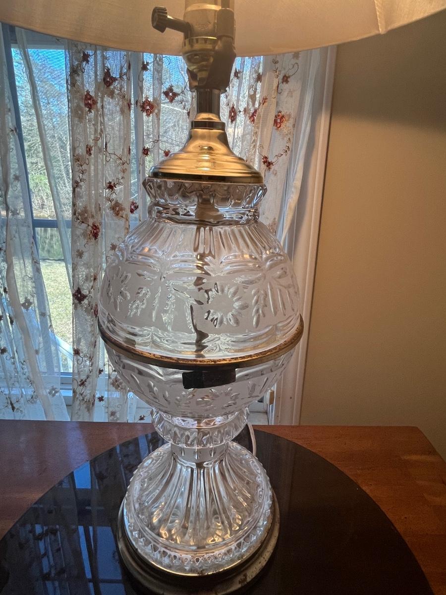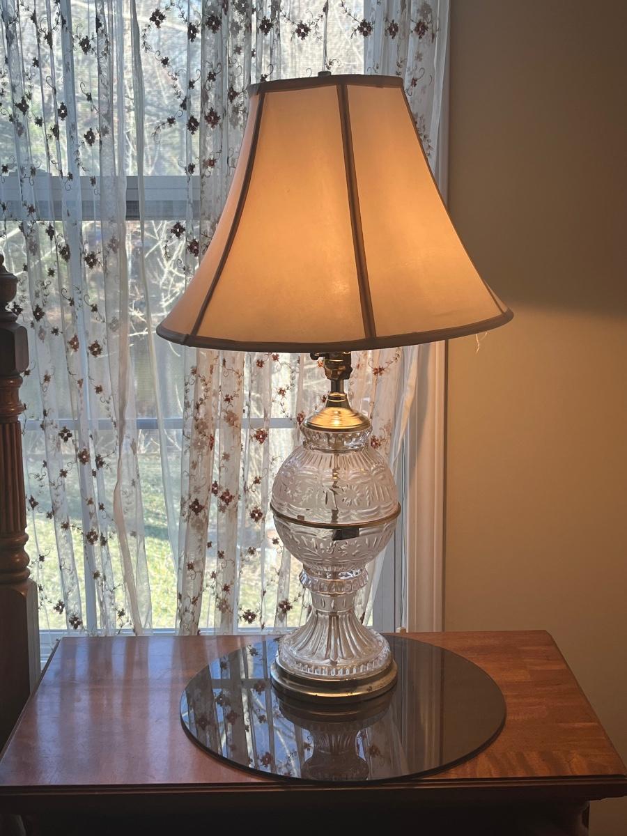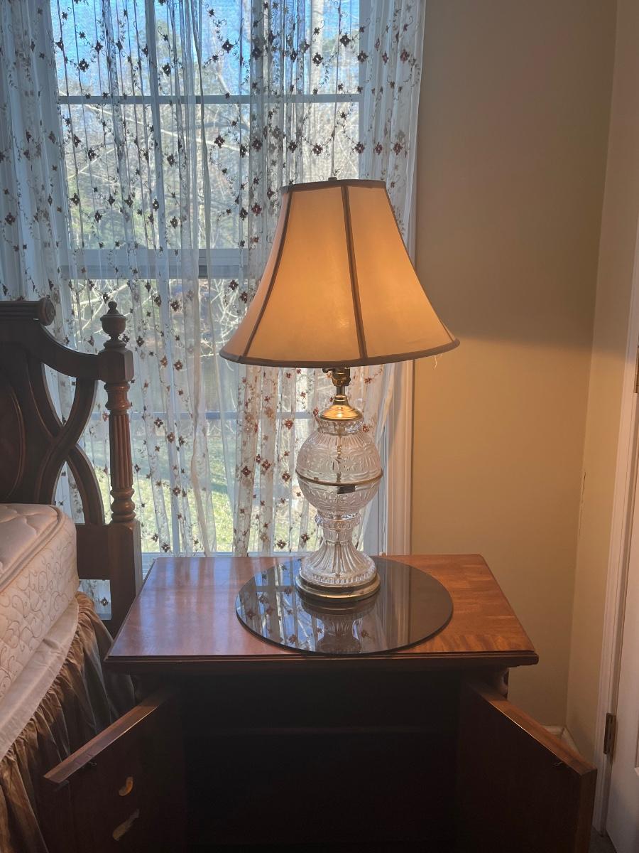 vintage night side with working crystal lamp 28"x16"x25". Please see all pictures as they are the best representation of the items. The pictures show condition, measurements if taken, and what is included in the lot. Due to the large amount that we photograph and the time frame, we are not always able to take measurements. All items unless noted, are pre-owned and have been used. If you purchased furniture, you must bring help. We do not allow one person to carry large furniture out on their own. Bring help, tools and a truck for the safety of our client’s homes, and your personal safety. Any damages that result to the property including walls, and floors due to moving of the furniture will be charged to the buyer. Company policy. Thank you.