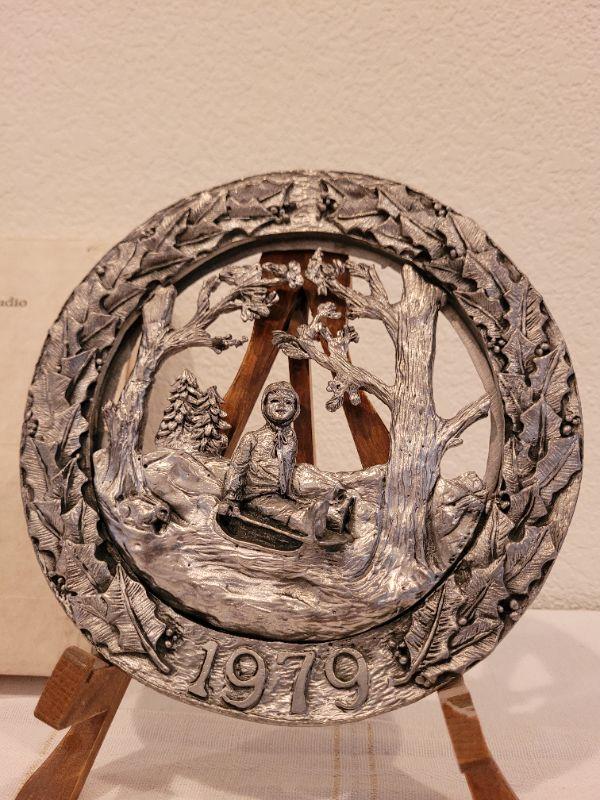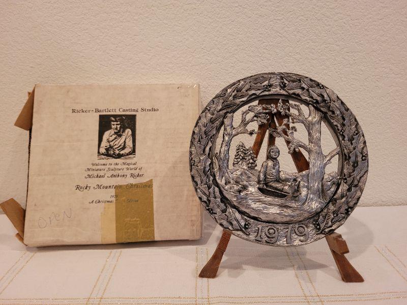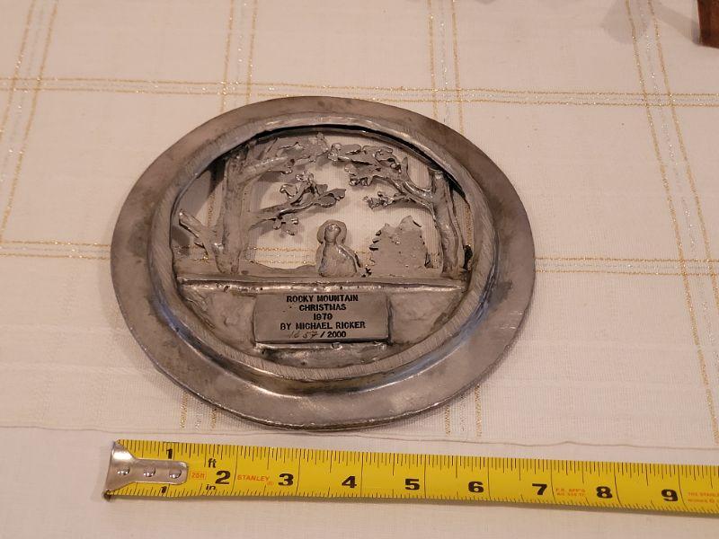 Lot 684: Vintage 1979 Michael Ricker ROCKY MOUNTAIN CHRISTMAS Pewter Plate w/ Box