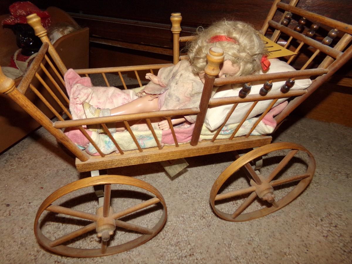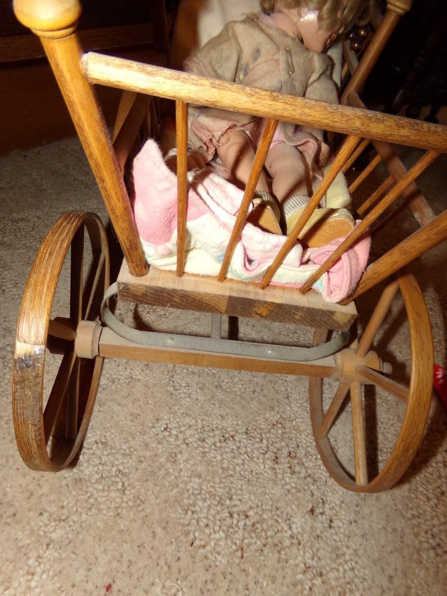 VINTAGE WOODEN DOLL STROLLER. GREAT FOR THOSE THAT COLLECT DOLLS. VERY UNIQUE.