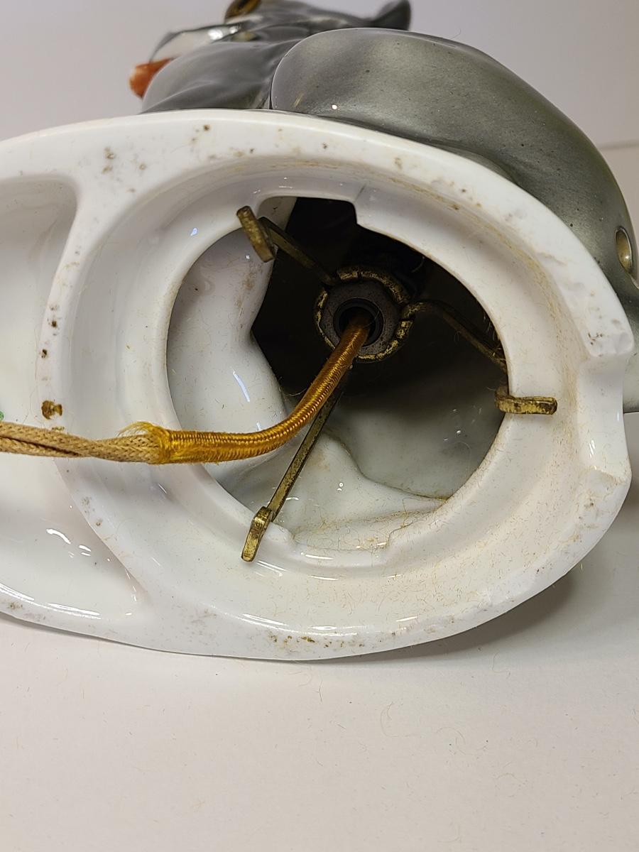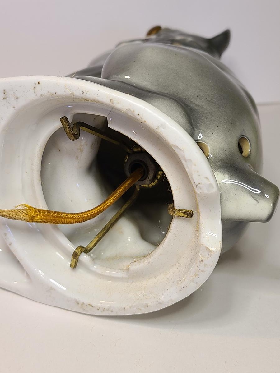 This is a unique item that we have not come across yet, a vintage perfume lamp. This lamp once had a V-shaped piece of wire inside that held a solid piece of perfume. When the light was on, the heat would make the solid piece of perfume emit a scent. There are holes on the piece that the scent would come through. This has been rewired over the years, to be a soft light that gives off a glow through the holes. This was used as decor on mantle and is eye-catching. Please see in the pictures under inspection a line was noticed under the glaze. Not a crack, does not look to go through. You do not notice unless inspecting. Please see pics. Please see all pictures as they are the best representation of the items. The pictures show condition, measurements if taken, and what is included in the lot. Due to the large amount that we photograph and the time frame, we are not always able to take measurements. All items unless noted, are pre-owned and have been used. If you purchased furniture, you must bring help. We do not allow one person to carry large furniture out on their own. Bring help, tools and a truck for the safety of our client’s homes, and your personal safety. Any damages that result to the property including walls, and floors due to moving of the furniture will be charged to the buyer. Company policy. Thank you.