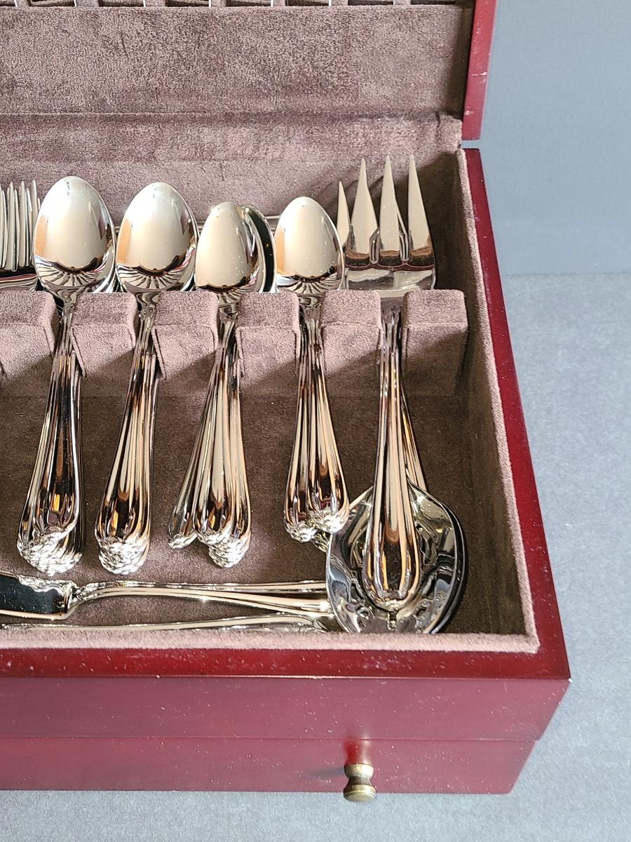 Lot 94: Gorham "Melon Bud" 18/10 Service For 12 w/ Extras in Lenox Storage Case