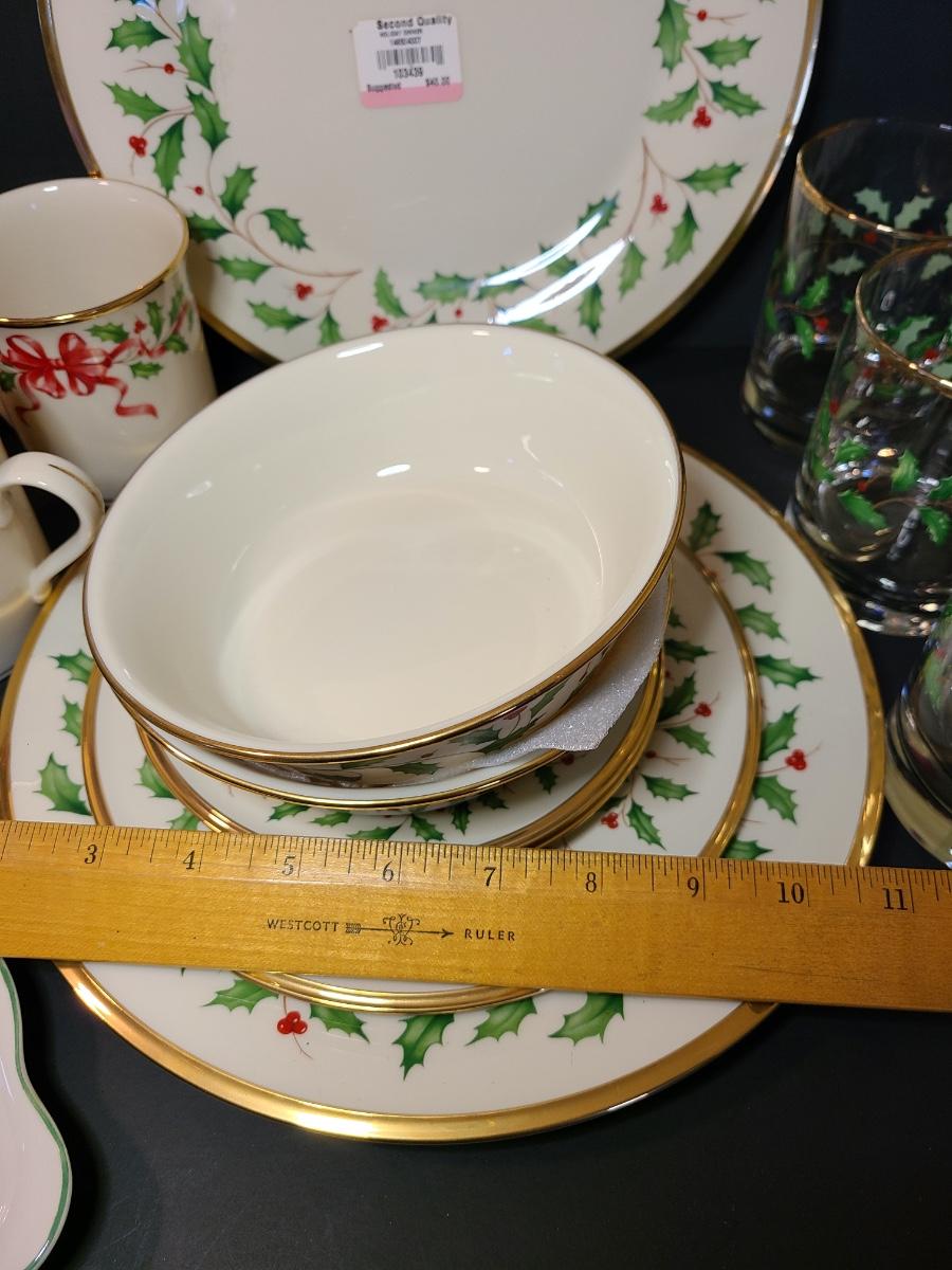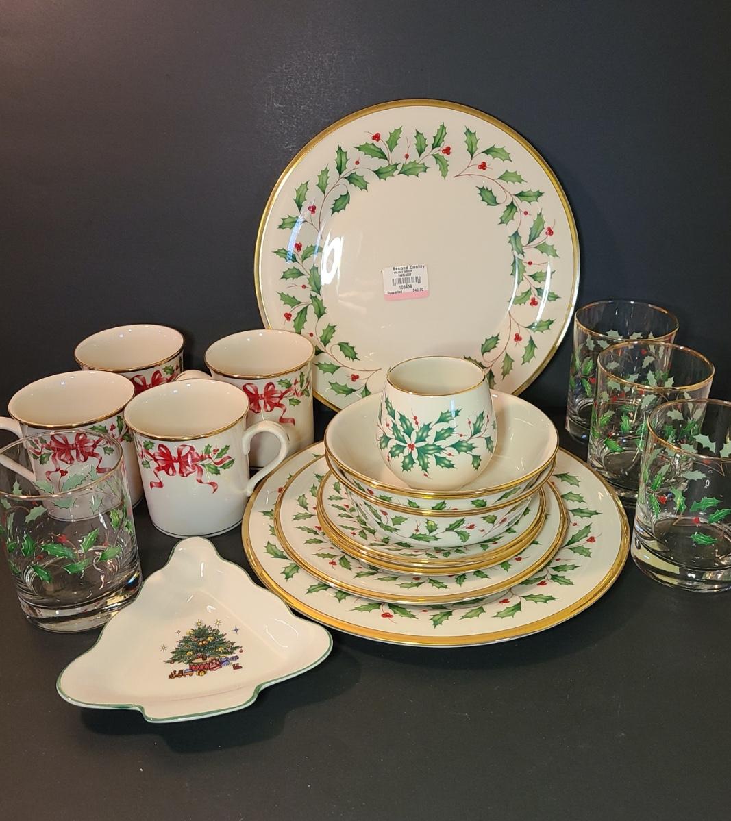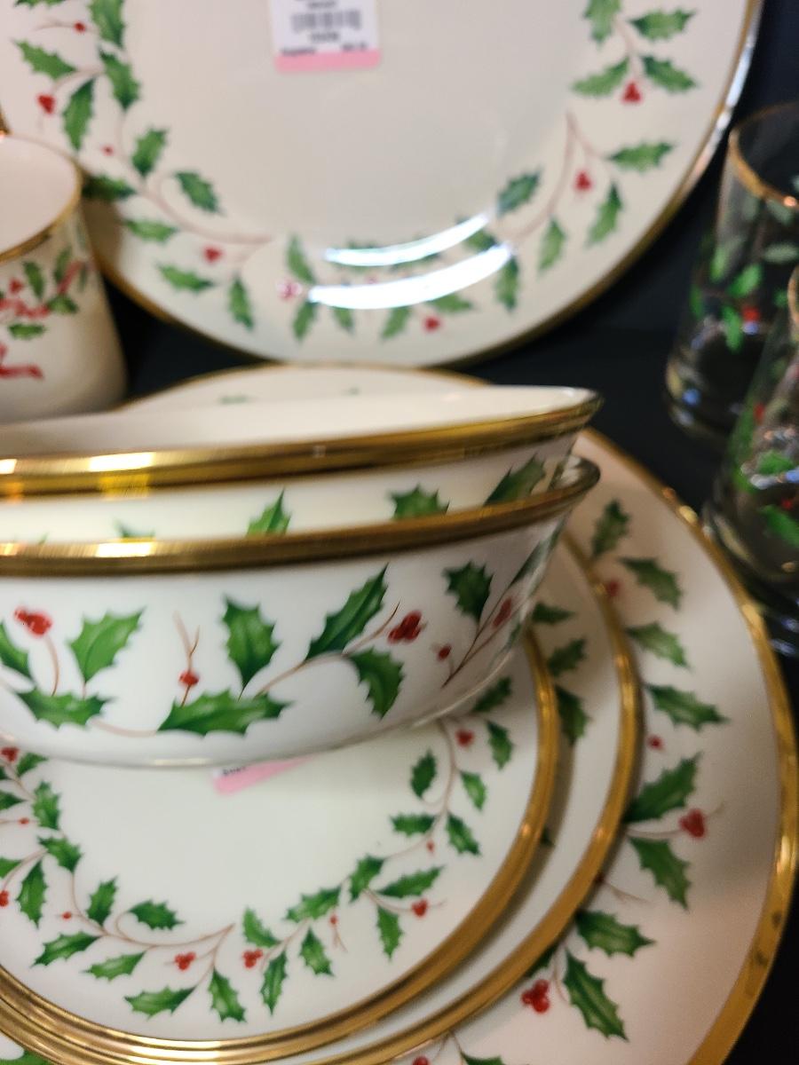 Lenox coffee cups with holly and bows, new Lenox plates some second quality, glasses with small L on them and Holly not sure if that is Lenox or Libby, and Spode christmas tree plate with chip. Please see all pictures as they are the best representation of the items. The pictures show condition, measurements if taken, and what is included in the lot. Due to the large amount that we photograph and the time frame, we are not always able to take measurements. All items unless noted, are pre-owned and have been used. If you purchased furniture, you must bring help. We do not allow one person to carry large furniture out on their own. Bring help, tools and a truck for the safety of our client’s homes, and your personal safety. Any damages that result to the property including walls, and floors due to moving of the furniture will be charged to the buyer. Company policy. Thank you.