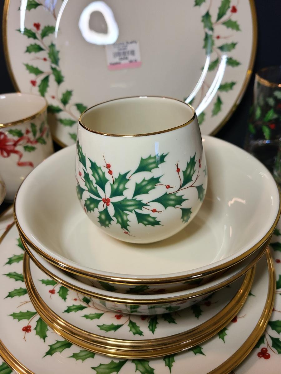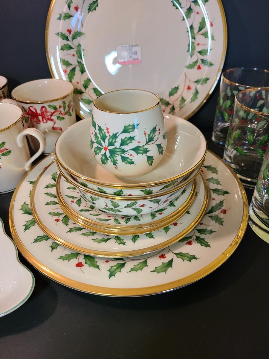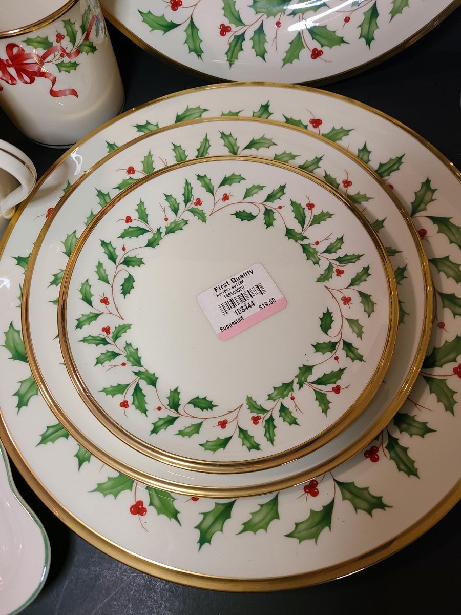 Lenox coffee cups with holly and bows, new Lenox plates some second quality, glasses with small L on them and Holly not sure if that is Lenox or Libby, and Spode christmas tree plate with chip. Please see all pictures as they are the best representation of the items. The pictures show condition, measurements if taken, and what is included in the lot. Due to the large amount that we photograph and the time frame, we are not always able to take measurements. All items unless noted, are pre-owned and have been used. If you purchased furniture, you must bring help. We do not allow one person to carry large furniture out on their own. Bring help, tools and a truck for the safety of our client’s homes, and your personal safety. Any damages that result to the property including walls, and floors due to moving of the furniture will be charged to the buyer. Company policy. Thank you.