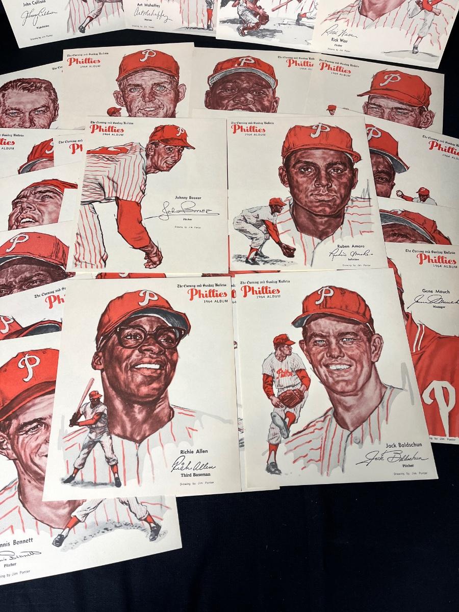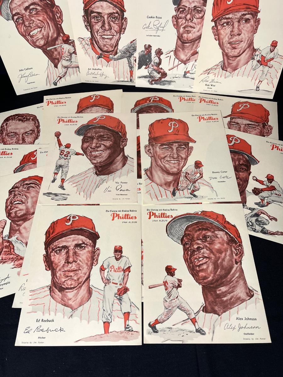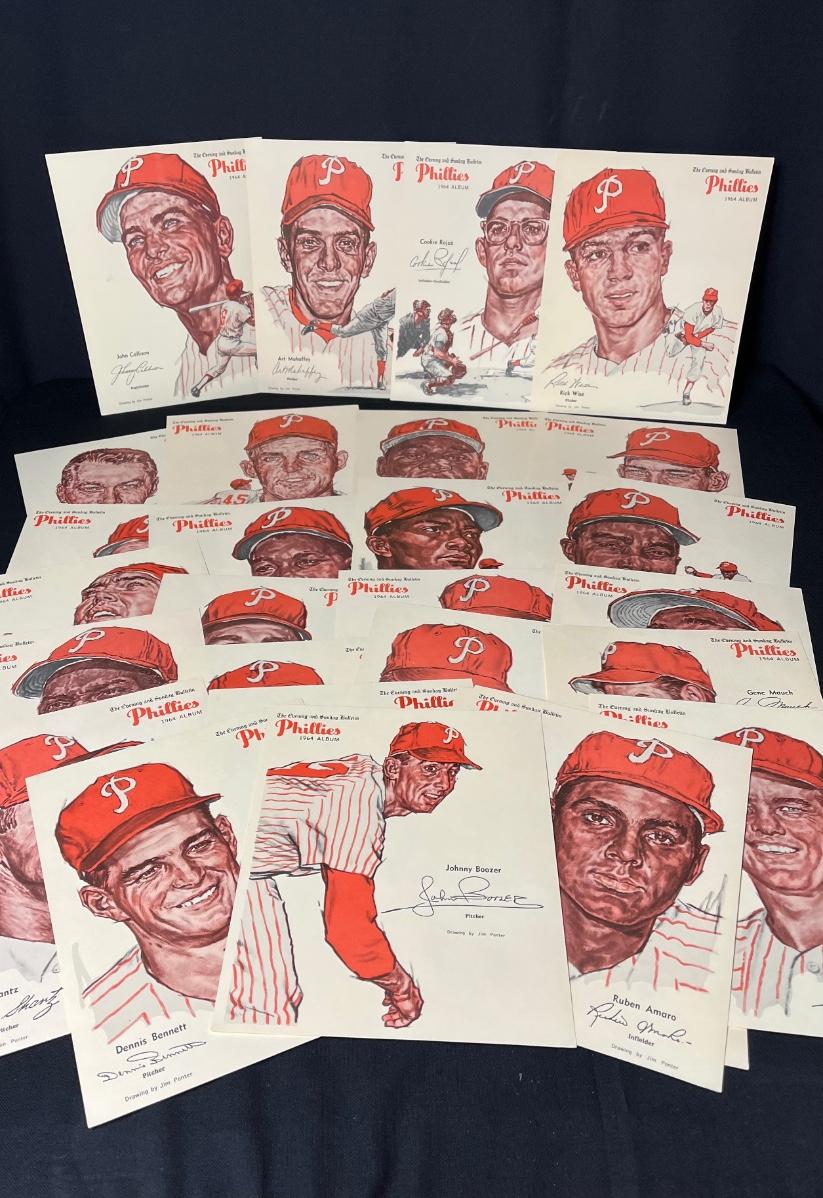 LOT 13: Set of 27 Phillies 8” x 10” Player Illustrations From The Philadelphia Evening Bulletin 1964 Album