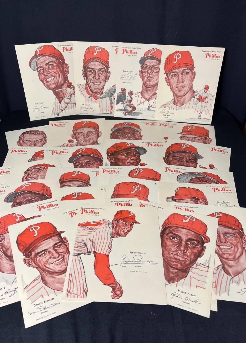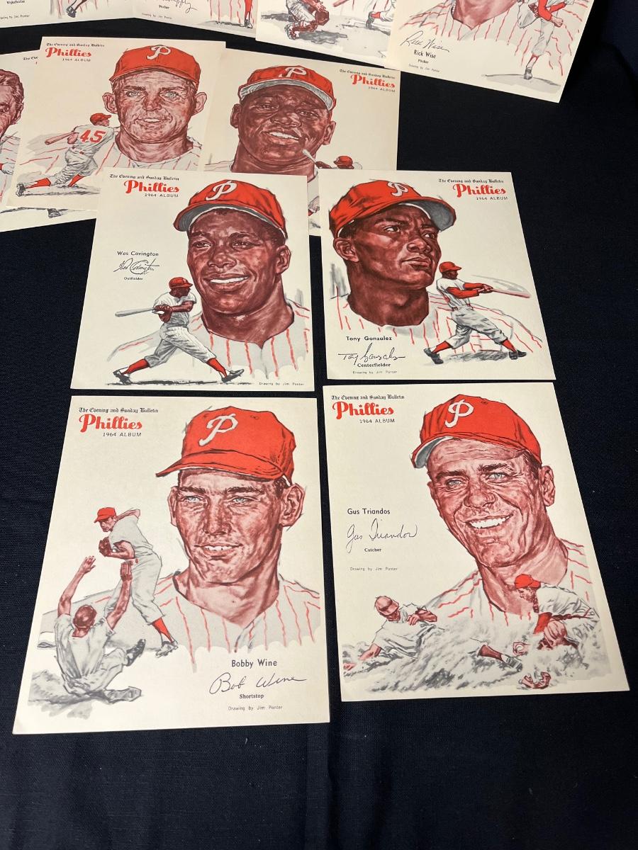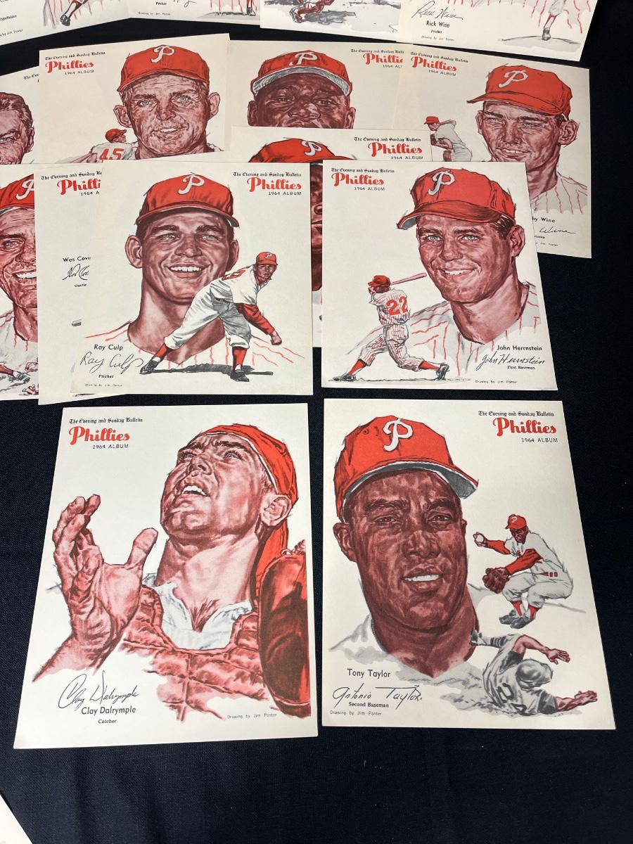 LOT 13: Set of 27 Phillies 8” x 10” Player Illustrations From The Philadelphia Evening Bulletin 1964 Album