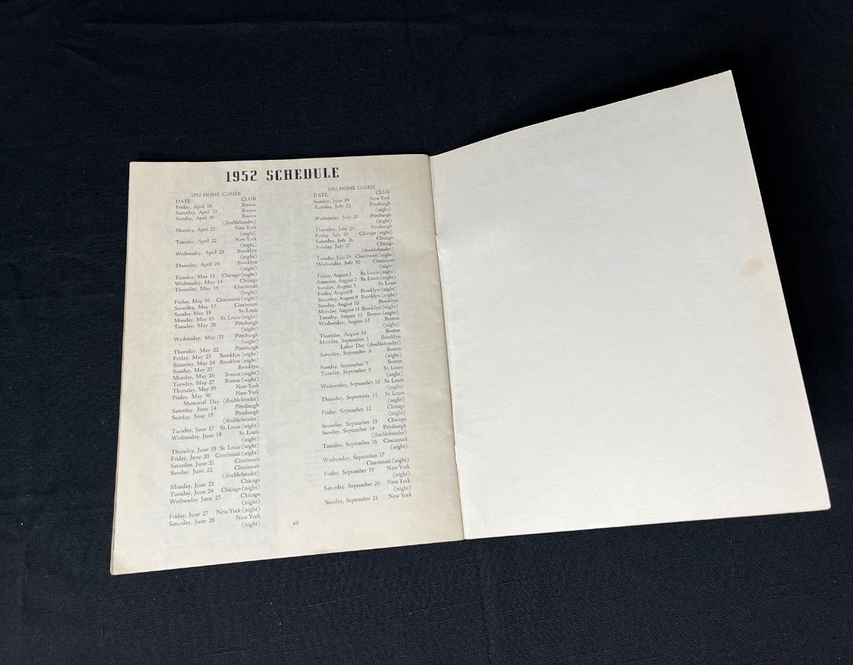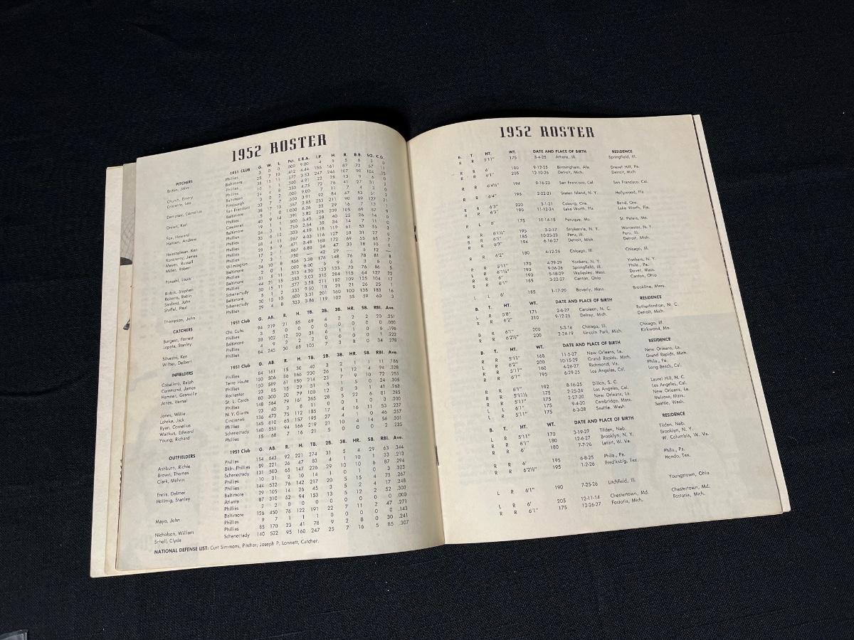 Philadelphia Phillies Yearbooks 1952-53. Please see all pictures as they are the best representation of the items. The pictures show condition, measurements if taken, and what is included in the lot. Due to the large amount that we photograph and the time frame, we are not always able to take measurements. All items unless noted, are pre-owned and have been used. If you purchased furniture, you must bring help. We do not allow one person to carry large furniture out on their own. Bring help, tools and a truck for the safety of our client’s homes, and your personal safety. Any damages that result to the property including walls, and floors due to moving of the furniture will be charged to the buyer. Company policy. Thank you.