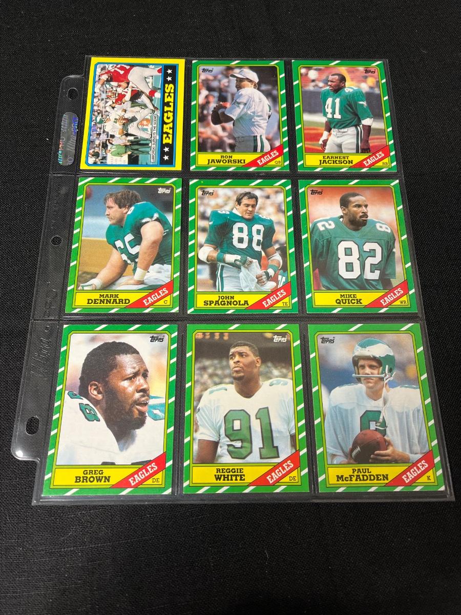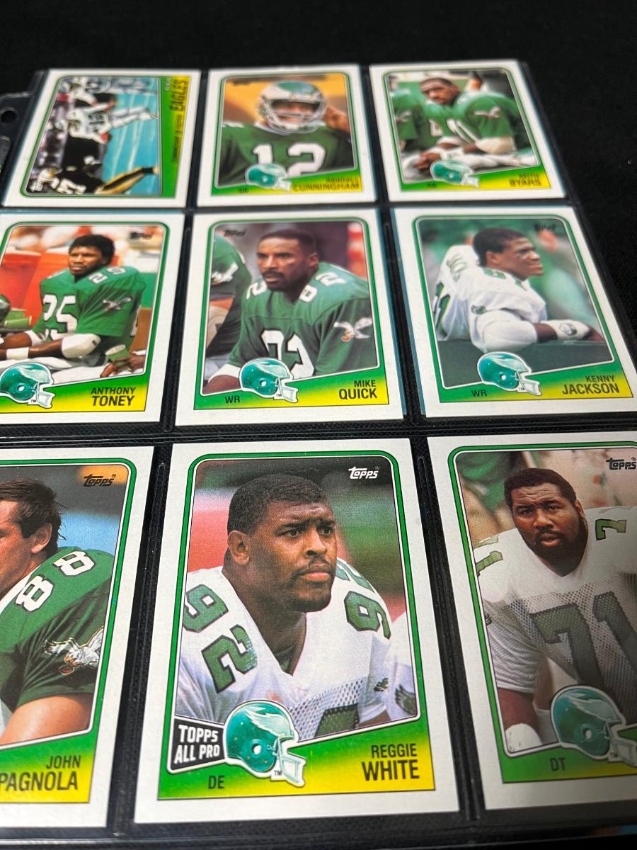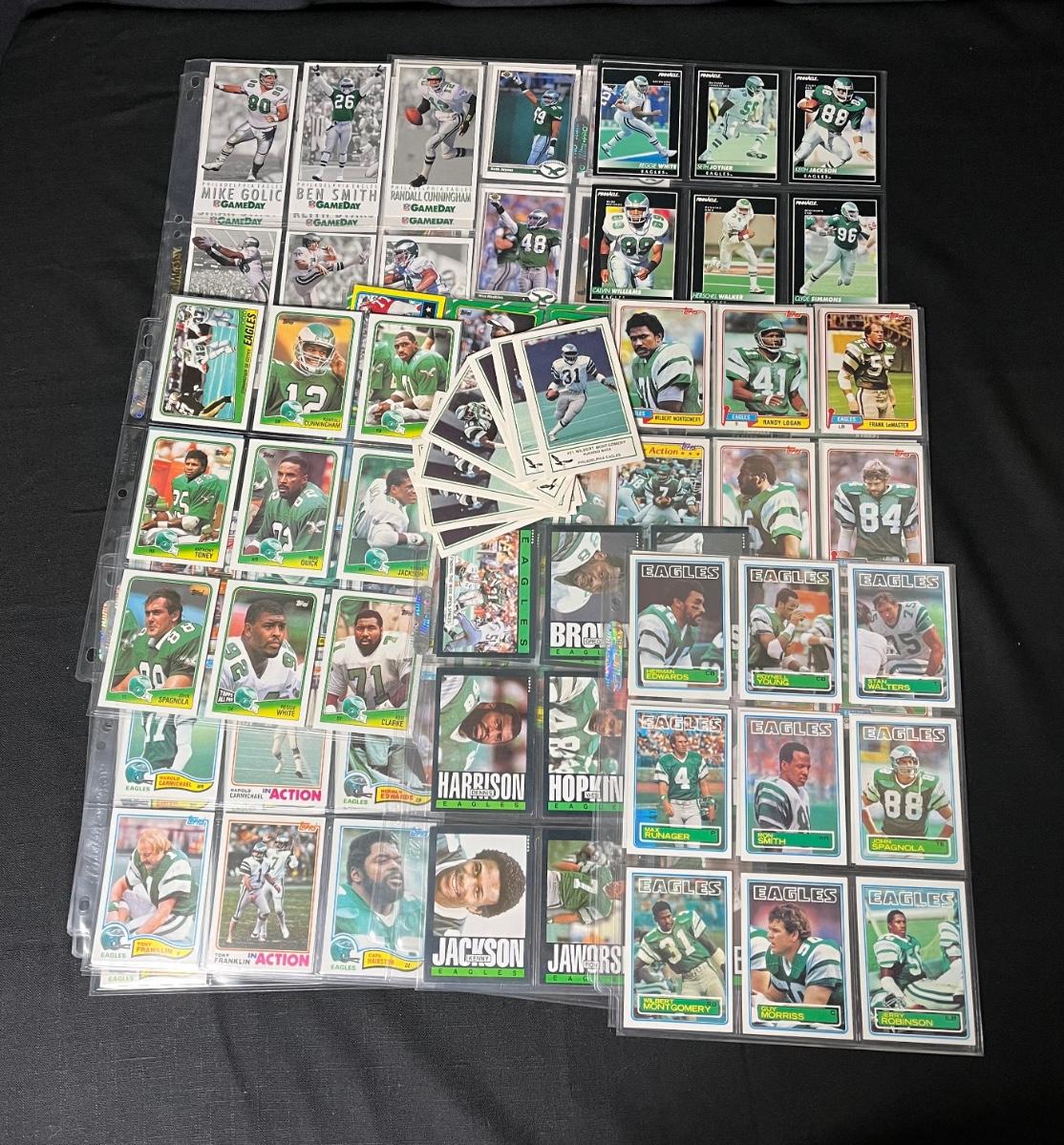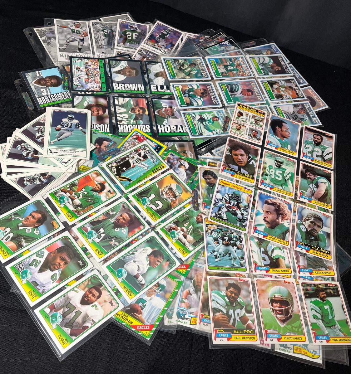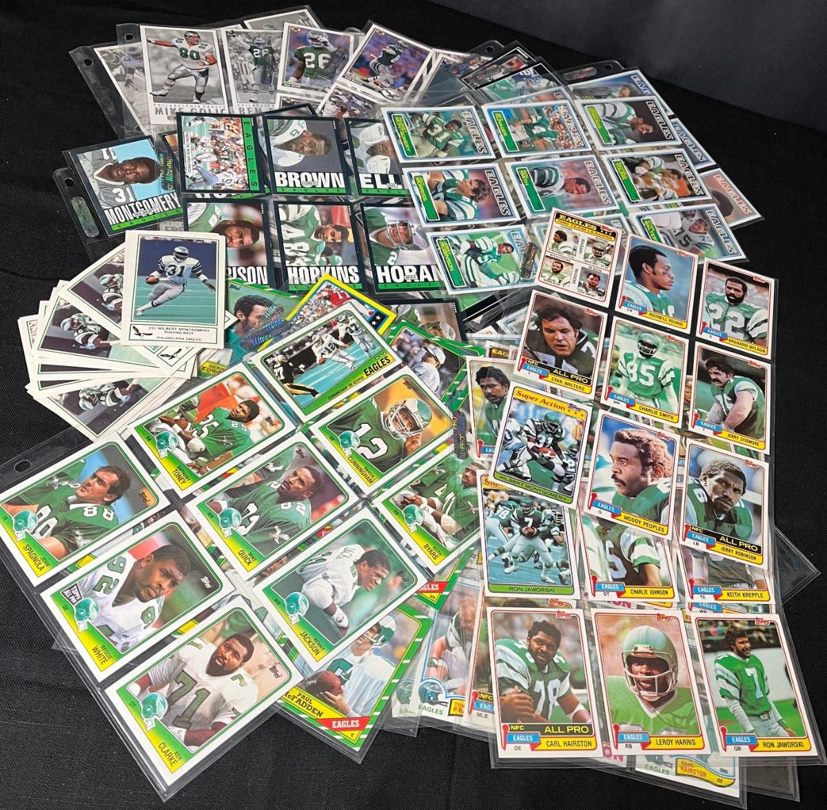 LOT 23: Big Lot of Philadelphia Eagles Football Cards - Reggie White, Cunningham, Jaworski & More