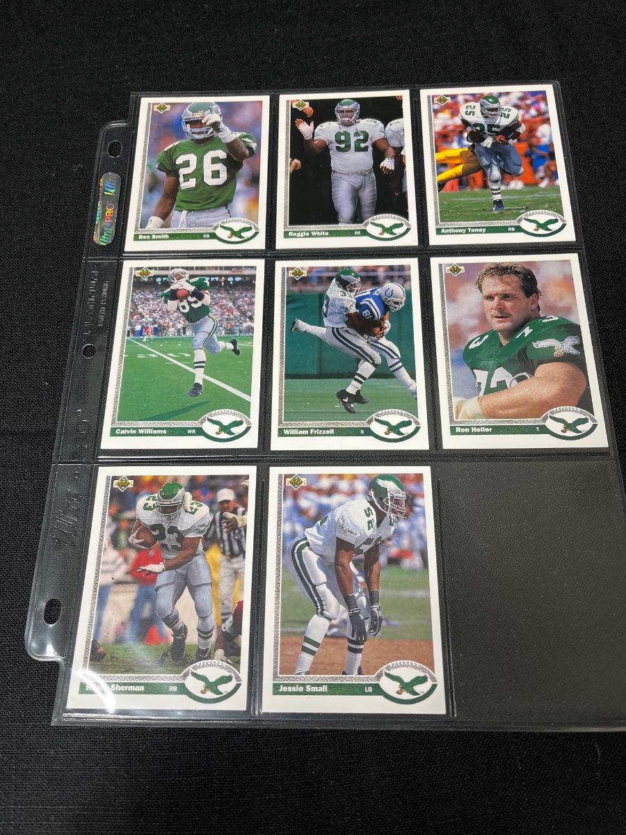LOT 23: Big Lot of  Philadelphia Eagles Football Cards - Reggie White, Cunningham, Jaworski & More