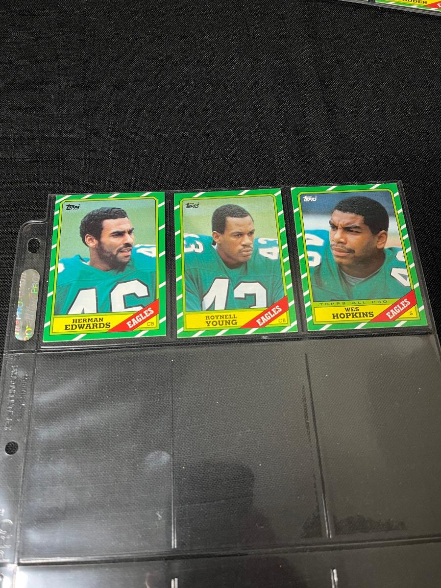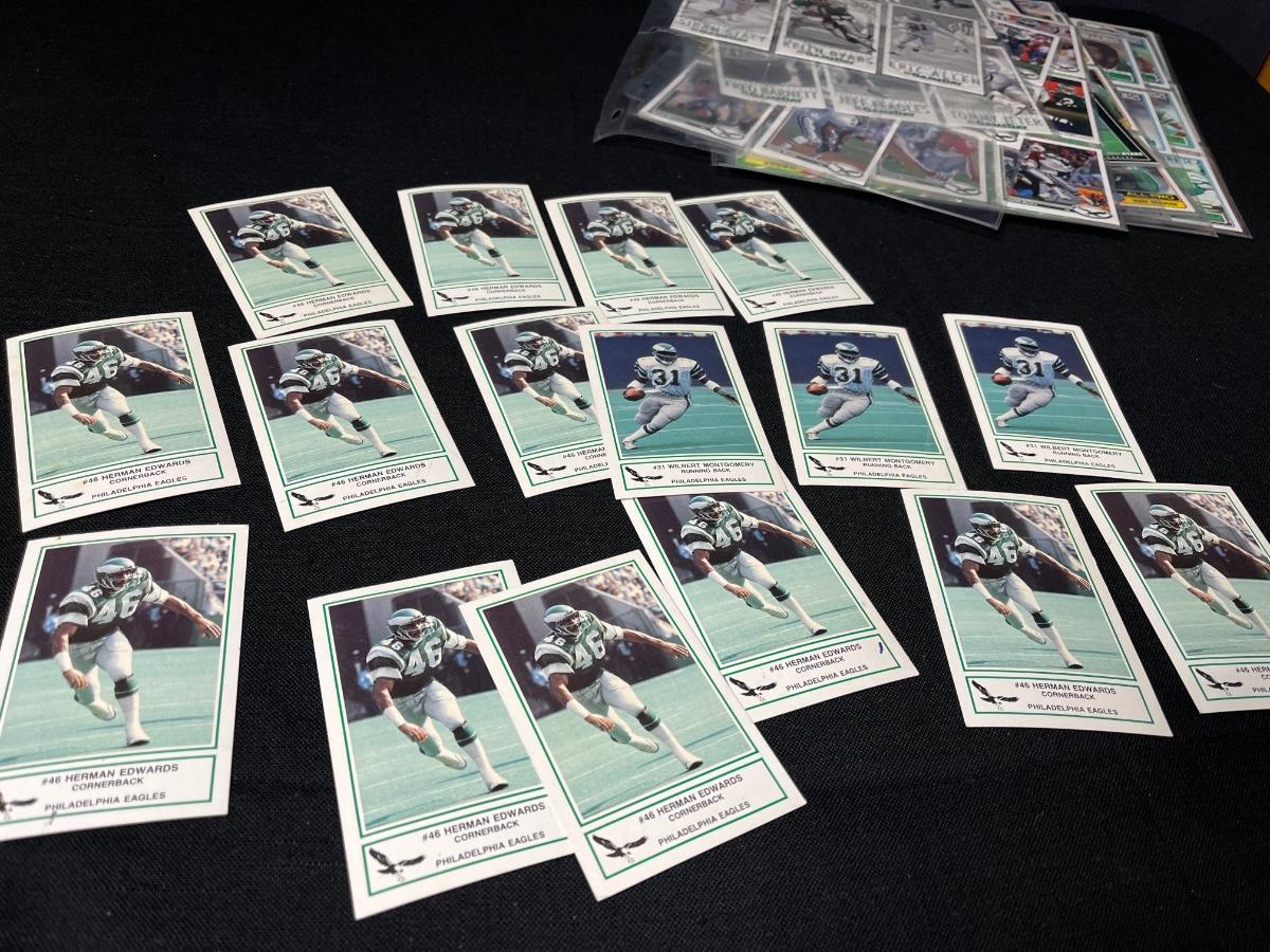Big Lot of Philadelphia Eagles Football Cards - Reggie White, Cunningham, Jaworski & More. Varying years, brands and conditions. Please see all pictures as they are the best representation of the items. The pictures show condition, measurements if taken, and what is included in the lot. Due to the large amount that we photograph and the time frame, we are not always able to take measurements. All items unless noted, are pre-owned and have been used. If you purchased furniture, you must bring help. We do not allow one person to carry large furniture out on their own. Bring help, tools and a truck for the safety of our client’s homes, and your personal safety. Any damages that result to the property including walls, and floors due to moving of the furniture will be charged to the buyer. Company policy. Thank you.