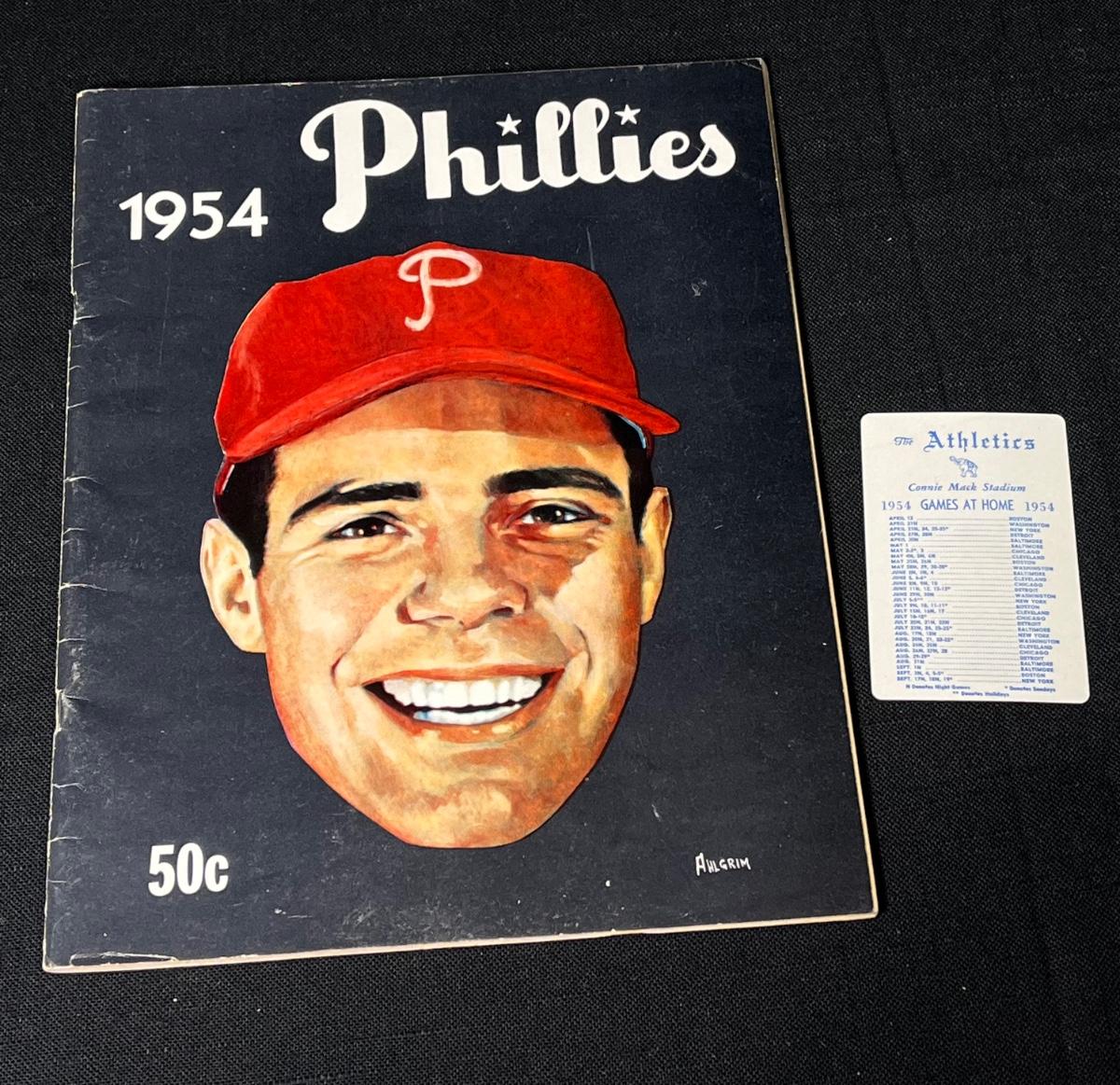 LOT 30: 1954 Philadelphia Phillies Yearbook Plus A’s Schedule Card