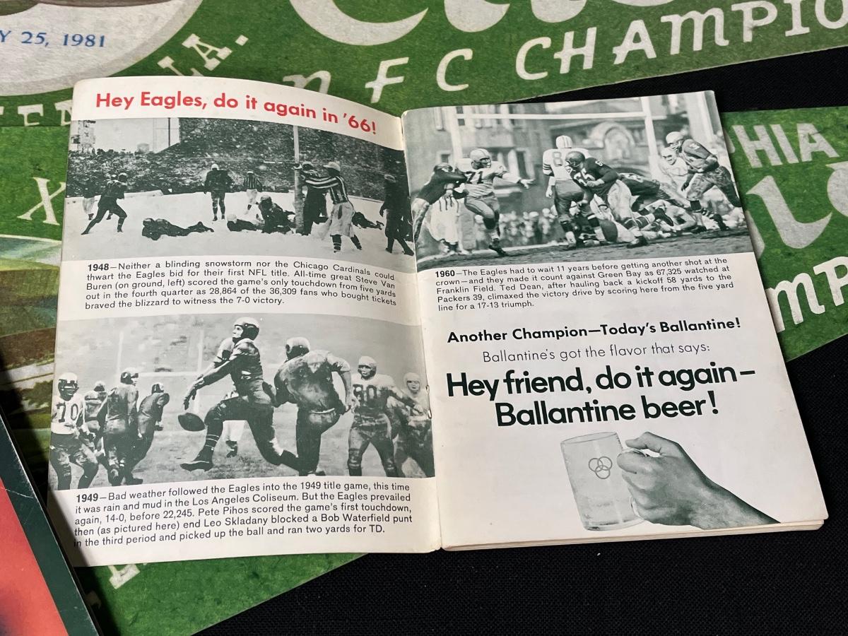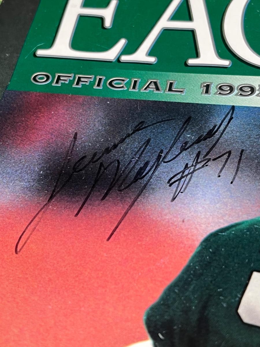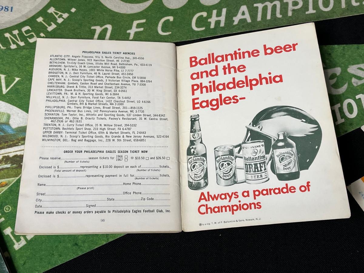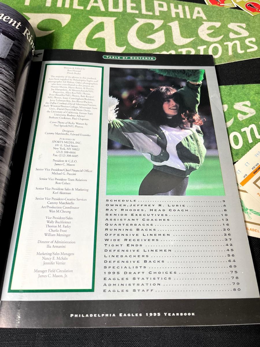 Philadelphia Eagles Memorabilia - Autographs & More. Includes 1995 Team Yearbook signed by Bobby Hoying, Jermaine Mayberry and Jason Dunn. Please see all pictures as they are the best representation of the items. The pictures show condition, measurements if taken, and what is included in the lot. Due to the large amount that we photograph and the time frame, we are not always able to take measurements. All items unless noted, are pre-owned and have been used. If you purchased furniture, you must bring help. We do not allow one person to carry large furniture out on their own. Bring help, tools and a truck for the safety of our client’s homes, and your personal safety. Any damages that result to the property including walls, and floors due to moving of the furniture will be charged to the buyer. Company policy. Thank you.
